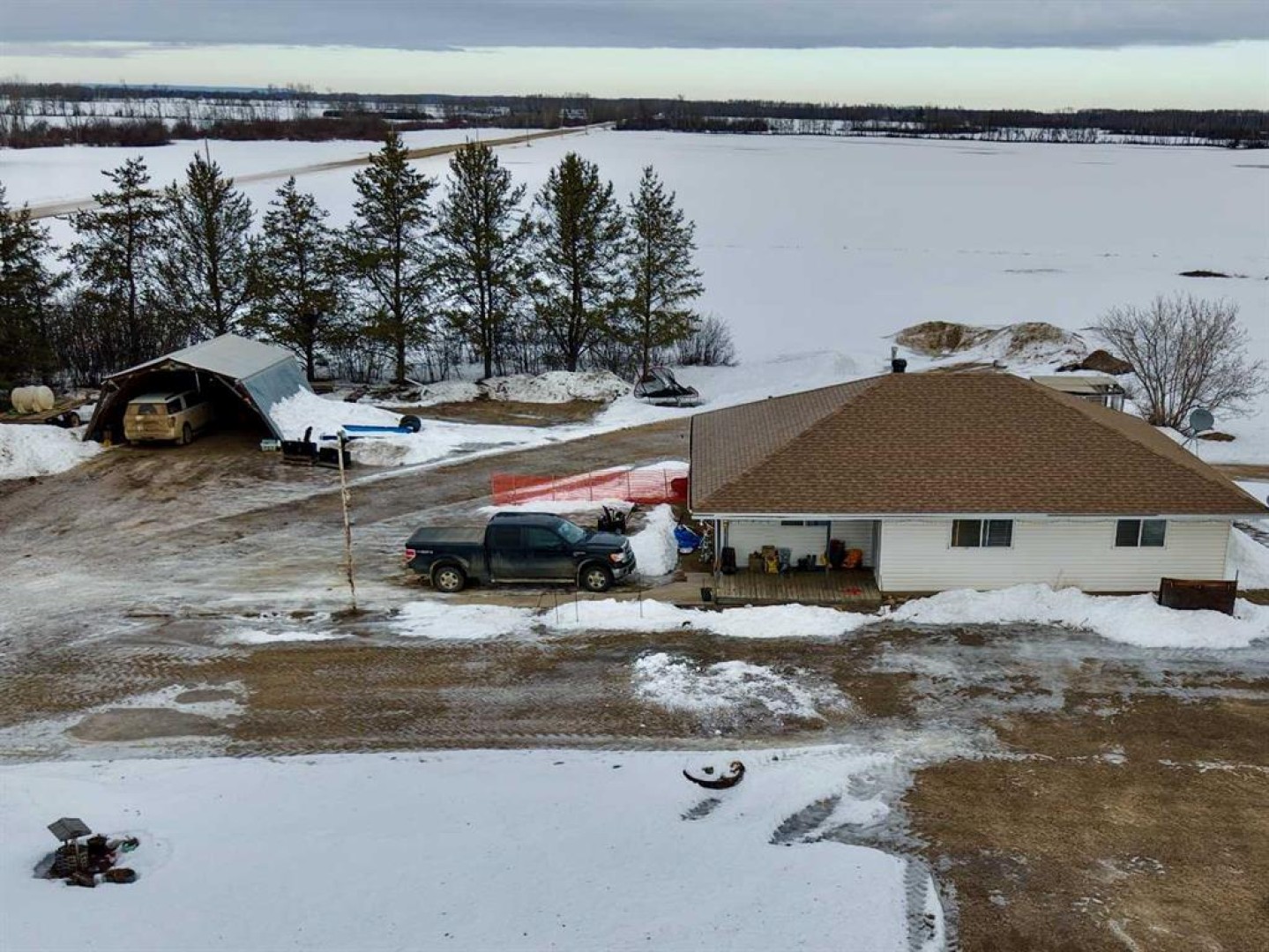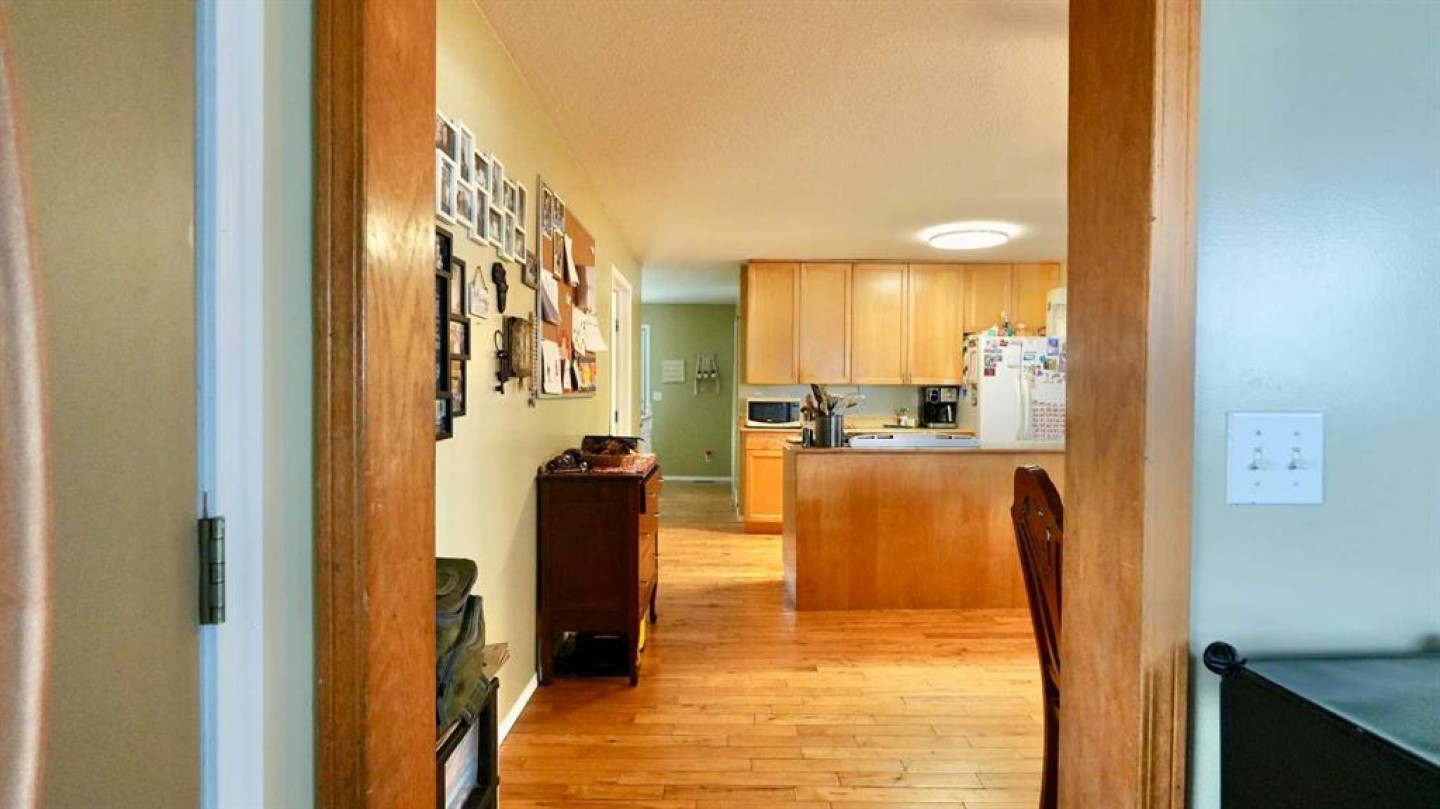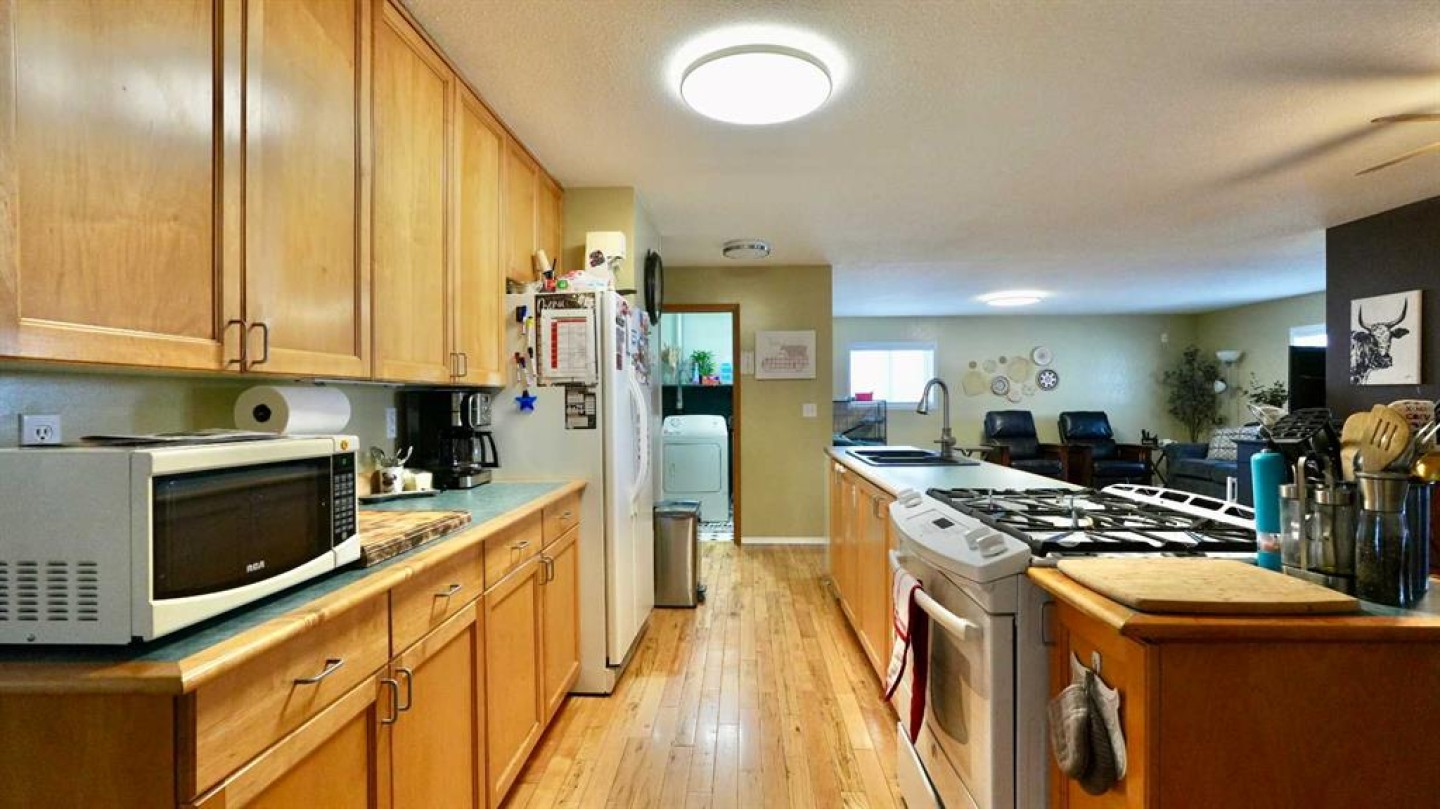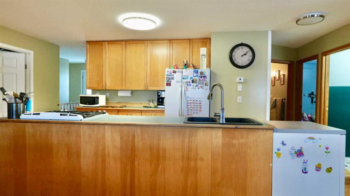 Take a look at this family-friendly 3-bedroom, 2-bathroom acreage that has just hit the market! Situated on 9.60 acres, including approximately 7 acres of cultivated land and five row of Saskatoon trees, this property is located just outside the farming community of Deadwood, AB. Offering over 1,500 sq. ft of developed living space on the main level, this well-maintained home clearly reflects pride of ownership. You are welcomed by a generous entryway and an open, functional floor plan, highlighted by a mix of hardwood and laminate flooring. The main level provides ample space for everyday living and entertaining, while the unfinished lower level offers excellent potential to expand your living area with a family room, additional bedrooms or recreation space. A cold storage room adds convenient space for garden produce and extra storage. The kitchen features a central island and pantry, providing plenty of room for meal prep and storage. Step outside to the nicely sized deck, perfect for summer barbecues and outdoor relaxation in you own sanctuary. Recent updates include new asphalt shingles and connection to the municipal water co-op program. Location is key – this home offers peaceful country living while remaining close to the heart of the Deadwood community and just a short distance to Manning.