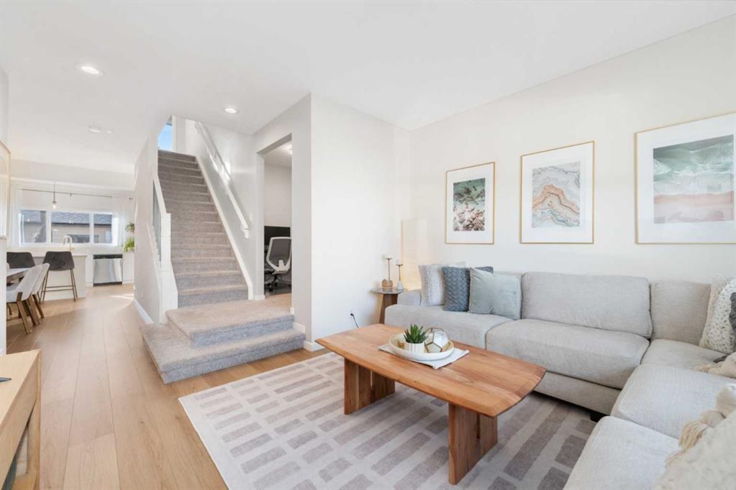 Welcome to Mahogany, Calgary’s premier lake community — where every detail of this beautifully upgraded 3-bedroom, 2.5-bath home has been designed for style, comfort, and everyday living. Offering 1,583 sqft of thoughtfully planned space, this home combines modern design with meaningful upgrades that make a real difference. From the moment you step inside, you’ll appreciate the bright, open-concept layout that’s both inviting and functional. The living area is anchored by large windows, creating a naturally bright space ideal for relaxing or entertaining. The kitchen is the true heart of the home — complete with quartz countertops, custom closet systems in the pantry, stainless steel appliances including a new gas range, and a stylish backsplash that ties everything together. A convenient pocket-office, 2-piece bath, and mudroom with added storage complete the main floor, alongside the warmth of new Hydro Max laminate flooring and tile flooring at both entrances. Upstairs, the spacious primary bedroom is a perfect retreat with a walk-in closet and a 5-piece ensuite featuring dual sinks and quartz counters. Two additional bedrooms, a 4-piece bath, and a convenient upper laundry room complete the upper level, offering comfort and practicality for busy family life. The unfinished basement provides endless potential for future development, with rough-in plumbing and two large windows for natural light. Step outside to your south-facing backyard, perfect for soaking up the sun on the deck with a gas BBQ hookup. The 23x23 double detached garage, built to fit a full-size truck, is drywalled and adds incredible functionality. Additional features include a York heat pump, HRV system, Nest thermostat, new bathroom faucets, updated lighting, and modern exterior fixtures — all adding value, efficiency, and peace of mind. Located on a quiet street within walking distance to parks, schools, shopping, and Mahogany’s award-winning lake amenities, this home offers the best of both convenience and community. Spend your weekends at the beach, explore the wetlands, or enjoy a peaceful evening stroll — it’s all just steps from your front door. This is the perfect place to call home — move-in ready, full of thoughtful upgrades, and designed for the Mahogany lifestyle you’ve been waiting for.