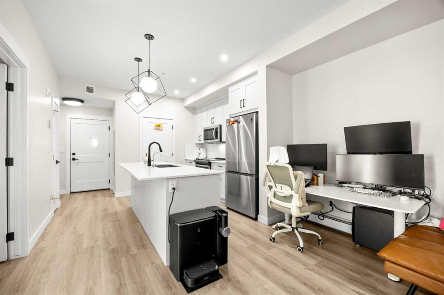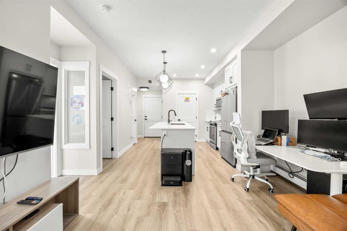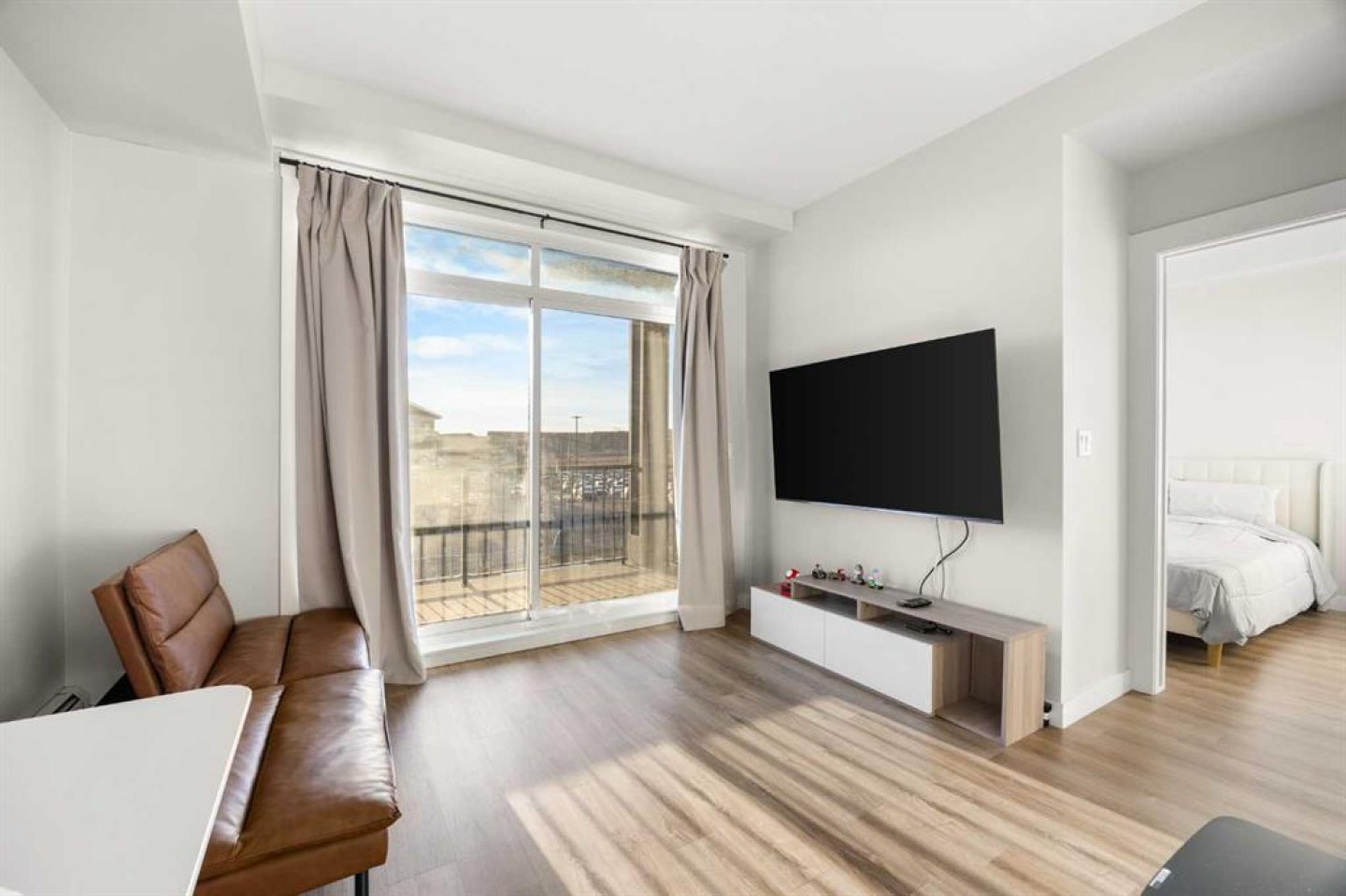Welcome to this beautiful, modern 2-bedroom condo, an ideal space for first-time buyers, savvy investors, or anyone seeking a lifestyle of ease and opulence. Step inside to a bright and thoughtfully designed open-concept layout, where natural light pours through the large windows. The gourmet kitchen features crisp white cabinetry, quartz countertops, stainless steel appliances, and a generous island with seating. The dining and living areas flow seamlessly together, opening to a large south-east facing balcony with plenty of room for gatherings and barbecues. There are 2 spacious bedrooms and a 4-piece main bathroom with modern finishes provides flexibility for family, guests, or a dedicated home office. With in-suite laundry, 1 titled underground parking stall, an assigned storage locker, and low condo fees make this an ideal option for someone seeking value without compromise. A noteworthy feature of this building is the premium exterior, hail resistant, and sound-dampening fibre cement siding. In addition to established shopping (T&T supermarket and Walmart), dining, and scenic ravine pathways, exciting new retail spaces are under development nearby, bringing even more convenience and vibrancy to the community. Quick access to major highways like Stoney Trail makes commuting downtown, reaching the airport, or heading to the mountains simple and stress-free. This is a fantastic opportunity for anyone seeking for a home that is move-in ready and full of upgrades.