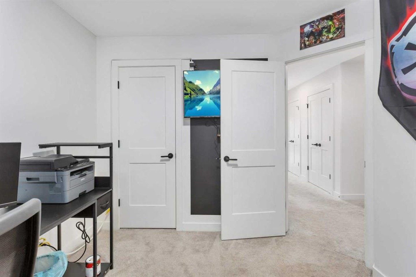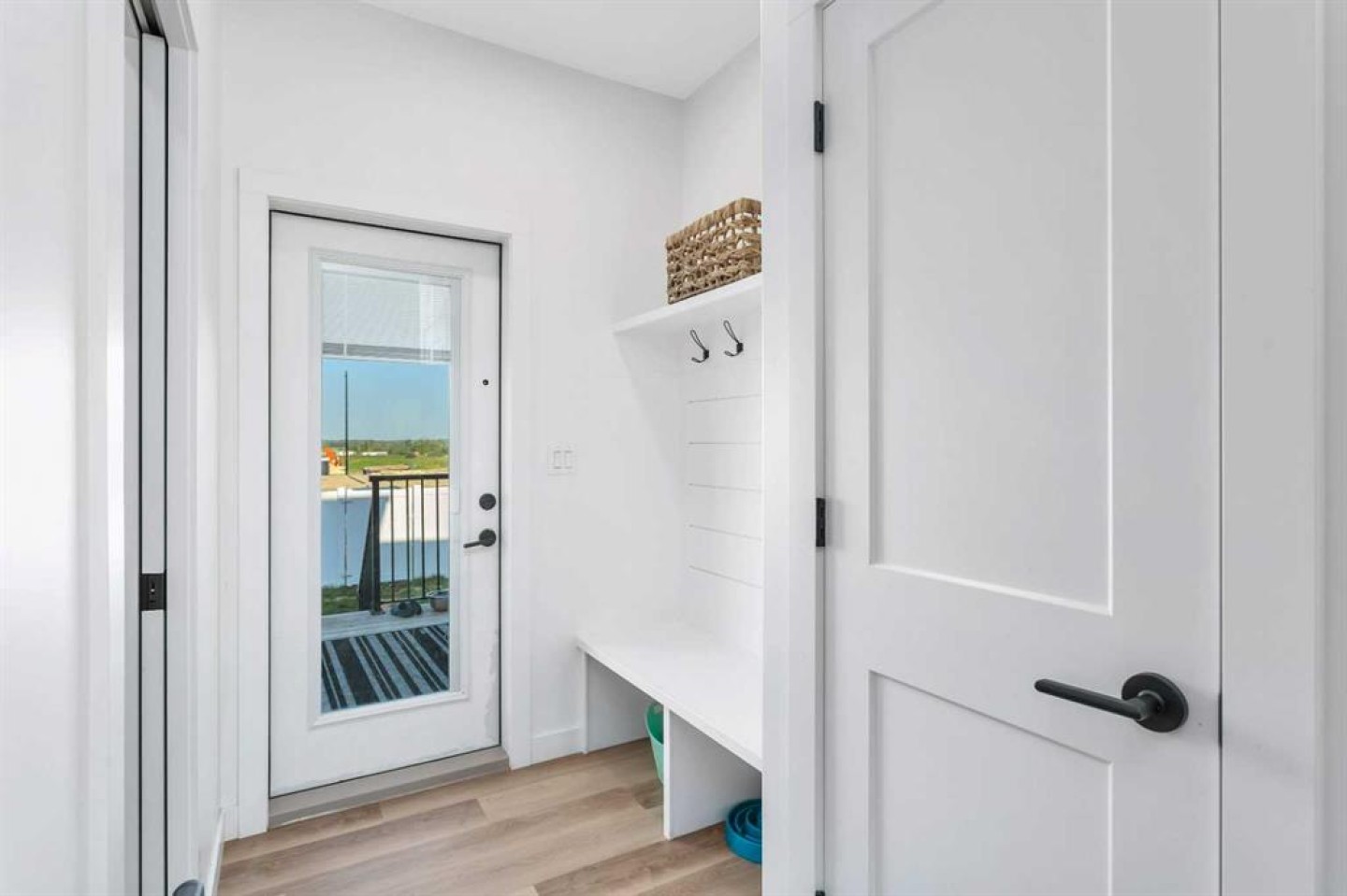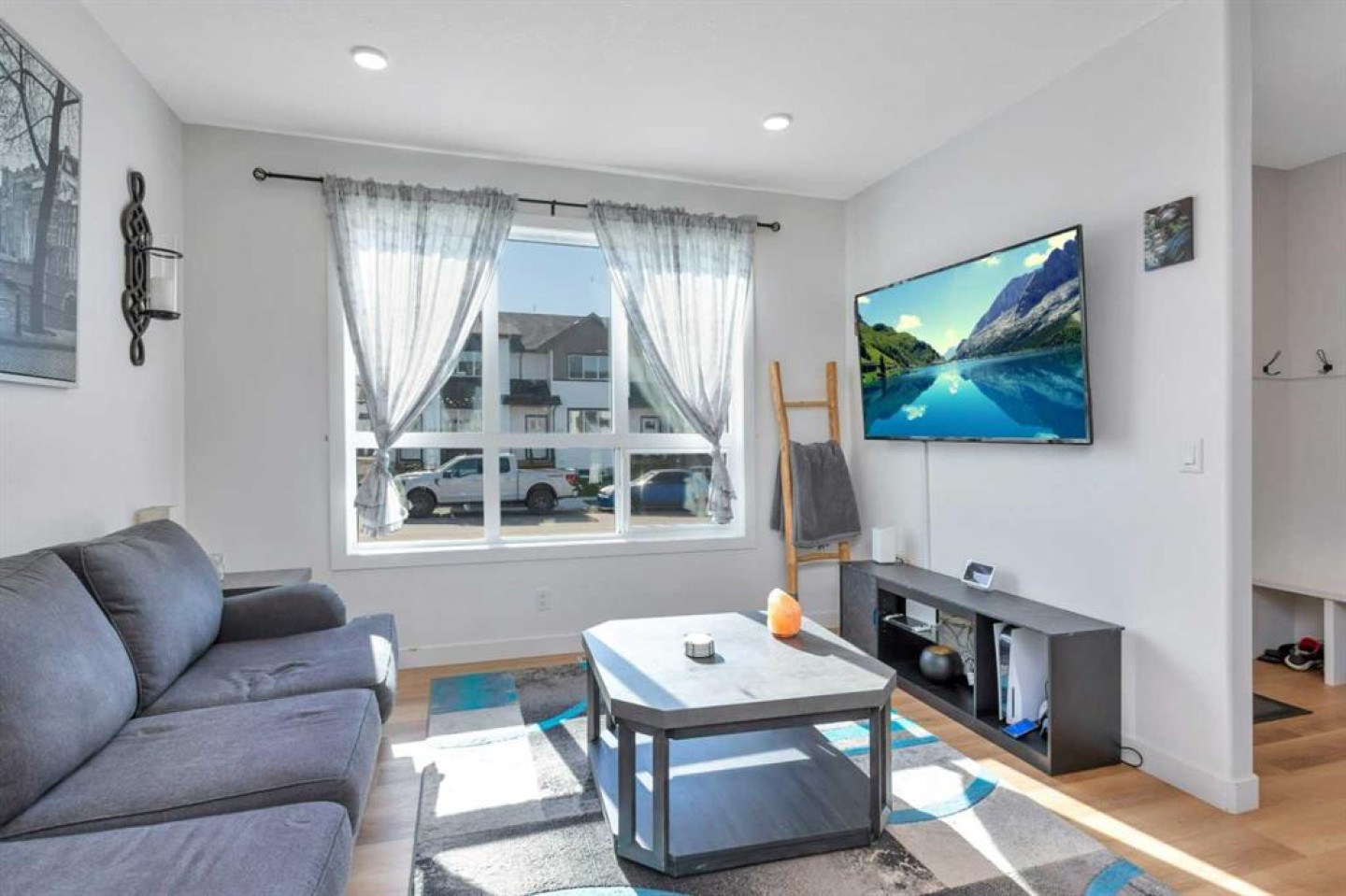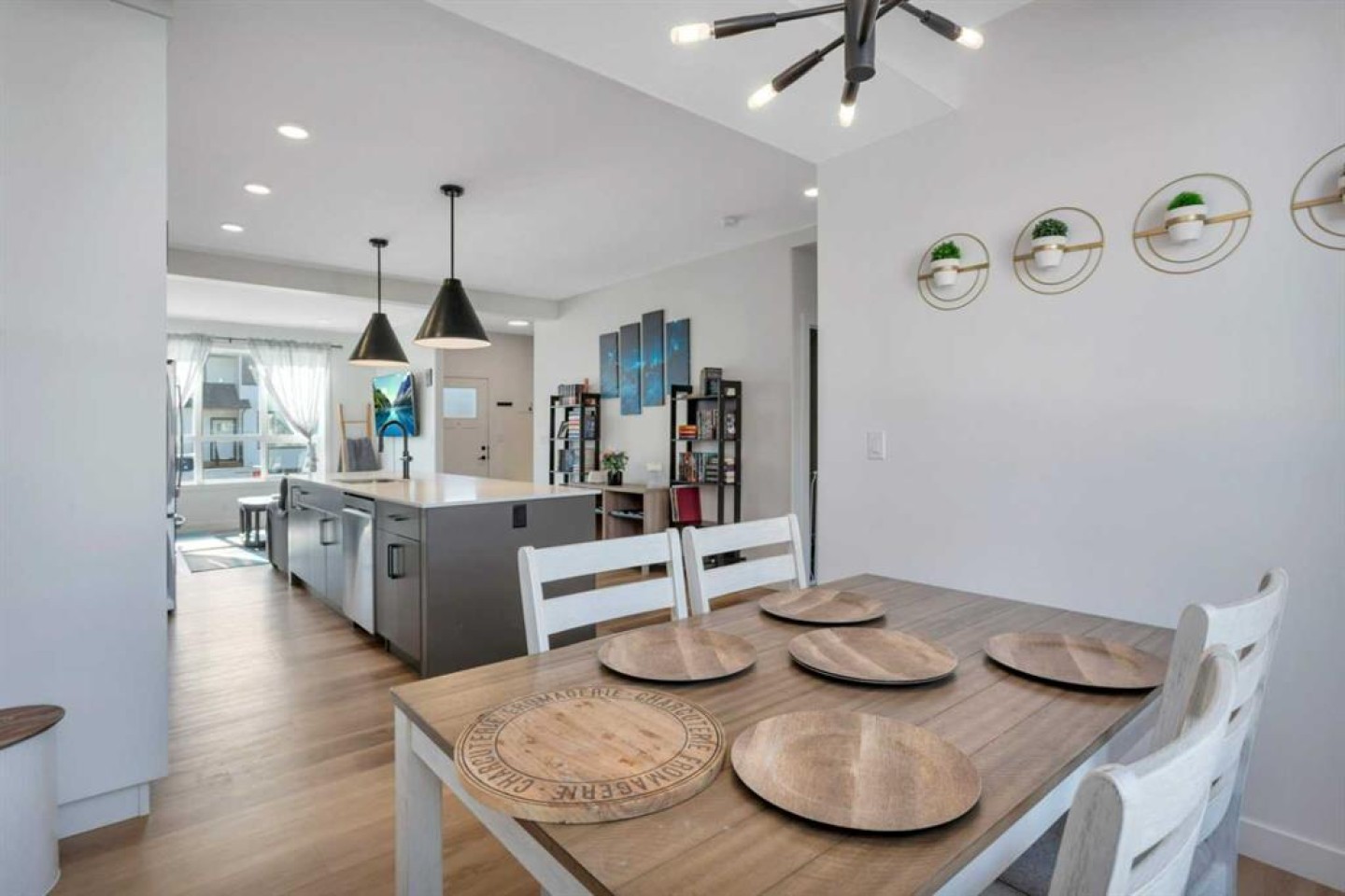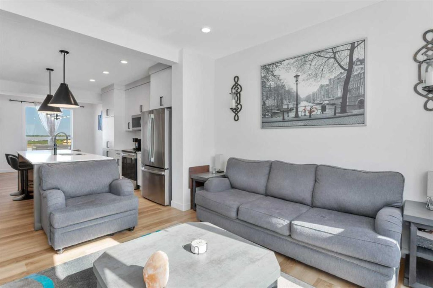 END UNIT with A/C and March 1 possession available. Stylish, spacious, and modern 2-storey townhome in the new community of Iron Gate, offering low-maintenance living and peace of mind with Alberta New Home Warranty still in place. Enjoy your charming 7' x 7' front deck before entering a bright, open-concept main floor filled with natural light from large energy-efficient triple-pane windows. Durable vinyl plank flooring runs throughout the main level, while plush carpet upstairs adds warmth and comfort. The kitchen truly anchors the home with a massive island featuring extended quartz countertops, perfect for stools, homework time, or late-night chats, plus a built-in pantry and four stainless steel appliances. The expansive dining area easily accommodates a full-size table with room to host, and the separate mudroom with a half bath offers practical family functionality with direct access to the east-facing back deck. Outside, enjoy a fully fenced backyard with rear lane access, two parking stalls, and space for a future single detached garage. Upstairs includes a convenient laundry room, two generously sized bedrooms, a full main bathroom, and a primary suite complete with a walk-in closet and 4-piece ensuite. Extra-large hallway closets provide excellent additional storage. The basement is unfinished and ready for your ideas, already plumbed and framed for a future bedroom, bathroom, and rec room, with large windows bringing in great natural light. Central A/C keeps the interior comfortable year-round. Located close to shopping, restaurants, and Highway 20 for quick access in and out of town, this move-in-ready home checks all the boxes for comfort, convenience, and long-term value.