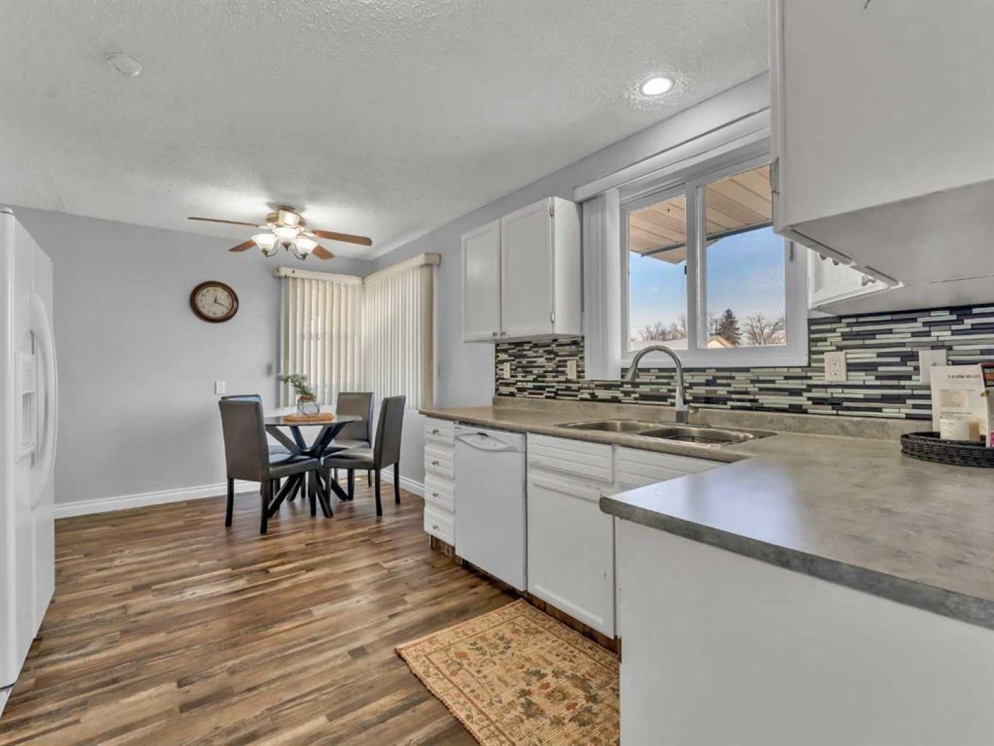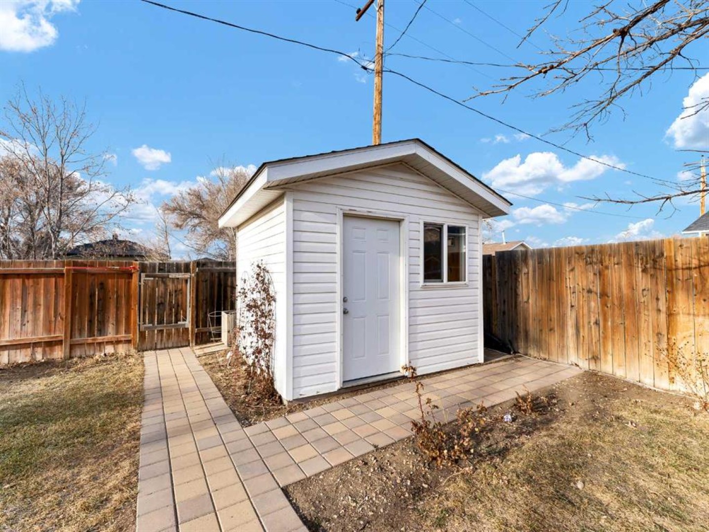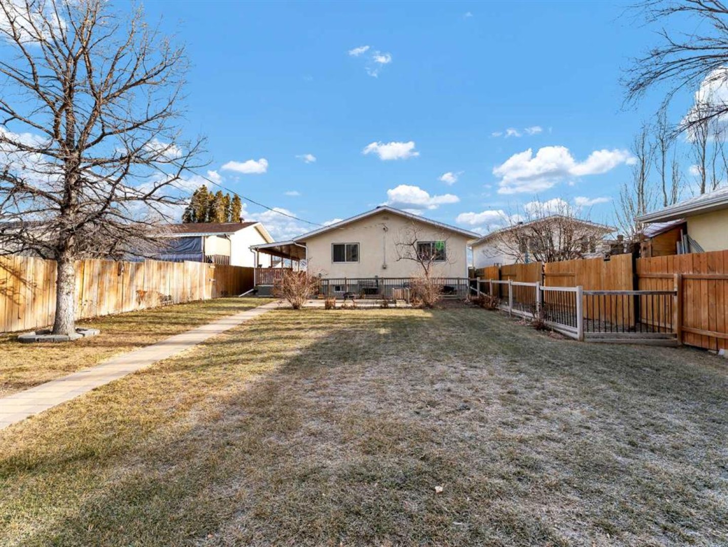 Cute and cozy bungalow in great condition, offering excellent potential for future basement development. Charming curb appeal welcomes you, where you’ll immediately notice the oversized side deck—an ideal spot to relax and enjoy your morning coffee while overlooking the beautifully finished backyard. Meticulously cared for and loved, the yard also features a generous storage shed for added convenience. Step inside to find newer vinyl flooring, neutral paint colours, and a functional floor plan that offers all the necessities of comfortable living. The entry leads into a spacious dining area that flows seamlessly into the kitchen, which is well finished with an abundance of cabinet and counter space. The living room provides ample space for entertaining and can be furnished in a variety of practical and cozy layouts, easily accommodating a home office or kids’ play area. The main floor is complete with two large bedrooms and a 4-piece bathroom. Downstairs, the basement is already framed with some electrical work completed—now simply awaiting your finishing touches. Located within walking distance to schools, the swimming pool, rink, and shopping, this home is a rare gem in the wonderful town of Redcliff. Don’t miss your opportunity on this one.