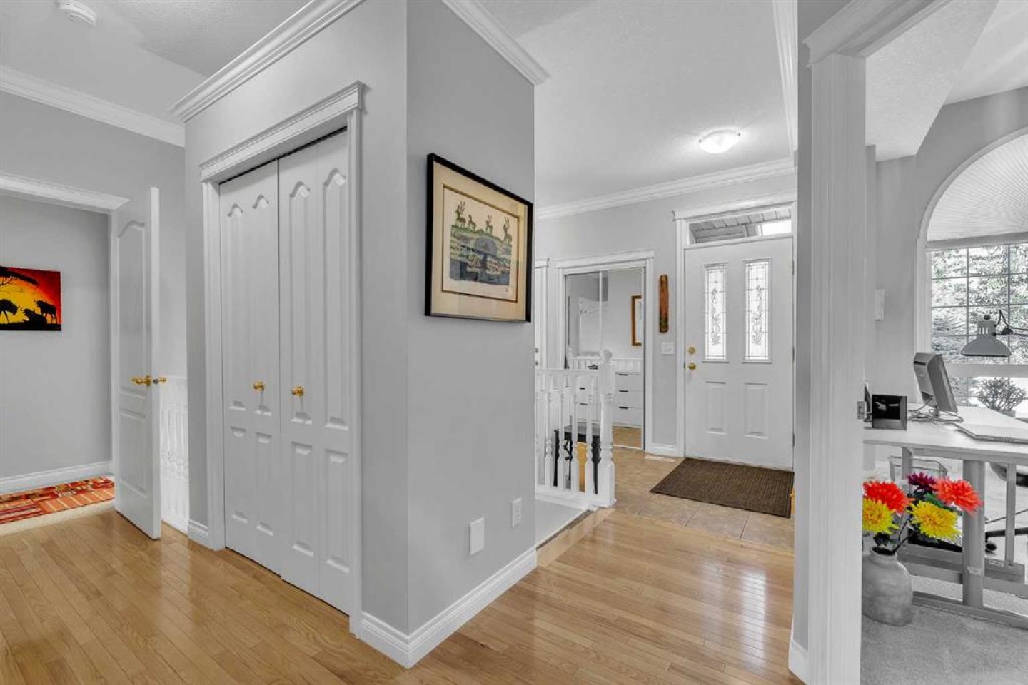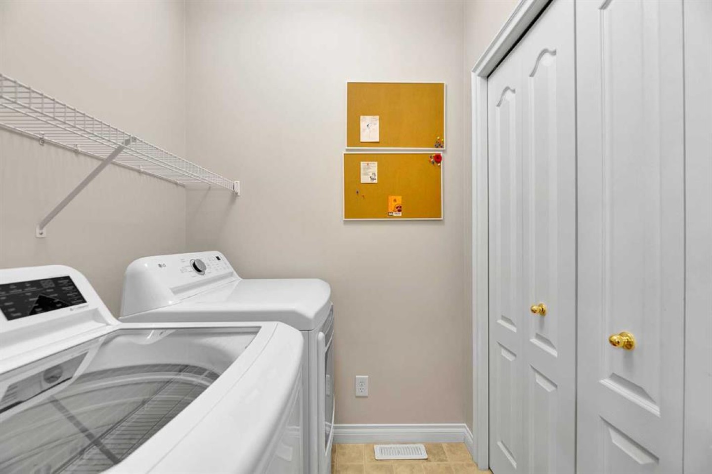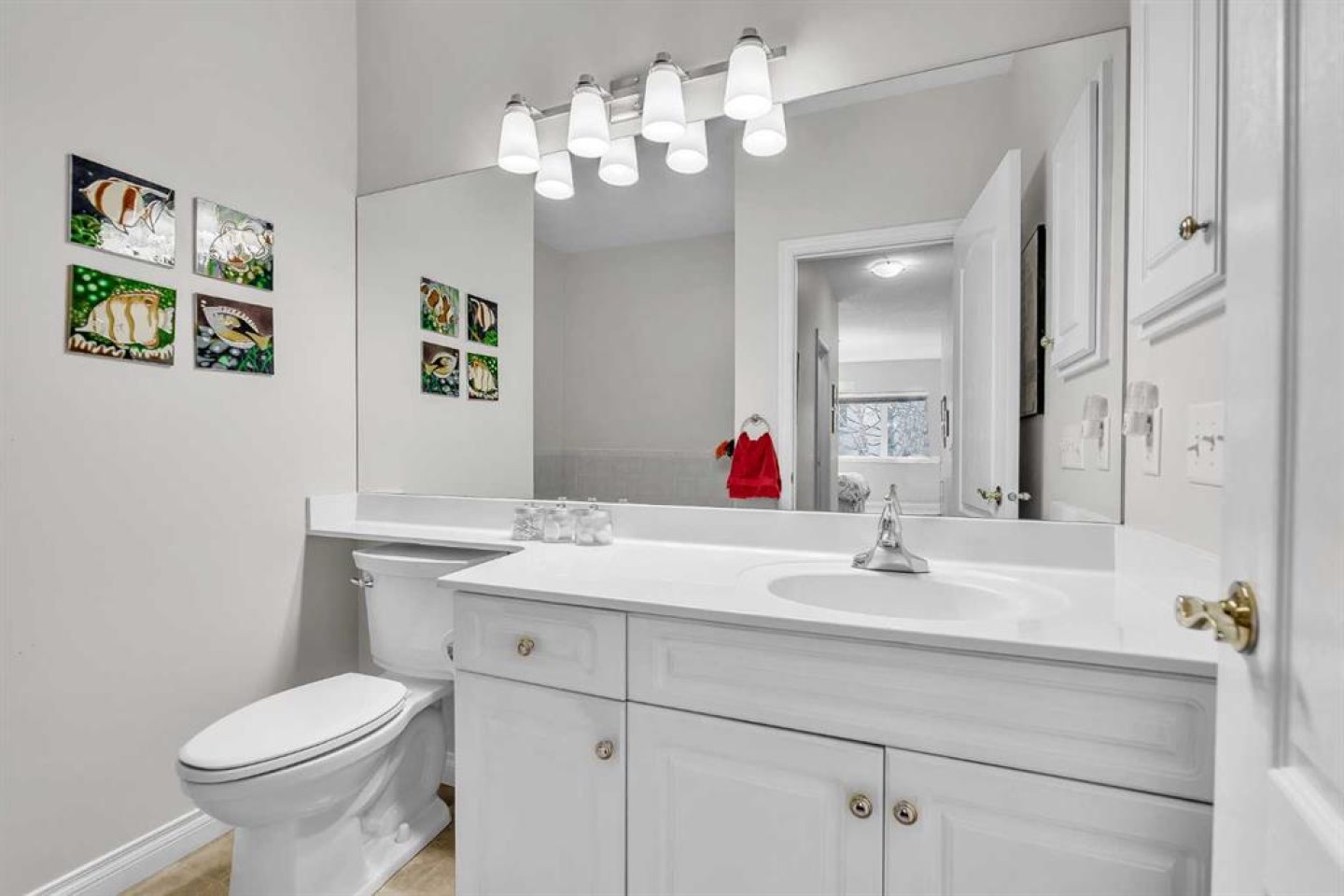 Natural light and timeless design, as well as one of the biggest floorplans in this complex, give this beautiful Shawnessy villa style and comfort in this sought-after adult (35+) estate area. Attractive landscaping frames the front porch, and inside, transom windows flood a spacious entryway with sunshine from the east. A front room makes a great home office, and features statement floor-to-ceiling windows that bring in the morning light for a perfectly illuminated workspace. The main living space begins with a sunny and open dining area. Clean lines and gorgeous hardwood balance warmth and elegance as you continue into the open living room. A gas fireplace is the focal point, inviting guests to cozy up for great conversation. In the kitchen, a monochrome palette creates an understated yet sleek aesthetic complete with white appliances. A full pantry is a desirable element, and counterspace is plentiful; sure to impress the chef of the household. A breakfast nook steps out to the balcony, with dappled shade from the treed courtyard – an ideal setting for winding down as you take in the sunset skies to the west. This level holds the primary bedroom, which is a peaceful private retreat. This secluded space includes a huge walk-in closet and an ensuite with a soaker tub and separate stand-up shower. A functional layout has the powder room and laundry just next to the entry from the double attached garage to finish this level. Downstairs, the finished basement provides tons of additional living space, with a large family room, another bedroom with a walk-in closet, and another full bathroom. The utility room also offers a massive storage area for all your seasonal items. This home has a central vac and air conditioning, as well as a new hot water tank. The complex itself is well laid out, with privacy and quiet as priorities. This home is very near the recycling and waste sheds and visitor parking, perks you and your guests will appreciate. This neighbourhood is popular for its green space, with pathways beginning only steps from your door and winding all the way to Fish Creek Park. Convenience is also a benefit; the Shawnessy shopping area is just minutes down the road, offering a plethora of stores, services, and amenities. The C-train is also nearby, giving commuters the option to hop on the LRT, or drive downtown via convenient access to Macleod Trail. Proximity to major routes like Stoney Trail put any area of the city in easy driving distance, and this community is also near Highway 22X, where you will find iconic Spruce Meadows, as well as an easy escape west into the mountains for your favourite outdoor activities like camping, hiking, mountain biking, and skiing. With 2195 sqft of developed space, this floorplan is a rare find, call today.