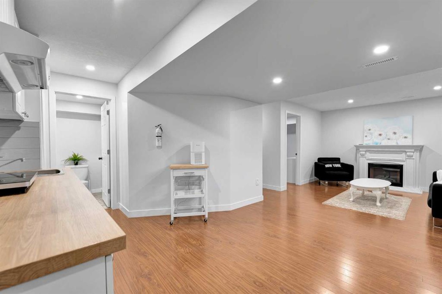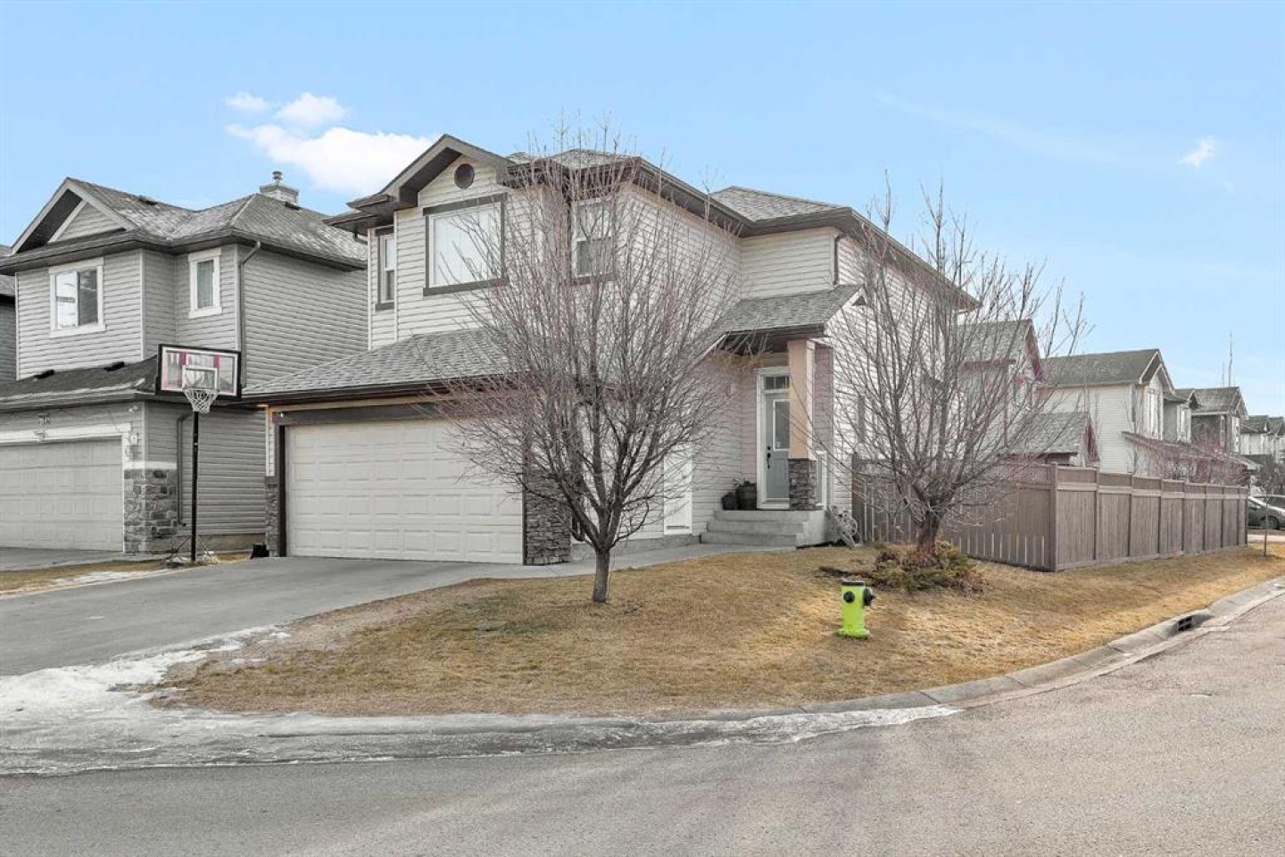 Welcome to this beautifully maintained detached home complete with an illegal suited basement, ideally positioned on a spacious corner lot in the vibrant community of Saddleridge. Offering over 2,300 sq ft of developed living space, this impressive 2-storey residence features 4 bedrooms, 3.5 bathrooms, and a double attached garage. Step inside to a bright, open-concept main floor highlighted by vinyl floors. The expansive living room, complete with a cozy gas fireplace, flows seamlessly into a well-appointed kitchen boasting white cabinetry, quartz countertops, a large island with breakfast bar, white appliances, and a separate pantry, perfect for family living and entertaining. Upstairs, you'll find a versatile bonus room, alongside 3 generously sized bedrooms. The primary suite offers a private retreat with a 4-piece ensuite and large walk-in closet. A convenient 4-piece main bath and laundry room complete the upper level. The fully finished illegal suited basement extends your living space with a spacious family/recreation room, kitchenette, an additional bedroom, 3-piece bathroom, and a laundry unit, ideal for guests or extended family. Enjoy summer days and evenings on the large, covered backyard deck, perfect for barbecues and gatherings. A double attached garage sits on a driveway providing ample parking for multiple vehicles. Situated close to schools, parks, playgrounds, shopping, dining, and the Genesis Centre, with easy access to Stoney Trail, this home offers exceptional convenience and lifestyle. Ideal for large or growing families. Don’t miss your chance to make this wonderful home yours - book your private showing today!