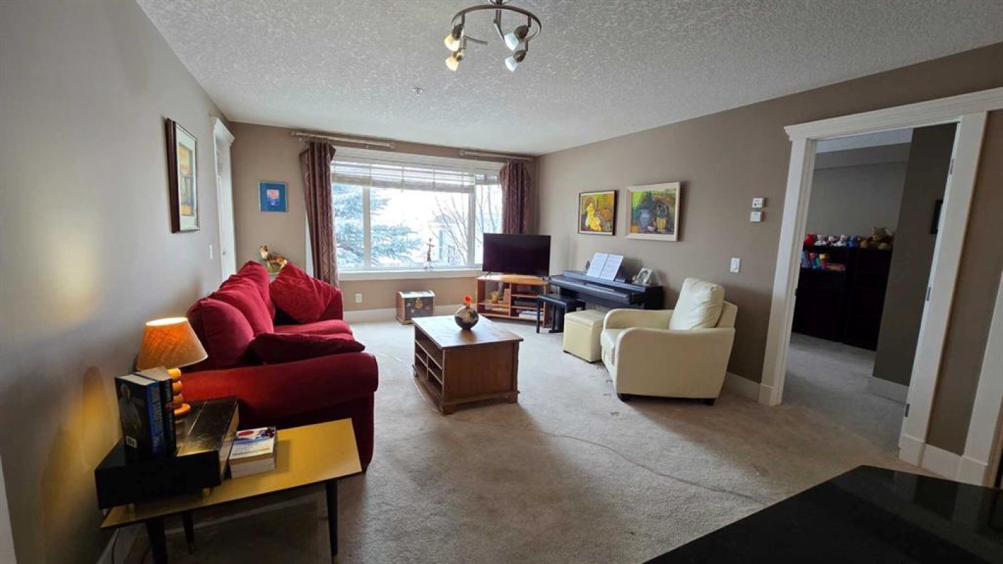 This bright and spacious 2-bedroom, 2-bathroom corner-end unit is located in the Rocky Ridge community. The apartment features South facing with a sun-filled living room a main bedroom with a walk-through closet,and 3 piece ensuite.The second bedroom also come with a 4 piece ensuite. This unit features a modern kitchen with granite countertops and Stainless steel appliances. The large patio offers outdoor space to relax and have a Bbq.This unit comes with 1 heated underground parking spot. The building includes a gym, and the HOA grants access to a lake, splash park, tennis and basketball courts. Other amenities include in-suite laundry, Close to the Tuscany C-Train Station for easy commuting. Perfect for a comfortable, active lifestyle