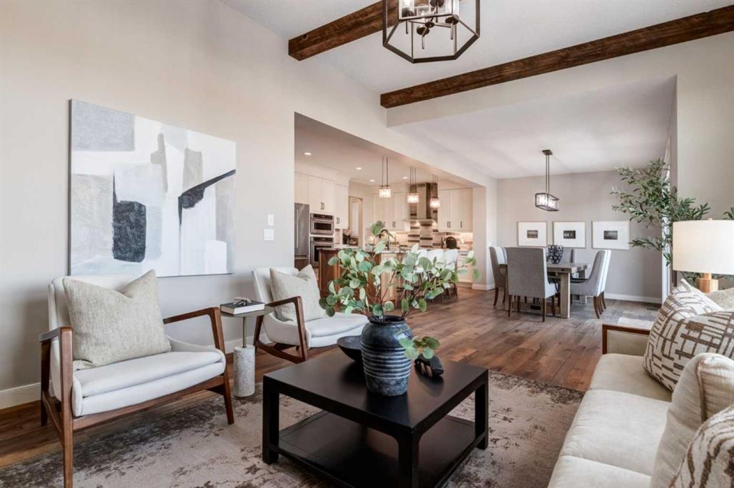 OPEN HOUSE SAT JAN 24 FR 2-4. Understated luxury and style describe this incredible executive home situated within steps to the Bow River and miles of pathway systems thru Fish Creek. Offering 3,751 SF of developed living space with 4+1 bedrooms, 3.5 bathrooms, triple attached garage and walkout basement. You are welcomed into a large, tile foyer to the bright and open main floor where you will find rustic hardwood flooring throughout, high ceilings highlighted by wood beams that adorn the living room with a majestic gas fireplace where you can enjoy backyard views and a spacious dining area allowing ample room to host family and friends. The Chef's kitchen is centrally located and the heart of the home showcasing custom maple cabinetry, an oversized island with breakfast bar, granite & quartz countertops, undercabinet lighting, walk-in pantry, butlers pantry and top of the line stainless steel appliances including gas range. A mud room with built-ins, home office and 2 piece bathroom complete this space. The upper level hosts a bonus room, primary bedroom featuring a vaulted ceiling, private sitting area, walk-in closet with extensive built-ins and a spa-like 5 piece ensuite with dual vanities, stand alone soaker tub and a separate shower. A conveniently located laundry room and 3 additional bedrooms which share a 4 piece bathroom area also found on this level. The walkout basement is sure to impress with a family room with full service wet bar, a theater room with built in speakers, two-tiered flooring, Lutron lighting and custom carpet, 5th bedroom, 3-piece bathroom and loads of storage space. The low-maintenance backyard, with synthetic grass, backs onto a ravine and provides year around enjoyment with a hot tub on the expansive aggregate patio surrounded by remote control power privacy screens. Further notable features include central ac (x2), Hunter Douglas Silhouette automated blinds, central vacuum system on all levels, built-in speakers on all levels, hot water on demand, touch faucets in the kitchen and bar, underground irrigation system, gem stone exterior lights and the over-sized garage with a dog wash, slat wall motorized lift and can fit a 1-tonne truck. Often referred to as 'Calgary’s best-kept secret', this premier estate community is conveniently located just minutes from South Health Campus, Seton YMCA, numerous schools, restaurants, shopping centers, and more. Schedule your showing today and discover everything this stunning home and thriving community have to offer!