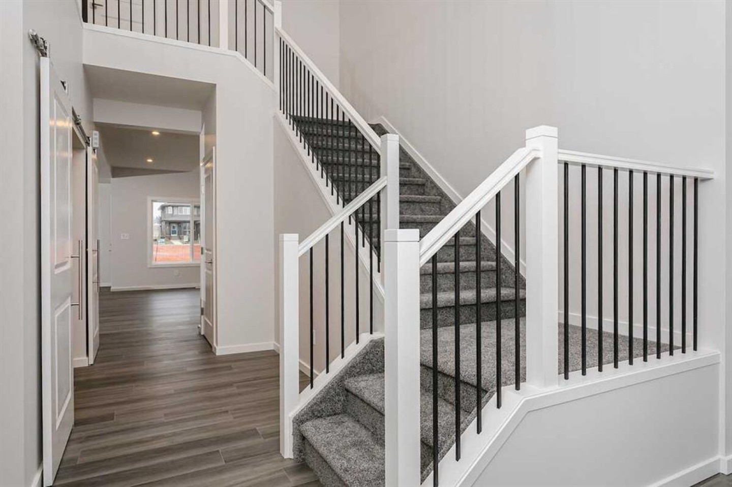 Welcome to this Bedrock Homes quick possession, ideally located on a premium corner lot in the vibrant Heartwood community of SE Calgary. Offering over 2,500 sq ft of thoughtfully designed living space, this home features a central flex room perfect for a home office or guest area, and a striking open-to-below staircase that fills the home with natural light. The chef’s kitchen is equipped with built-in microwave, chimney hood fan, and a large island that opens to the dining area and great room—ideal for entertaining. A 50” electric fireplace adds warmth and style, while metal spindle railings and custom melamine shelving elevate the finish throughout. Upstairs, enjoy a spacious bonus room and retreat to the luxurious primary bedroom featuring a freestanding tub, tiled shower, dual sinks, and private water closet. Complete with a walk-through mudroom and pantry and double attached garage, this home offers exceptional comfort, design, and location close to amenities and parks. Photos are representative.