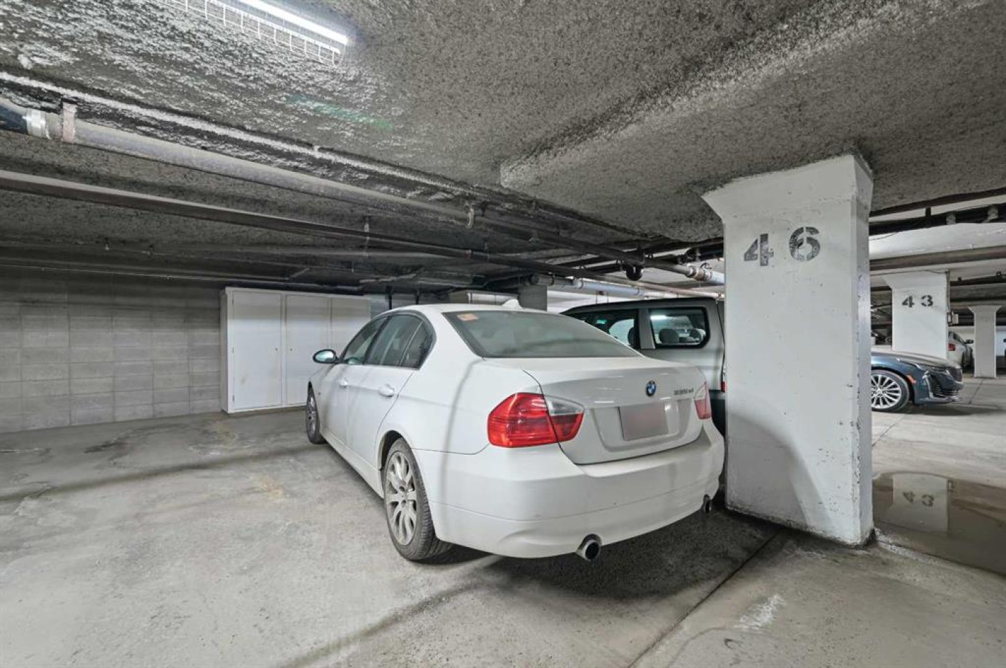 In need of some tender love and care. Bring your vision and make this unbeatable location your own! This spacious 2 bedroom, 2 bathroom condo offers the ultimate urban lifestyle in one of Calgary’s most vibrant downtown communities. Enjoy two private balconies — including one directly off the primary bedroom — perfect for morning coffee or quiet evenings. The functional layout includes a built-in A/C unit, in-suite washer and dryer, and heated underground parking. Additional highlights include access to 9 visitor parking spots, a stylish social room, common area patio, and a welcoming lobby with updated common spaces. Hampton Court is a well-managed building that has seen numerous recent upgrades, including new boilers, fire alarm and ventilation systems, resealed balconies, and security cameras. Located steps from shops, restaurants, river pathways, and downtown — this is an unbeatable location for walkable inner-city living.