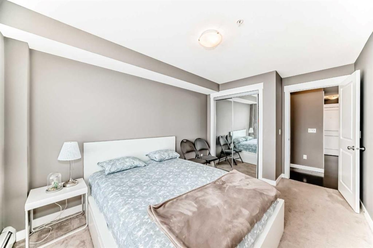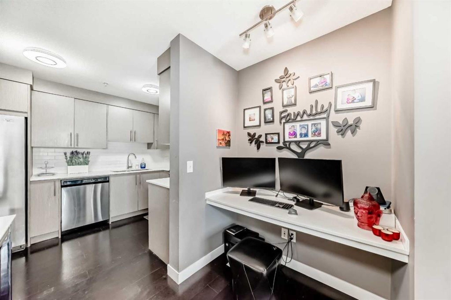 Welcome to this modern, beautifully appointed 2-bedroom, 2-bathroom condo backing onto green space in the vibrant community of Skyview Ranch. Perfect for first-time buyers, young professionals, or investors, this stylish home offers a bright open-concept layout filled with natural light. The spacious living room provides a comfortable place to unwind and opens onto a private balcony overlooking the peaceful green space—ideal for enjoying morning sunrises or relaxing evenings. The corner, chef-inspired kitchen features stainless steel appliances, ample cabinetry, and plenty of storage. The thoughtfully designed floor plan includes a generous primary bedroom with double closets and a sleek ensuite bathroom. A second well-sized bedroom is perfect for guests, a home office, or a growing family. Additional features include a second 4-piece bathroom, in-suite laundry, an open office area, titled underground parking, and convenient visitor parking. Enjoy quick access to major roadways such as Deerfoot Trail and Stoney Trail, along with nearby public transit for an easy commute to downtown Calgary. The International Airport is just minutes away. Skyview Ranch is a family-friendly community offering schools, parks, and shopping within walking distance, plus close proximity to Costco, CrossIron Mills, Chalo FreshCo, Shoppers Drug Mart, and many other everyday amenities. Don’t miss this fantastic opportunity to own a contemporary home in one of Calgary’s fastest-growing communities.