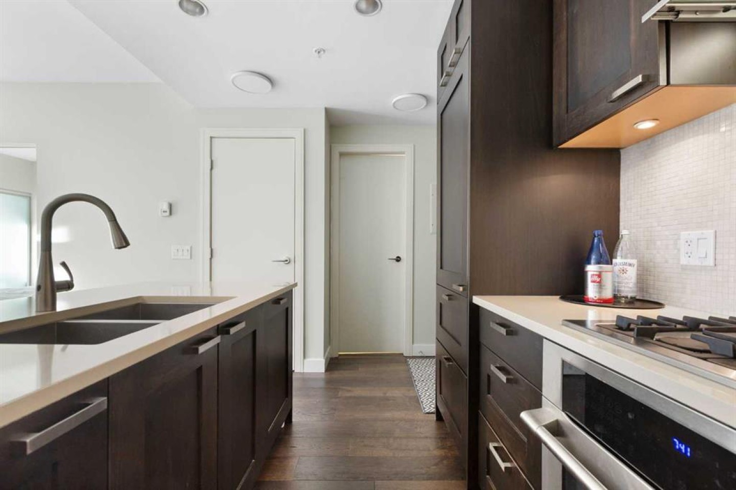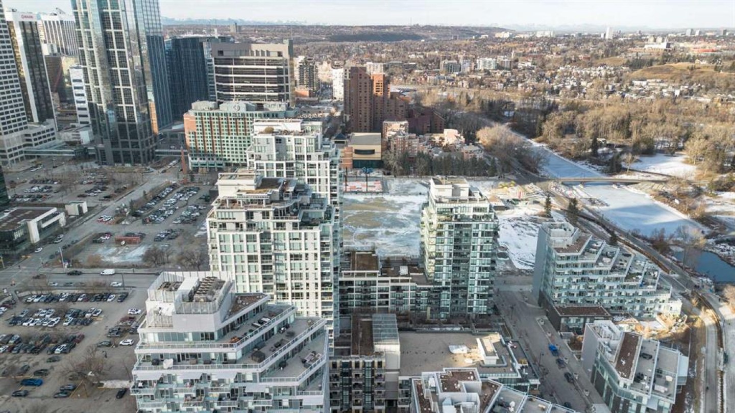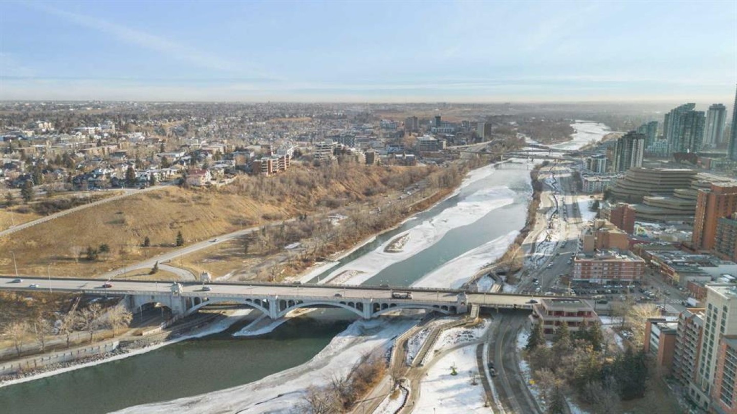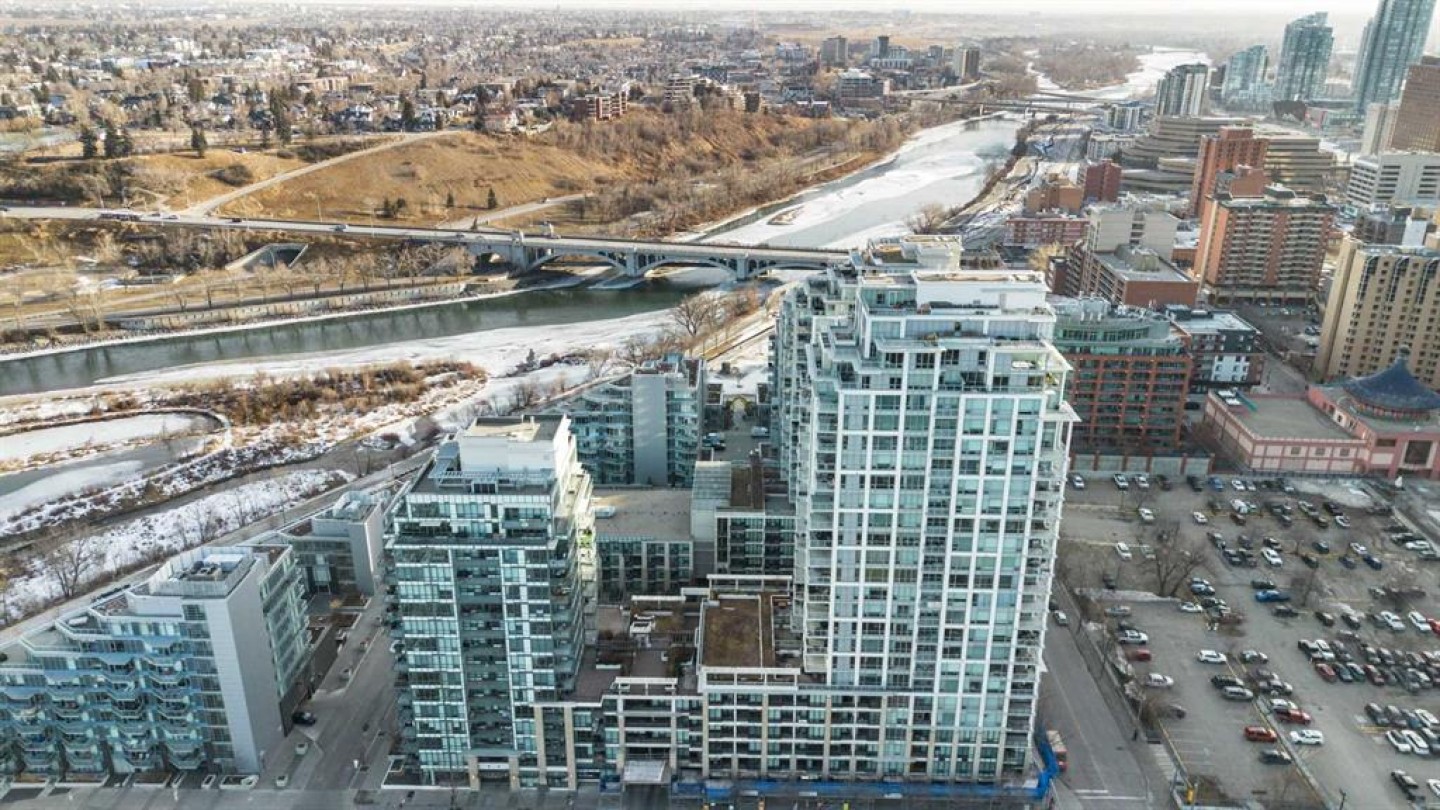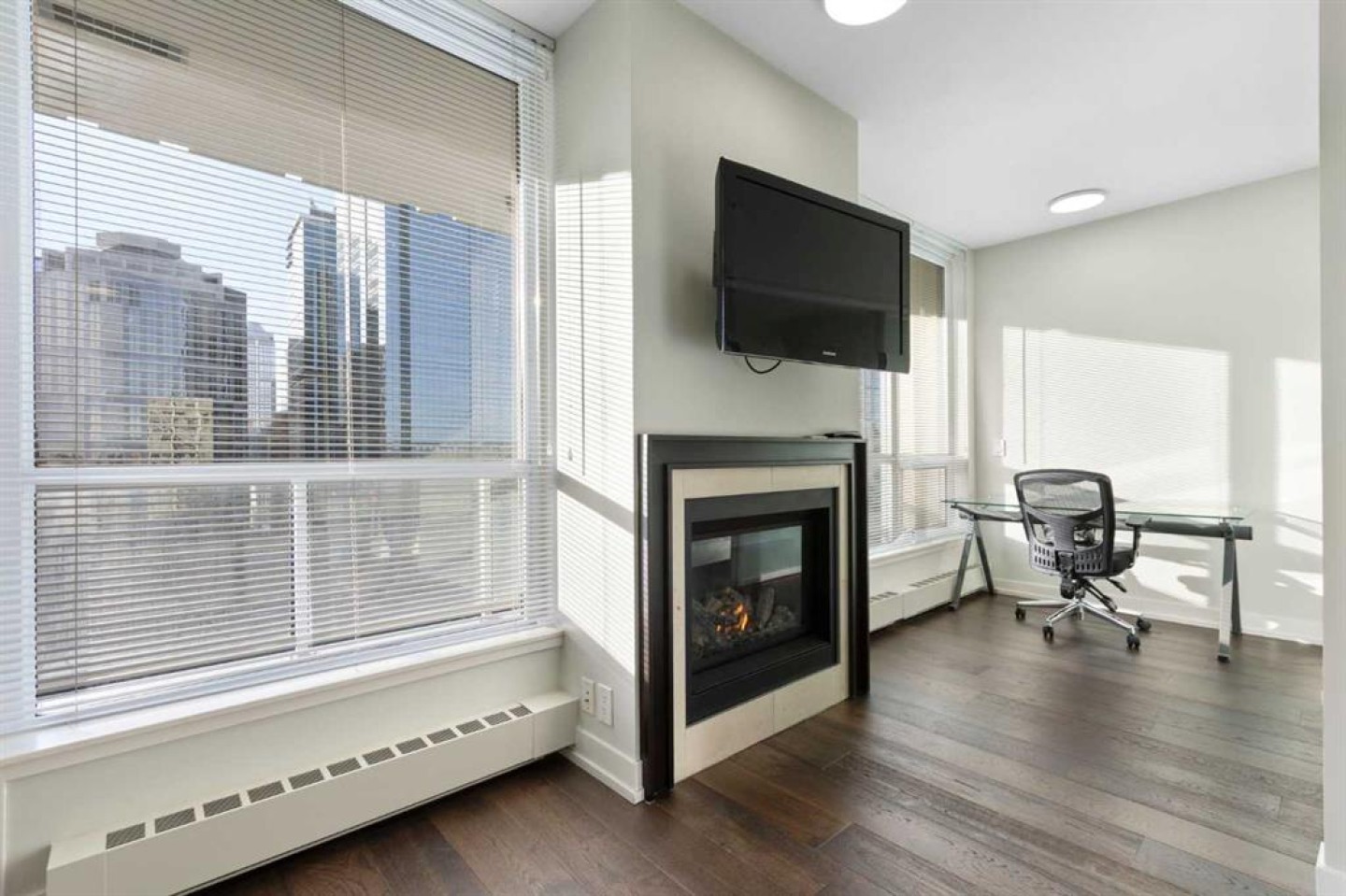 Welcome to 1826 at the Waterfront Condos—Calgary’s premier luxury address where riverfront serenity meets urban sophistication, just steps from Prince’s Island Park. This 1-bedroom + den home pairs upscale finishes with everyday convenience, making it an exceptional downtown home or a perfect executive rental investment. Enjoy captivating VIEWS of the Bow River and Calgary’s skyline, plus unbeatable walkability to top restaurants, cafés, entertainment, office towers, and cultural destinations. Inside, the open-concept layout is enhanced by quiet concrete construction and contemporary design, plus central air conditioning for year-round comfort. The gourmet kitchen features a Sub-Zero refrigerator with dual freezers, an Electrolux gas cooktop, dishwasher, built-in microwave, and sleek quartz countertops—ideal for cooking and entertaining. Floor-to-ceiling south facing windows flood the living space in natural light and open onto a spacious balcony that overlooks the city & river from the 18th floor, creating a private outdoor retreat for morning coffee or evening drinks. The versatile office/flex space is perfect for working from home, workout studio, or extra storage, and is complemented by the warmth and ambience of a gas fireplace. The generous primary bedroom includes a walk-through closet and a spa-inspired ensuite with a deep soaker tub—your own calming escape at the end of the day. Residents enjoy over 6,000 sq. ft. of PREMIUM AMENITIES, including a fully equipped fitness centre, yoga studio, hot tub, sauna, private cinema, and owner’s lounge—all supported by the prestige and peace of mind of full-service CONCIERGE. Secure heated underground parking is complemented by visitor parking and an on-site car wash, while a dedicated parking stall and large storage locker add exceptional convenience. Perfectly positioned along the river pathways and moments from Prince’s Island Park, Stephen Avenue, grocery stores, and the C-Train, this location offers everything you love about Calgary living—right at your doorstep. Discover the ideal combination of luxury, lifestyle, and long-term value at Waterfront.