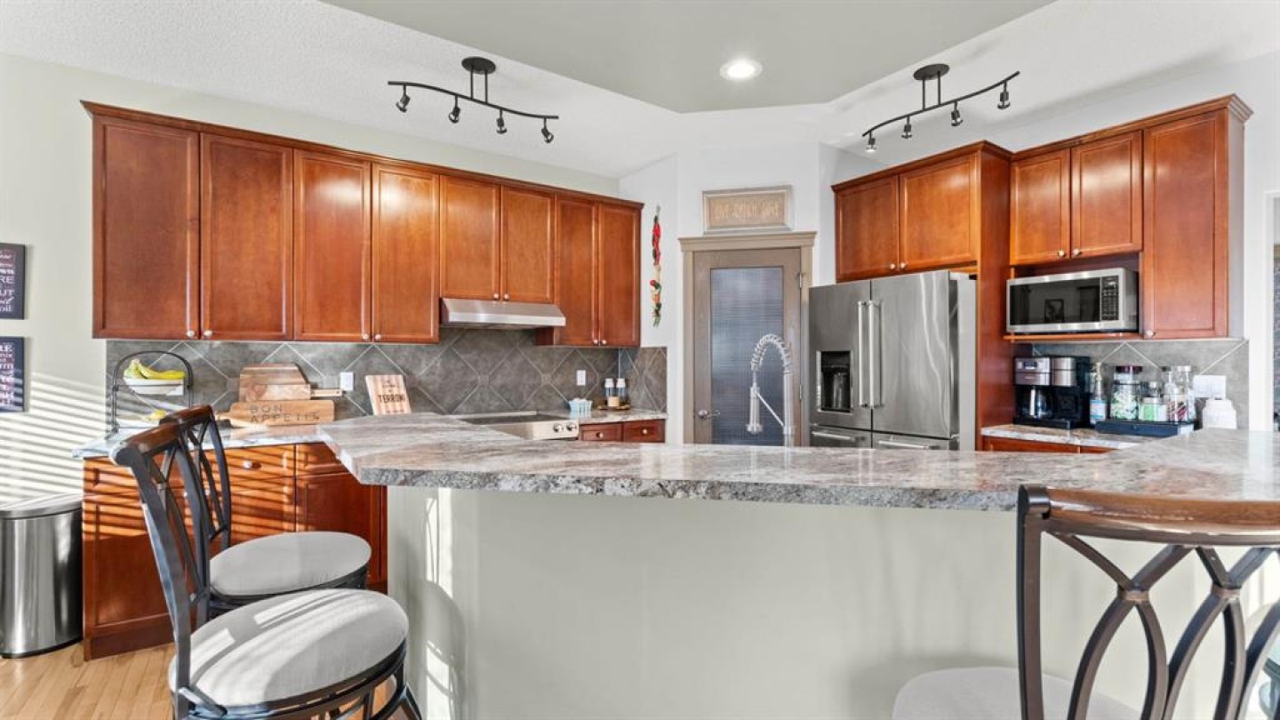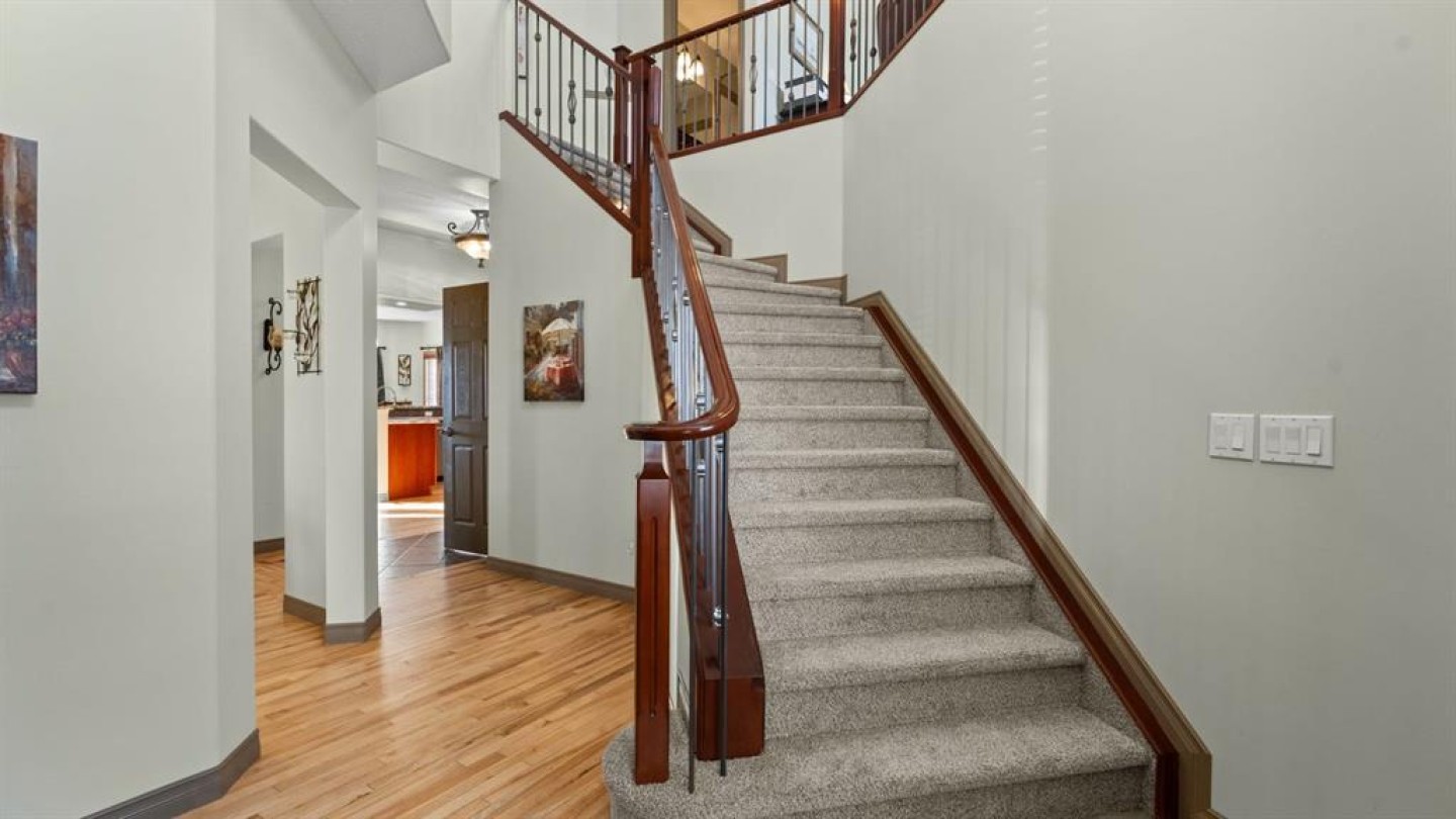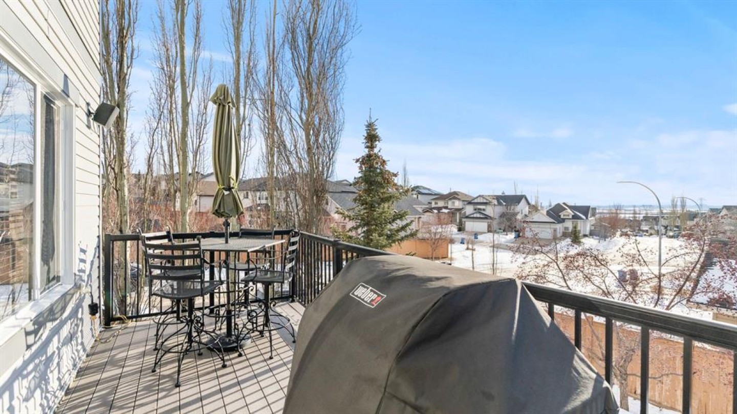 Welcome to this beautifully maintained two-storey home, ideally situated on a desirable corner lot in the highly sought-after community of Rocky Ridge. Offering 2,420 sq ft of above-grade living space plus an additional 1,113 sq ft in the fully developed walkout basement, this home delivers exceptional space, comfort, and versatility for today’s modern family. The main level features a bright and open-concept layout with rich hardwood flooring and large windows that flood the home with natural light. The spacious living room is anchored by a cozy fireplace with custom surround and built-in niches, creating a warm and inviting focal point. Adjacent is a generously sized dining area, perfect for hosting family gatherings and entertaining guests. At the heart of the home is the thoughtfully designed kitchen, showcasing a huge central island, granite countertops, stainless steel appliances, and ample cabinetry. A walk-through corner pantry offers seamless flow to the mudroom and garage, while the sunny breakfast nook provides the perfect spot for casual meals and everyday living. A convenient main-floor laundry room and a stylish powder room complete this level with functionality and flair. Upstairs, you’ll find three spacious bedrooms, including a beautiful primary retreat designed for relaxation. The primary bedroom features large windows, soft natural light, and a tranquil atmosphere, complemented by a luxurious ensuite with dual vanities, a deep soaker tub, and a separate shower — your own private spa-like escape. The additional bedrooms are well-sized and versatile, ideal for children, guests, or a home office. A standout feature of the upper level is the expansive bonus room, offering a perfect space for movie nights, a play area, or a secondary living room. With vaulted ceilings, large windows, and an open feel overlooking the main floor, this space adds incredible flexibility and family-friendly functionality. The fully developed walkout basement extends the home’s living space with a generous recreation area, a fourth bedroom, and a full bathroom, making it ideal for guests, teens, or a private home office. Large windows and direct access to the backyard ensure this level is filled with natural light and feels bright and welcoming — a rare and highly desirable feature. Outside, enjoy your beautifully landscaped and fenced backyard, complete with a raised deck off the main level and a lower patio, offering multiple outdoor spaces to relax, entertain, and enjoy Calgary’s seasons. The corner lot provides additional privacy and yard space, while the mature trees and thoughtful landscaping create a peaceful outdoor retreat. Additional highlights include a double attached garage, abundant storage throughout, and a prime location close to top-rated schools, parks, pathways, and easy access to major routes and amenities. This is a rare opportunity to own a spacious, well-appointed family home in one of northwest Calgary’s most desirable communities.