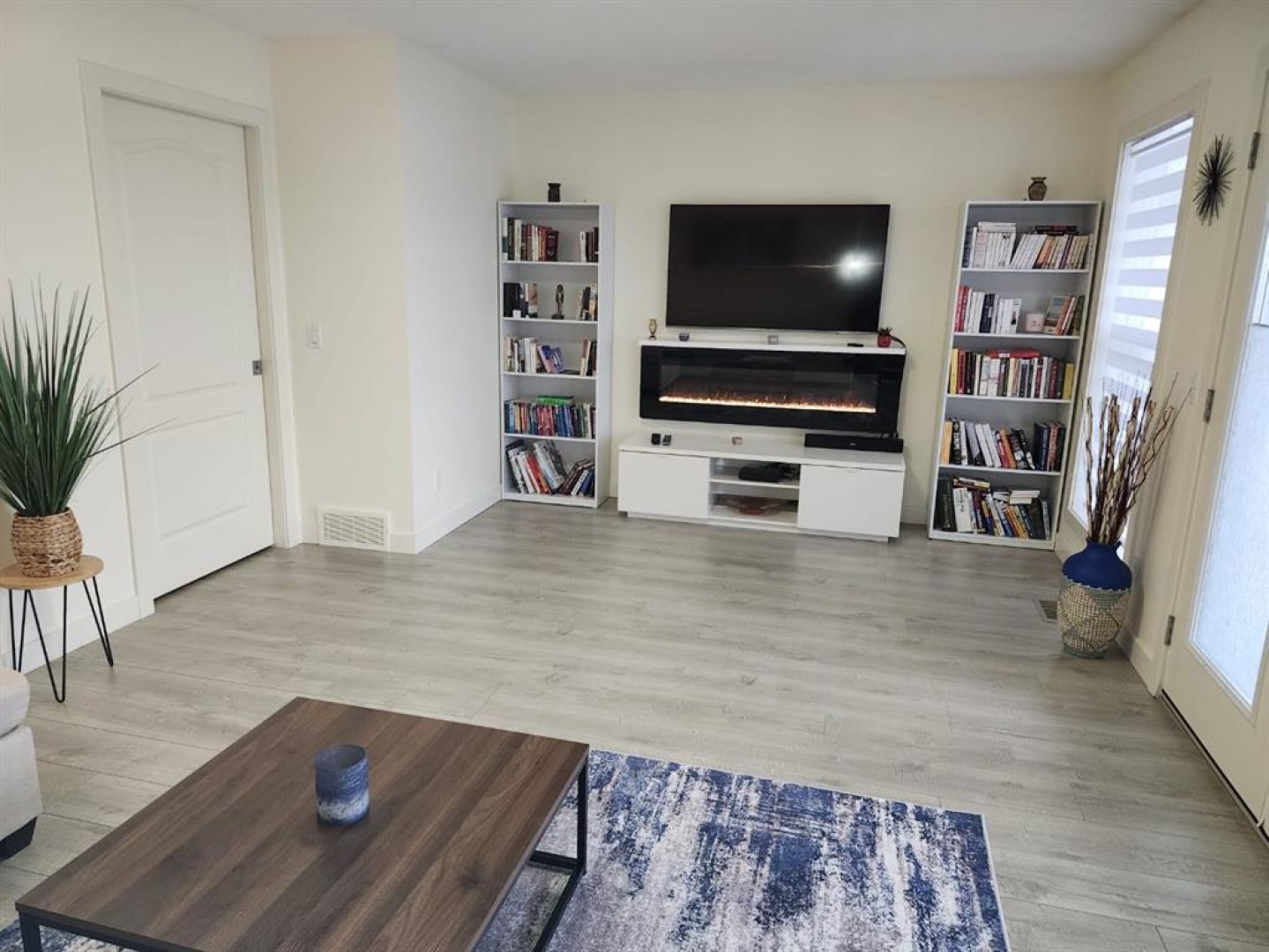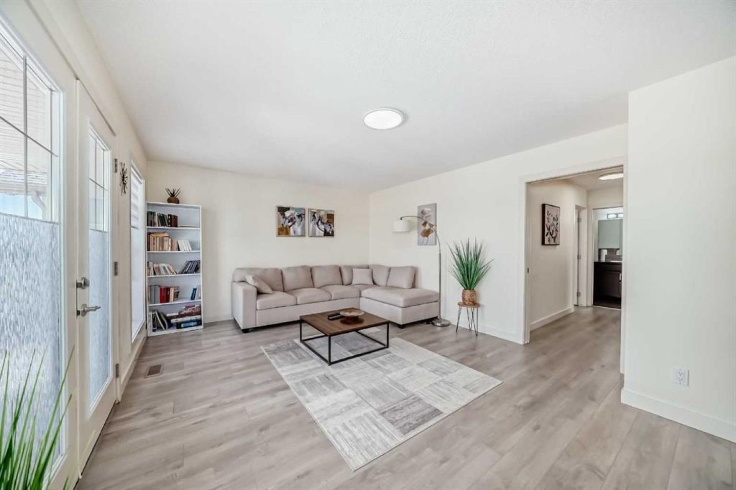 Welcome to your new home in Auburn Bay, the highly sought-after family-oriented LAKE community. Auburn Bay offers resident access to the private lake, sandy beach, tennis courts, bbq areas and other year-round activities, top-rated schools, nearby shopping and restaurants, quick access to Stoney Trail and Deerfoot and South Health Campus. This home was beautifully renovated throughout in 2024 and the basement developed with City permits. The renovation included flooring replacement with quality laminate, painting, new blinds, new light fixtures, office enclosure, major kitchen upgrade with new kitchen appliances, and powder room upgrade. As you enter the home, you will find a French doors enclosed OFFICE where the morning sunshine enters the large window, then at the back of the home, you will find the open concept living room with gas fireplace, the kitchen with extended central island and new quartz countertops. The dining area is filled with natural light, and it has direct access to the newly refreshed deck with private panels and a new pergola, a beautifully upgraded and maintained backyard, perfect for family gatherings and weekend barbecues. You can enjoy the afternoon and evening sun in this west-oriented yard. The main floor also has an upgraded powder room, a mudroom/laundry conveniently located as you enter the home from the insulated, double garage. The mudroom extends with pantry right off the kitchen. The upstairs has a LARGE master bedroom that accommodates a king bed with an ensuite 5-piece bathroom and walk-in closet, 2 additional good-sized bedrooms, one with its own walk-in closet, another 4-piece bathroom and the family room with oversized windows and French doors that provides the perfect space for movie time, or a second living area. The family room comes with included electric fireplace. From the family room you walk on the east oriented covered balcony to enjoy the sun with your morning coffee. The basement: fully developed in 2024, offers a large recreation room, another bedroom, a 3-piece bathroom and a multi-purpose den. The basement has electric baseboard heaters in all spaces and in-floor heating in the bathroom. Both the front and the back yard have a BEAUTIFUL well-maintained lush greenery and plenty of flowers – lilac, peonies, roses. Come see for yourself! Book your private tour today. WELCOME HOME to a house that shows pride of ownership !