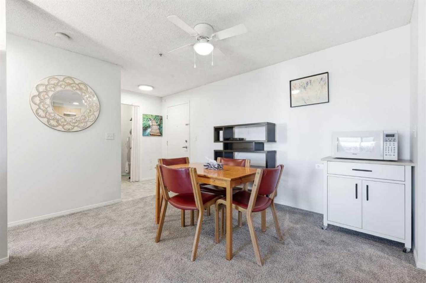 Welcome to this bright third-floor 2-bedroom, 2-bathroom condo featuring sweeping mountain views that instantly elevate everyday living. As you step inside, you're welcomed by a functional entryway with space to settle in before the layout opens into a sun-filled living area. With its southwest-facing exposure, natural light pours through large windows and flows throughout the home, creating a warm and inviting atmosphere year-round. The kitchen connects seamlessly to the main living and dining area, offering generous cabinetry and practical prep space — perfect for cooking, hosting, or simply enjoying a quiet night in. Just beyond, sliding doors lead to your private balcony — the true standout of this home. From here, unobstructed mountain views stretch across the horizon, providing a daily backdrop that’s rarely found at this price point. The layout is thoughtfully designed, with the bedrooms positioned on opposite sides for added privacy. The primary bedroom feels like its own retreat, complete with a walk-through closet and private ensuite. The second bedroom is bright and versatile — ideal for guests, a roommate, or a comfortable home office. In-suite laundry and additional storage are tucked away separately for everyday convenience. Titled, heated underground parking provides comfort and security year-round, while ample visitor parking makes hosting easy. The building is equipped with a 24/7 security system and benefits from regular on-site janitorial service that helps keep common areas clean and well maintained. Condo fees include all utilities, simplifying monthly budgeting. Located directly across from Elliston Park, you're just steps from one of the area's most vibrant community spaces — featuring a dog park, playground, scenic walking trails, picnic areas, and a peaceful lake. It's an ideal setting for relaxing, spending time outdoors, or enjoying Calgary’s sunshine. With quick access to 17th Avenue, Stoney Trail, downtown Calgary, the East Hills shopping district, and Chestermere, the location offers exceptional convenience and connectivity. Whether commuting, exploring nearby pathways, or watching the GlobalFest fireworks, everything is within easy reach. Bright, functional, and defined by incredible views — this is a home that feels right the moment you walk in.