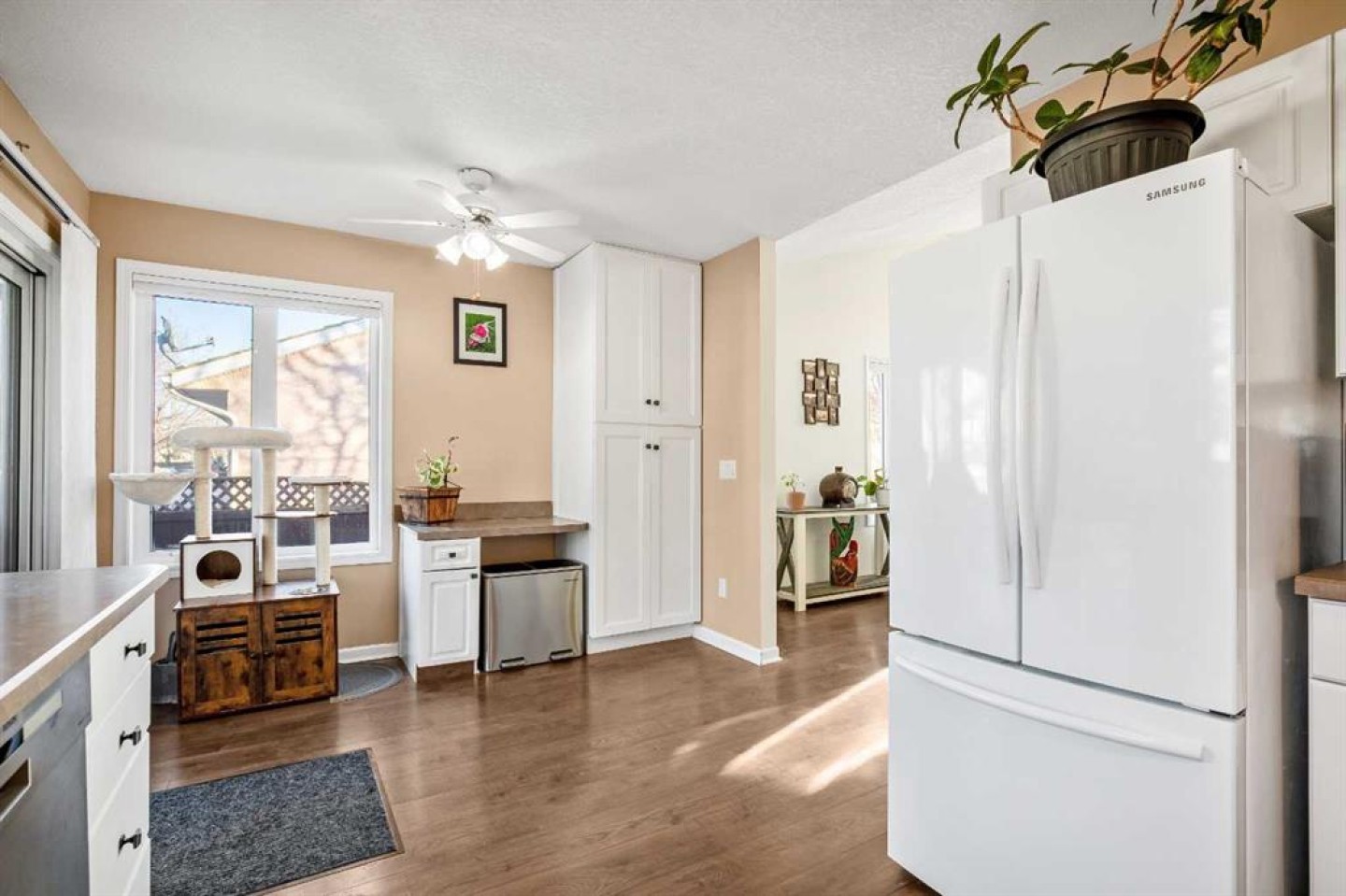 This beautiful semi detached bungalow is located in Strathmore - a growing small town community offering a very good place to live especially for families and known for its community spirit, festivals, etc. As you enter through the front door you will notice the spacious open concept living room/dining room (freshly painted) with vaulted ceilings; an abundance of natural lighting; an inviting gas fireplace and laminate flooring throughout. Nicely laid out kitchen (new dishwasher 2023) with sliding doors for access to deck/pergola and landscaped back yard. Primary bedroom is large with his and hers closets, 3 pce. en-suite bathroom. Good sized 2nd bedroom. 4 pce. bathroom. Laundry room conveniently located on main with access to oversized double attached garage. Lower level is fully developed and has been updated 2025 (newer laminate flooring and paint). Huge rec/games room; large 3rd bedroom; den/office with French glass doors; 4 pce. bathroom. Mechanical room with storage complete this level. Back lane. Central air conditioning. Wonderful location…close to all amenities, shopping, parks, walking paths, golf and easy access to highway 1.