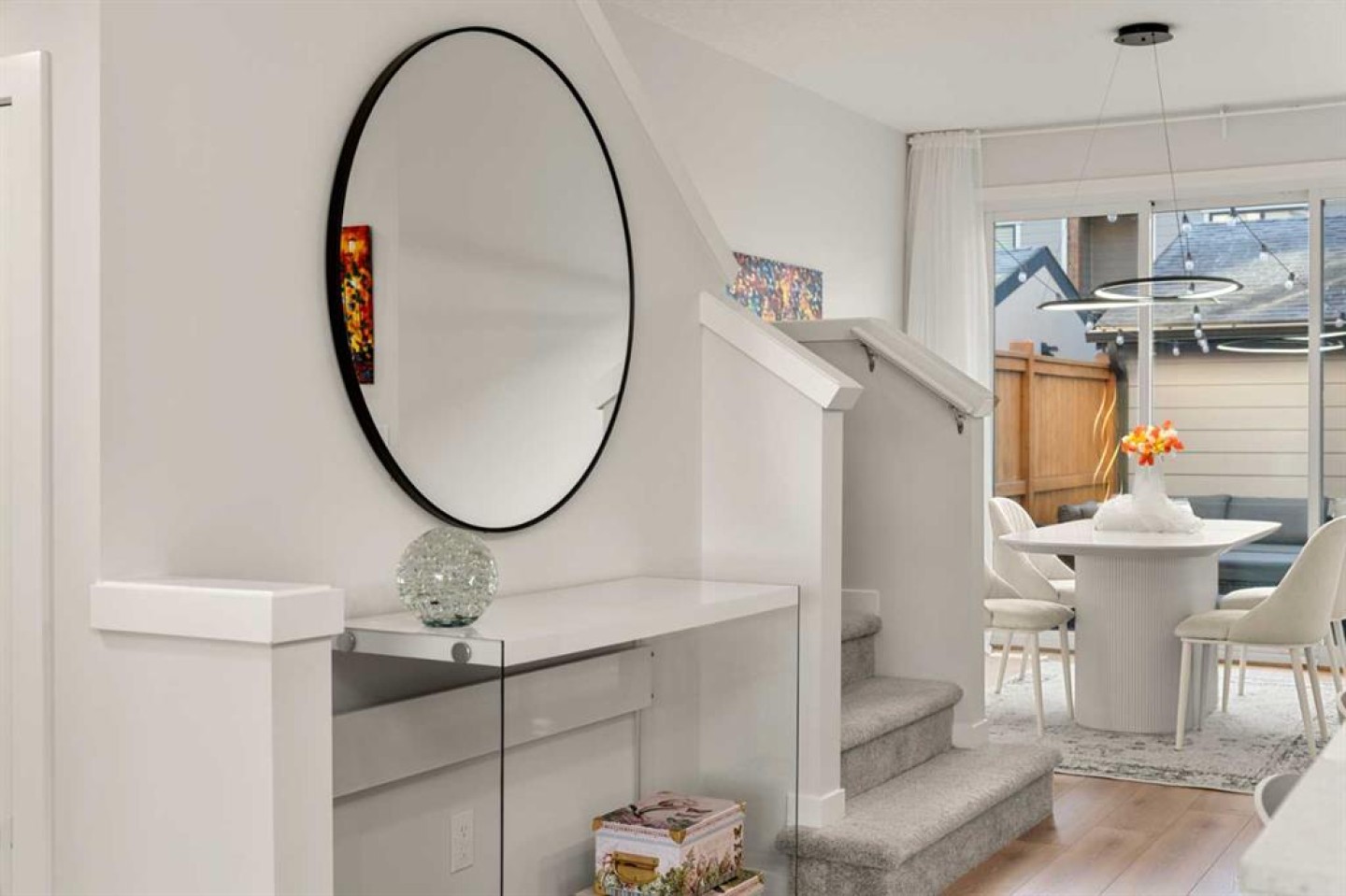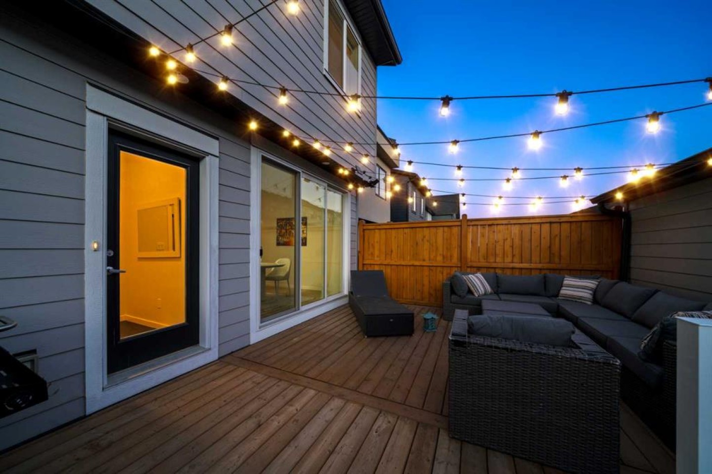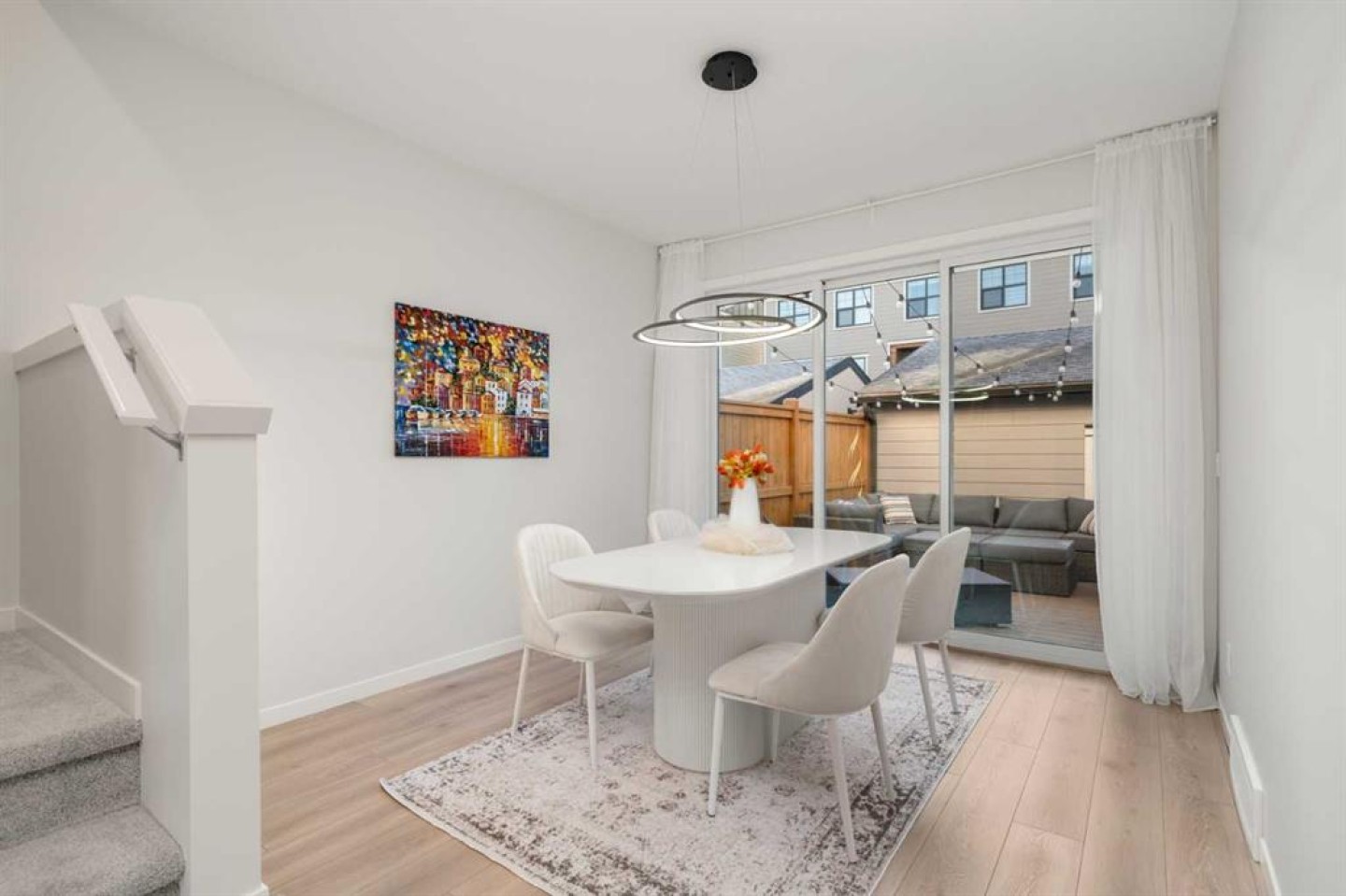 Immaculate and truly move-in ready, this Calbridge Homes Vista EV shows like new and offers a rare opportunity to enjoy a fully finished home without the wait or work of building. The modern layout spans three levels with three bedrooms and two and a half bathrooms, capped by a stunning third-floor bonus room that opens directly onto an incredible rooftop patio, a rare and highly desirable feature. The main level features a bright, open layout with 9-foot ceilings and great flow for everyday living. The kitchen offers ceiling-height cabinetry, a dedicated coffee bar, ample pantry space, and a large island, while the dining area opens directly to the rear deck, creating an easy indoor-outdoor connection. Upstairs, the primary bedroom offers generous space and a walk-in closet, paired with a well-appointed ensuite featuring dual vanities, a glass-enclosed shower, and a soaker tub. The conveniently located upstairs laundry area sits just steps from the primary bedroom. Two additional bedrooms and a full bathroom complete the second level. The third-floor bonus room is a true retreat, offering a bright, relaxed space to unwind, work, or host friends, with direct access to the rooftop patio and open-sky views that make it feel like a private escape above it all. Outside, the home is fully finished with low-maintenance landscaping, full fencing, and a spacious rear deck, making it truly ready to enjoy from day one. Located in Alpine Park, one of Calgary’s most thoughtfully designed new communities, residents enjoy walkable pathways, parks and picnic areas, community gardens, Skyline Pond, tennis and basketball courts, Central Park with city views, and a fully fenced, off-leash dog park within walking distance. The upcoming Alpine Park Village Centre will add cafés, shops, and everyday conveniences just minutes from your door. A rare combination of like-new condition, exceptional outdoor space, and a thoughtfully designed community, this home delivers an elevated and connected lifestyle.