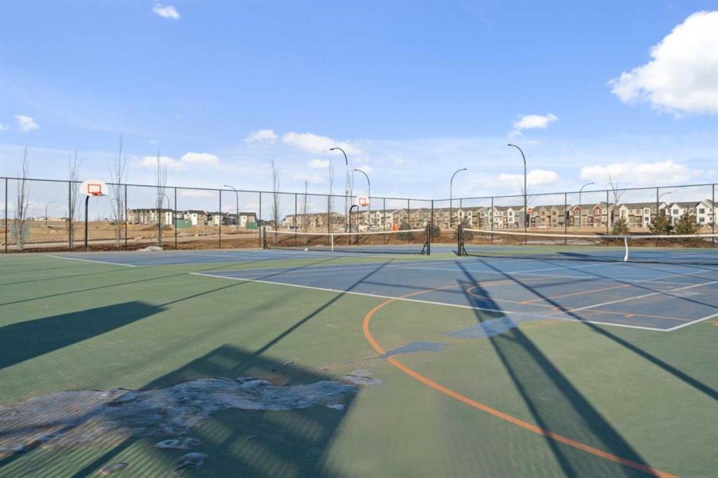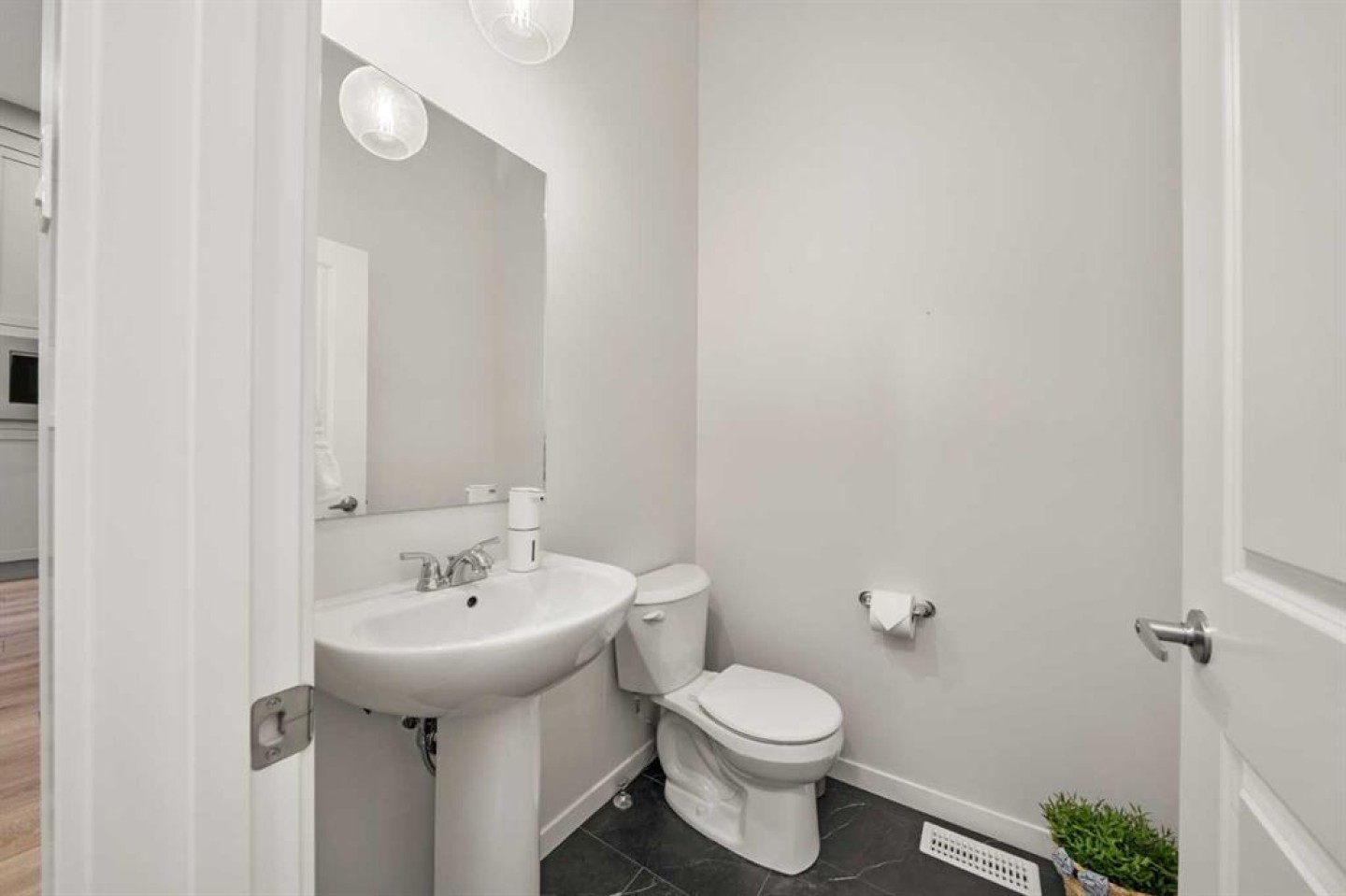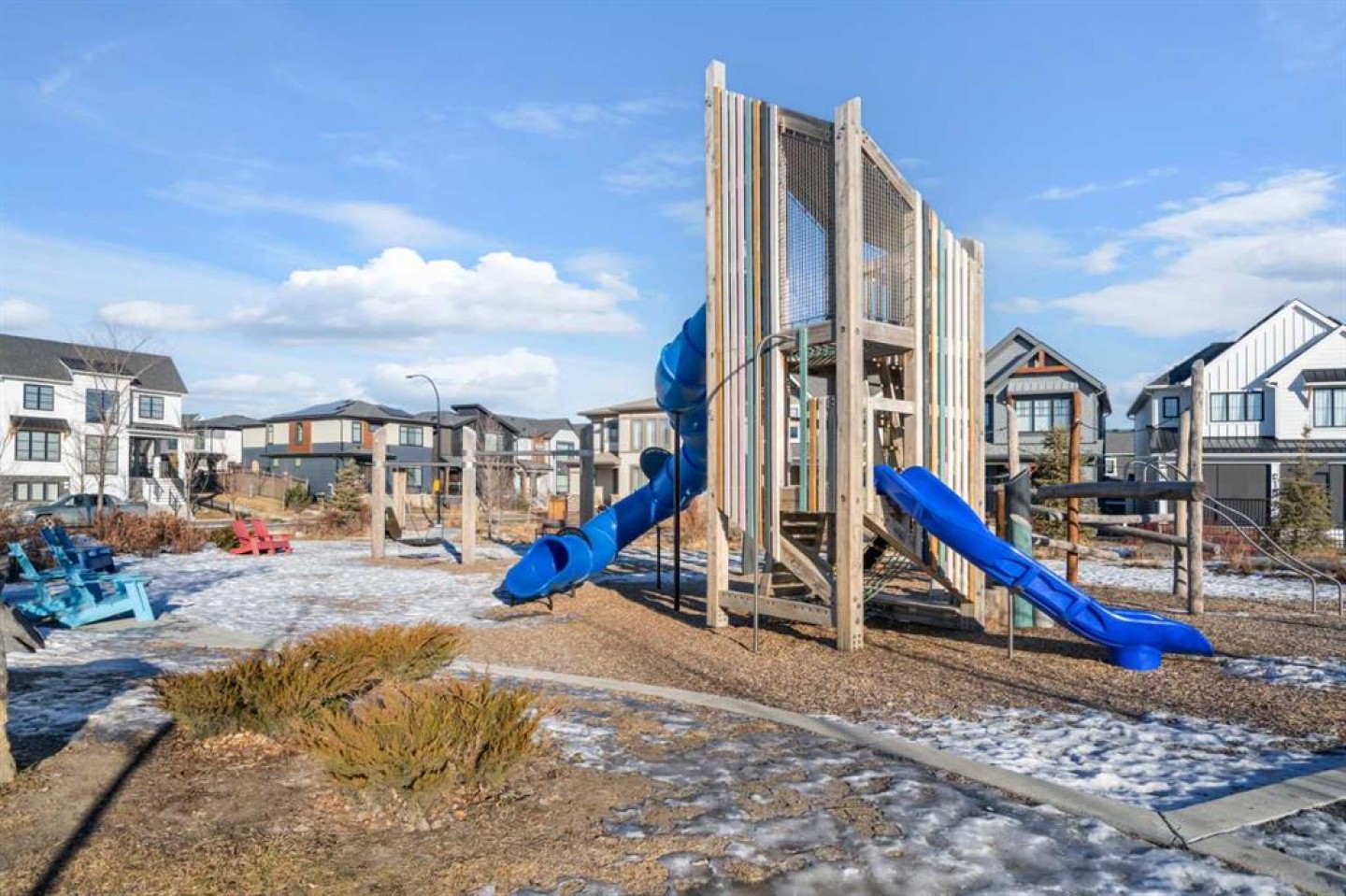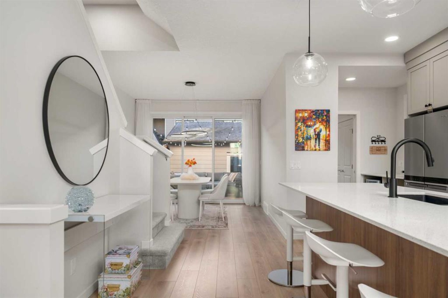 Immaculate and truly move-in ready, this Calbridge Homes Vista EV shows like new and offers a rare opportunity to enjoy a fully finished home without the wait or work of building. The modern layout spans three levels with three bedrooms and two and a half bathrooms, capped by a stunning third-floor bonus room that opens directly onto an incredible rooftop patio, a rare and highly desirable feature. The main level features a bright, open layout with 9-foot ceilings and great flow for everyday living. The kitchen offers ceiling-height cabinetry, a dedicated coffee bar, ample pantry space, and a large island, while the dining area opens directly to the rear deck, creating an easy indoor-outdoor connection. Upstairs, the primary bedroom offers generous space and a walk-in closet, paired with a well-appointed ensuite featuring dual vanities, a glass-enclosed shower, and a soaker tub. The conveniently located upstairs laundry area sits just steps from the primary bedroom. Two additional bedrooms and a full bathroom complete the second level. The third-floor bonus room is a true retreat, offering a bright, relaxed space to unwind, work, or host friends, with direct access to the rooftop patio and open-sky views that make it feel like a private escape above it all. Outside, the home is fully finished with low-maintenance landscaping, full fencing, and a spacious rear deck, making it truly ready to enjoy from day one. Located in Alpine Park, one of Calgary’s most thoughtfully designed new communities, residents enjoy walkable pathways, parks and picnic areas, community gardens, Skyline Pond, tennis and basketball courts, Central Park with city views, and a fully fenced, off-leash dog park within walking distance. The upcoming Alpine Park Village Centre will add cafés, shops, and everyday conveniences just minutes from your door. A rare combination of like-new condition, exceptional outdoor space, and a thoughtfully designed community, this home delivers an elevated and connected lifestyle.