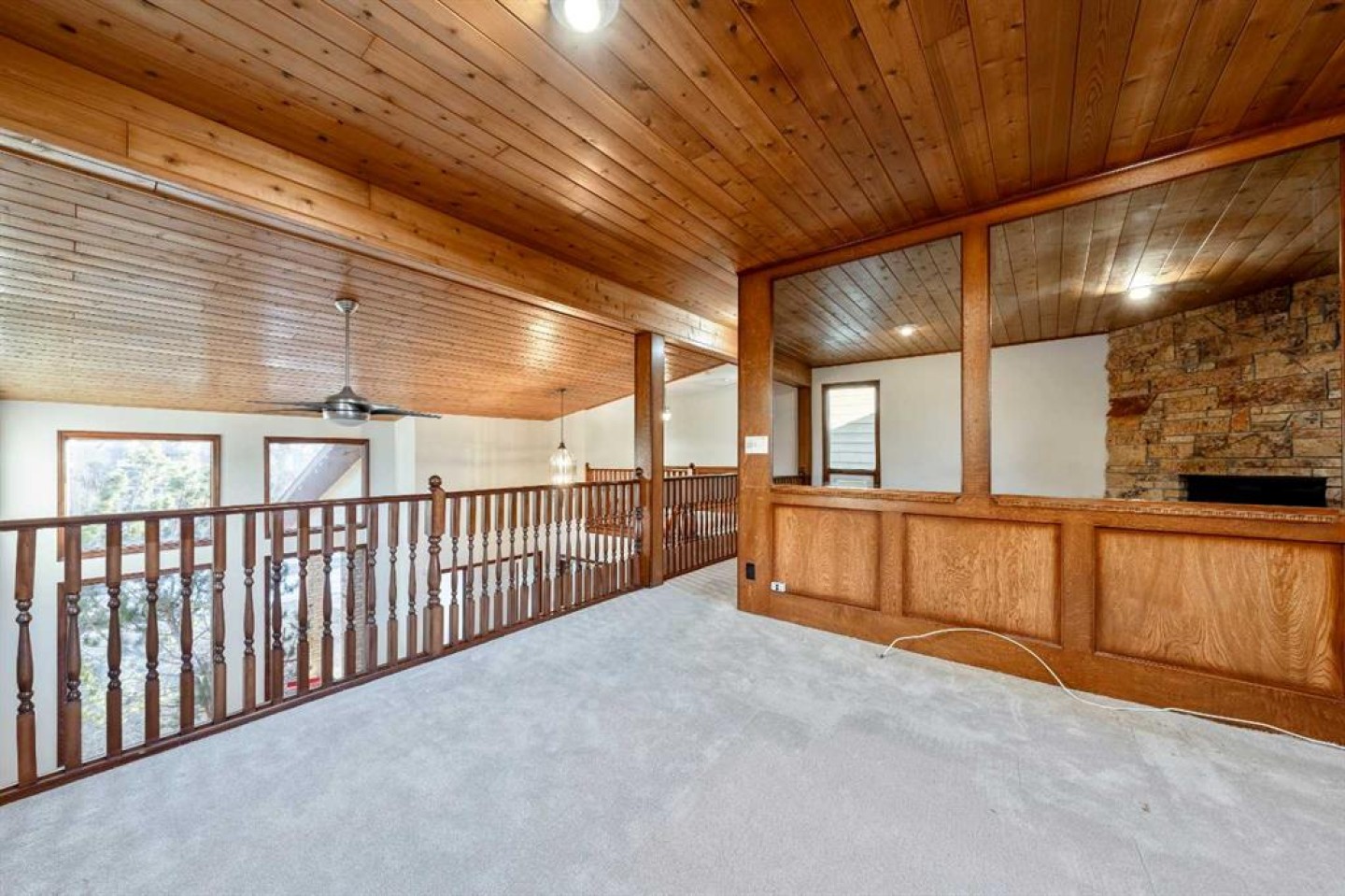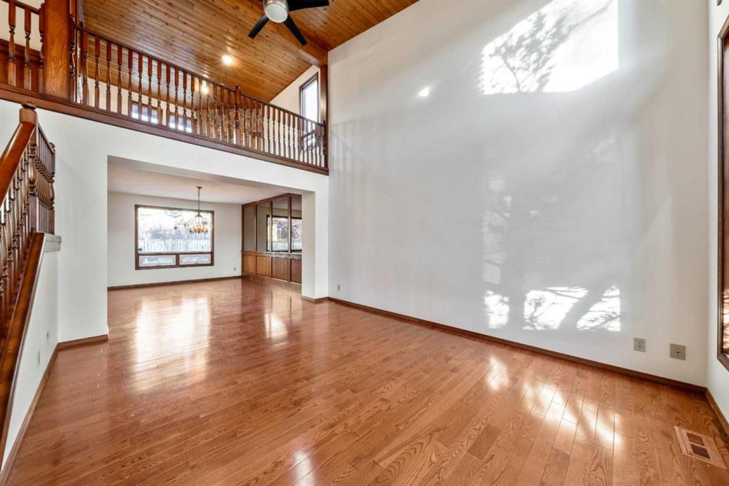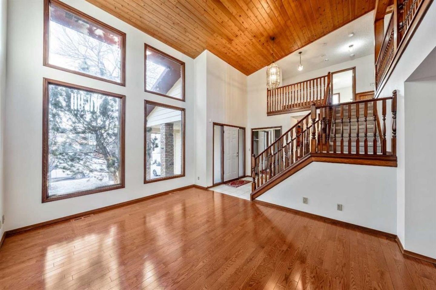 Incredible Flip Opportunity! This well-maintained two-storey home offers exceptional potential for a stunning remodel. Featuring 2,478 sq ft of above-grade freshly painted living space, 3 generous sized bedrooms, 3.5 bathrooms, and two wood-burning fireplaces. The main floor is flooded with natural south-facing light from the impressive floor-to-ceiling front windows and showcases hardwood floors, a formal living room with 20-ft vaulted ceilings and tongue-and-groove wood detail, a spacious dining room, and large kitchen. The sunken family room with fireplace, wet bar, patio doors to the deck overlooking the private backyard, main-floor laundry, 2-piece bath, and access to the oversized double attached garage complete the main level. Upstairs offers a generous primary retreat with private balcony, walk-in closet, 4-piece ensuite, and attached den/flex space with a second fireplace, open to below creating a grand feel. Two additional bedrooms and a full bath complete the upper level. The bright, open basement is undeveloped and ready for your vision. This home has been exceptionally maintained offering timeless appeal and outstanding potential. Situated on a quiet street just steps to Mother Mary Greene Catholic Elementary, and close to Nose Hill Park, pathways, off-leash parks, and community amenities. Edgemont is prized for its elevated setting, mature trees, excellent schools, and quick access to downtown or the airport in just 20 minutes. Don't miss your opportunity to own this remarkable home, call today to book a showing.