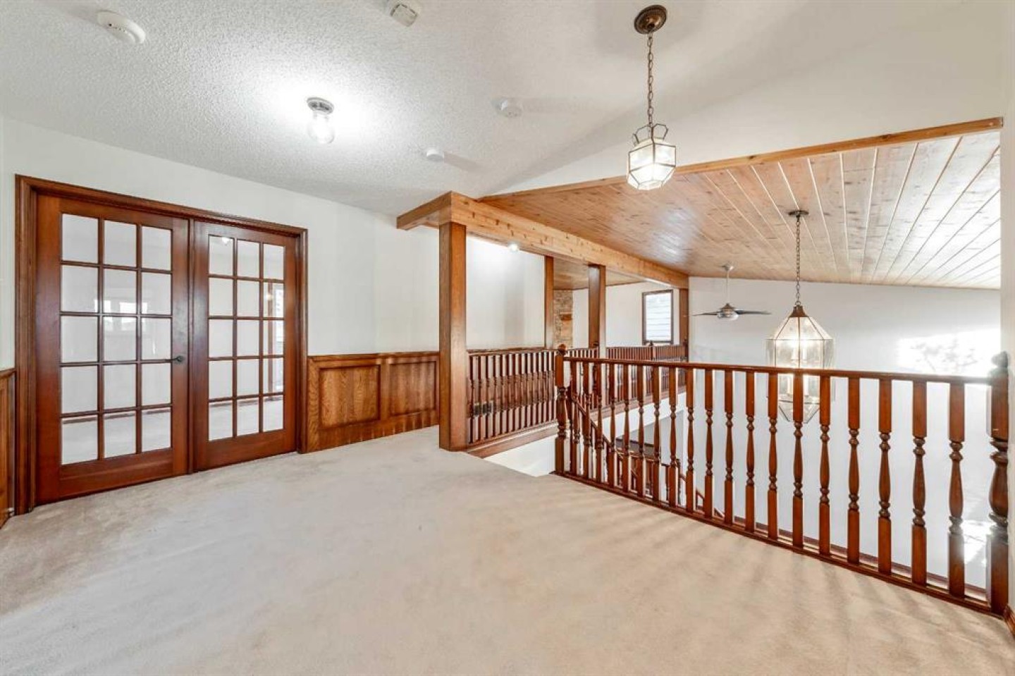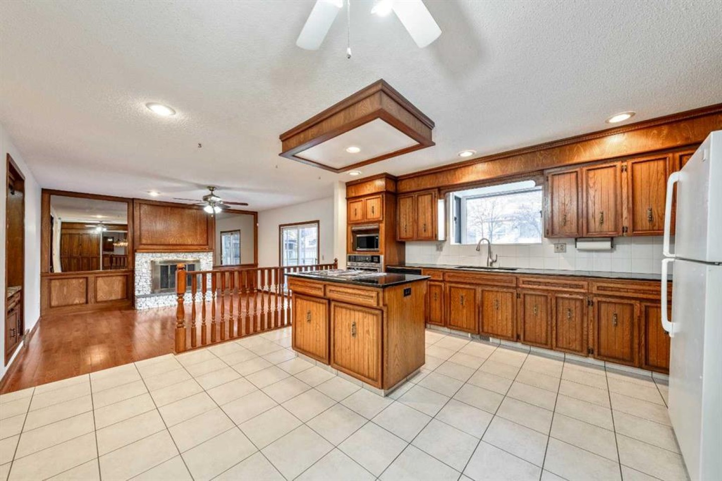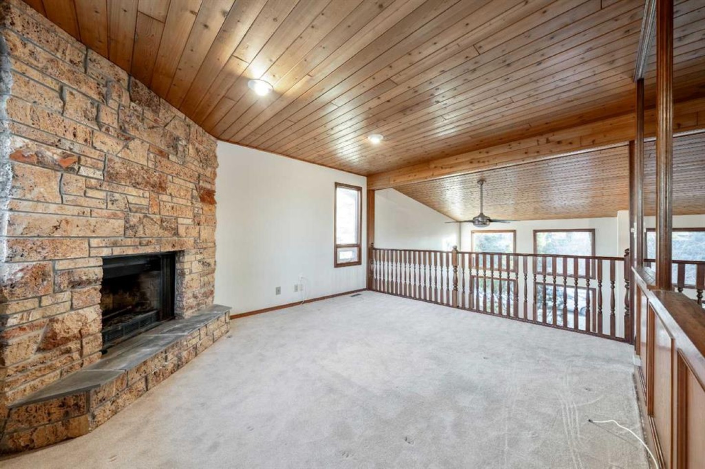 Incredible Flip Opportunity! This well-maintained two-storey home offers exceptional potential for a stunning remodel. Featuring 2,478 sq ft of above-grade freshly painted living space, 3 generous sized bedrooms, 3.5 bathrooms, and two wood-burning fireplaces. The main floor is flooded with natural south-facing light from the impressive floor-to-ceiling front windows and showcases hardwood floors, a formal living room with 20-ft vaulted ceilings and tongue-and-groove wood detail, a spacious dining room, and large kitchen. The sunken family room with fireplace, wet bar, patio doors to the deck overlooking the private backyard, main-floor laundry, 2-piece bath, and access to the oversized double attached garage complete the main level. Upstairs offers a generous primary retreat with private balcony, walk-in closet, 4-piece ensuite, and attached den/flex space with a second fireplace, open to below creating a grand feel. Two additional bedrooms and a full bath complete the upper level. The bright, open basement is undeveloped and ready for your vision. This home has been exceptionally maintained offering timeless appeal and outstanding potential. Situated on a quiet street just steps to Mother Mary Greene Catholic Elementary, and close to Nose Hill Park, pathways, off-leash parks, and community amenities. Edgemont is prized for its elevated setting, mature trees, excellent schools, and quick access to downtown or the airport in just 20 minutes. Don't miss your opportunity to own this remarkable home, call today to book a showing.