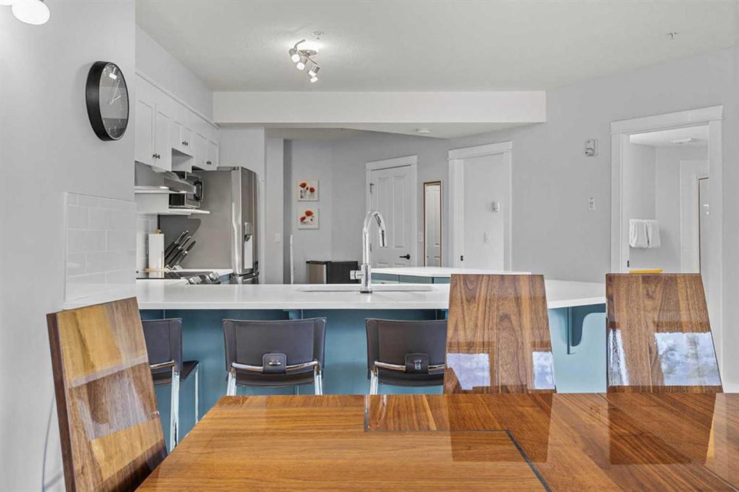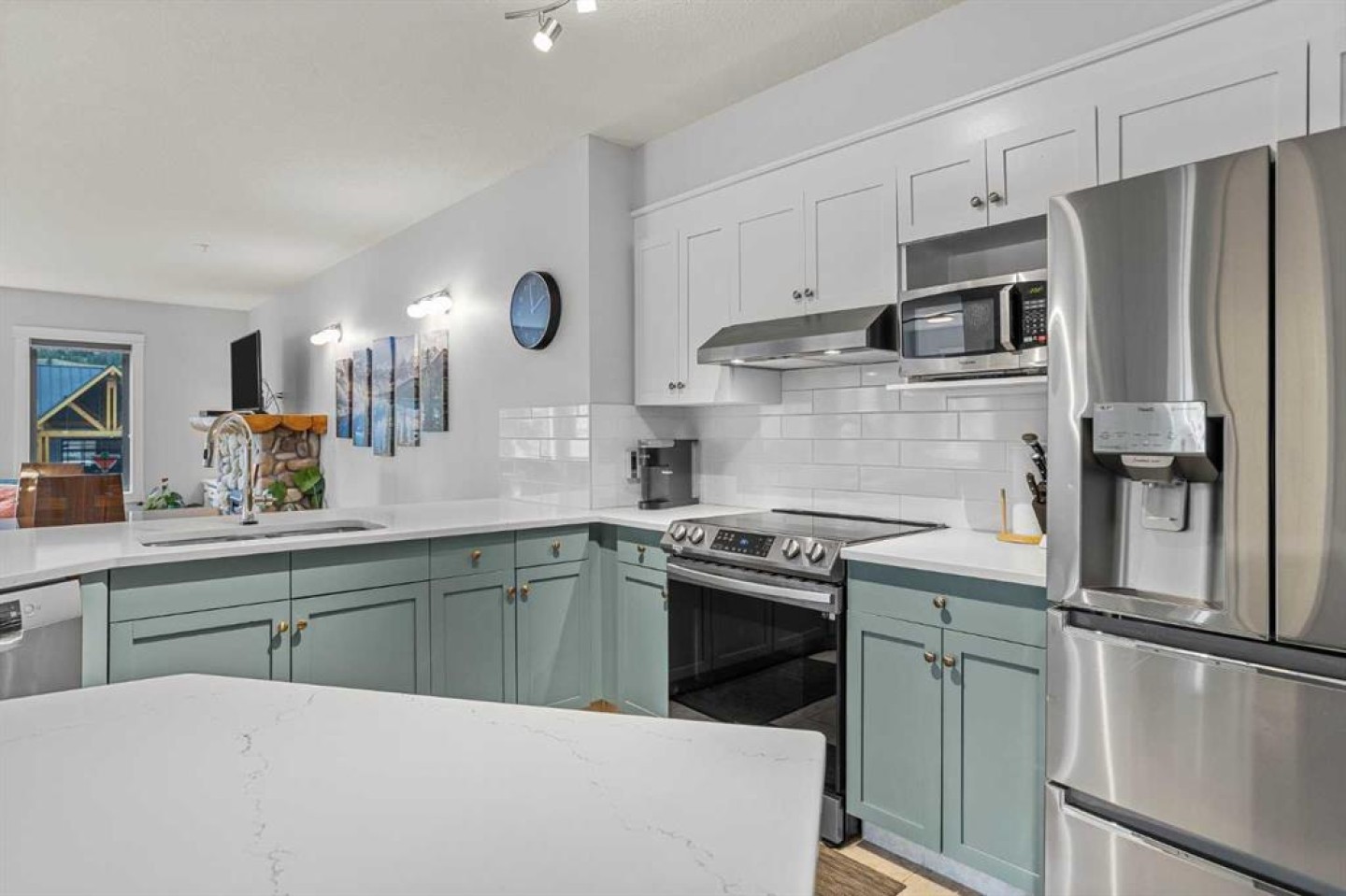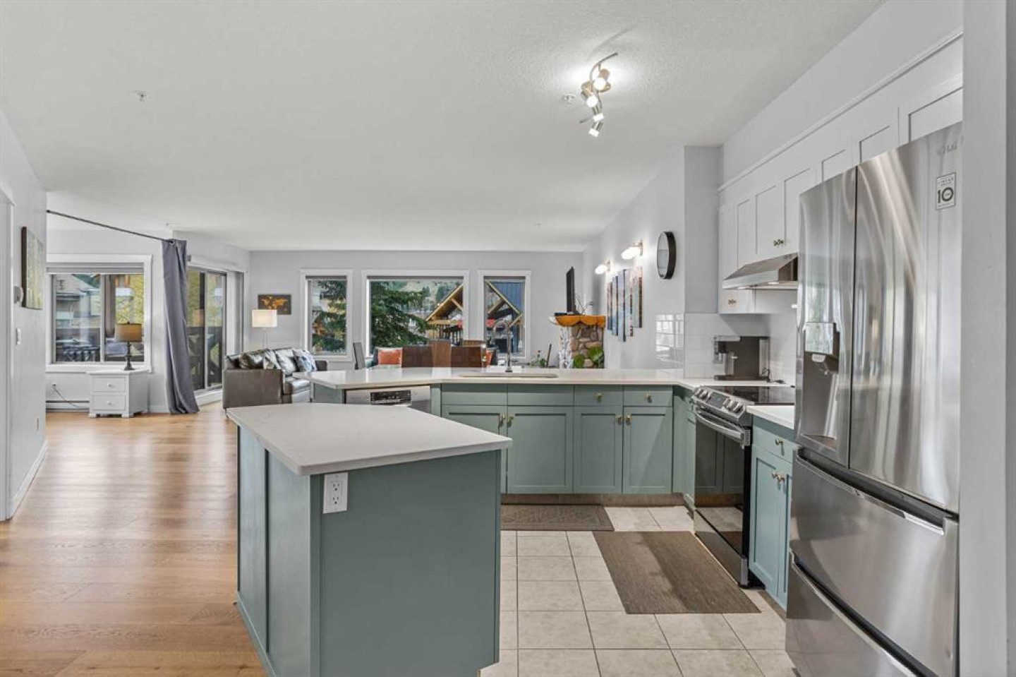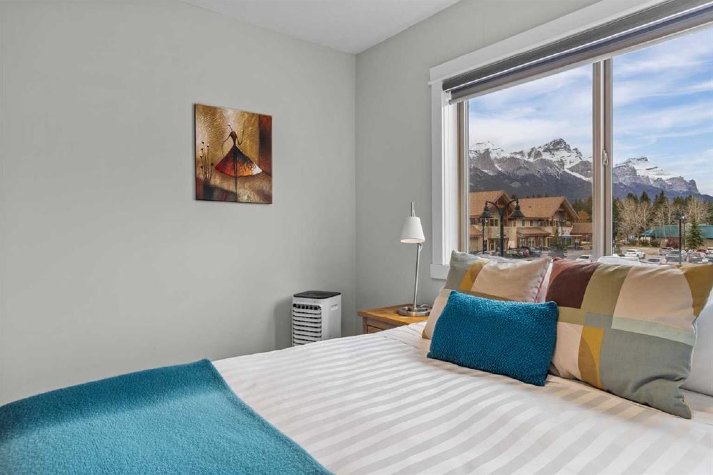 Wrap-around mountain views, rooftop hot tub, and legal tourist zoning — a rare combination. This bright corner unit offers 1,200 square feet and the flexibility to operate as a high-performing short-term rental or a full-time or lock-and-leave Canmore home. Thoughtfully renovated and fully furnished, this property is truly turnkey and positioned perfectly for the busy summer season. Currently configured as a two-bedroom plus den, the layout comfortably sleeps six and can easily function like a three-bedroom with the addition of a pull-out sofa — a simple way to expand nightly rates and overall revenue. Granite countertops, 2 tone cabinetry, durable vinyl flooring, and modern finishes deliver a clean, updated aesthetic that performs well with guests. Located in one of Canmore’s most sought-after STR buildings, this downtown address puts shops, restaurants, and trails right at your doorstep, with downtown just a block away. Owners and guests enjoy premium amenities, including a top-floor fitness room, underground parking and a stunning rooftop hot tub with 360-degree mountain views — a true differentiator in the short-term rental market. Whether you’re focused on cash flow, flexibility, or long-term value in one of the world's strongest STR markets, this property delivers. *List price is inclusive of GST -ask your tax expert how to defer the tax*