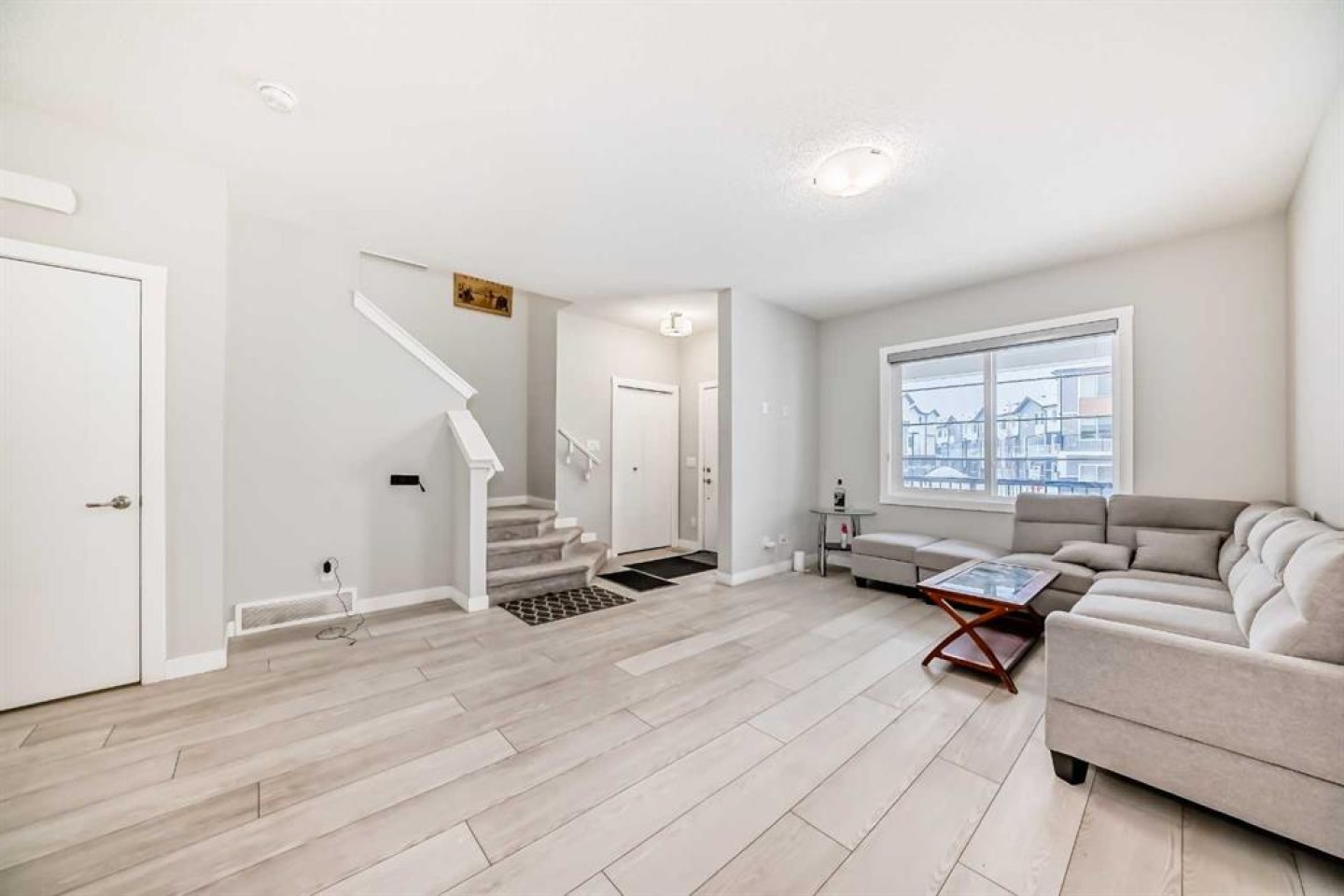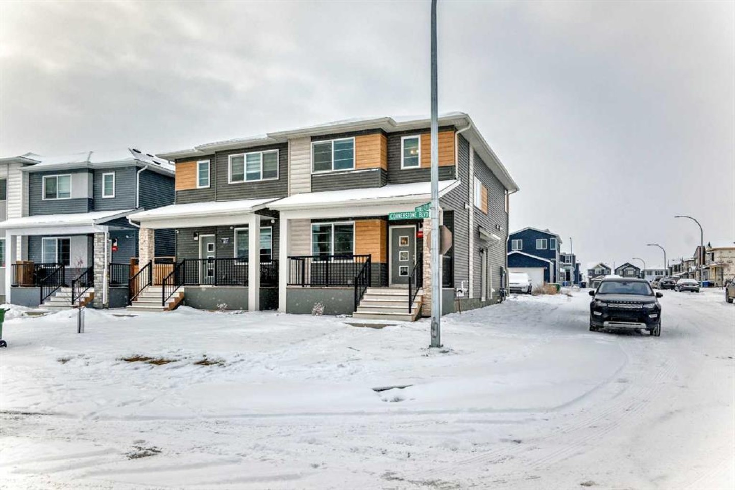 Welcome to this beautifully designed 2023-built semi-detached duplex offering approximately 1,649 sq. ft. of well-planned living space located in the vibrant and fast-growing community of Cornerstone. Situated on a premium corner lot, this home offers extra natural light, added privacy, and excellent long-term value. The open-concept main floor features 9-foot ceilings and a bright, spacious layout ideal for modern living and entertaining. The fully upgraded kitchen is the heart of the home, complete with a large island, upgraded cabinetry, and stylish finishes, seamlessly flowing into the living and dining areas. Upstairs, you will find three generously sized bedrooms along with a versatile bonus area, perfect for a family room, home office, or play space. The layout is thoughtfully planned to provide both comfort and functionality for everyday living. The basement offers a separate side entrance and is currently unfinished, providing a blank canvas for future development to suit your needs. Back alley access adds convenience and potential for future garage development. Located close to schools, parks, shopping, and with convenient access to Stoney Trail, Cornerstone is a well-planned community known for its excellent connectivity and family-friendly environment. This move-in-ready duplex is an excellent opportunity for homeowners and investors alike. Don’t miss your chance to own a modern, upgraded home in one of the city’s most desirable new communities. Call your realtor today to book private showing today! NOTE: There is minor hail damage on back side , owner will get it fixed before closing.