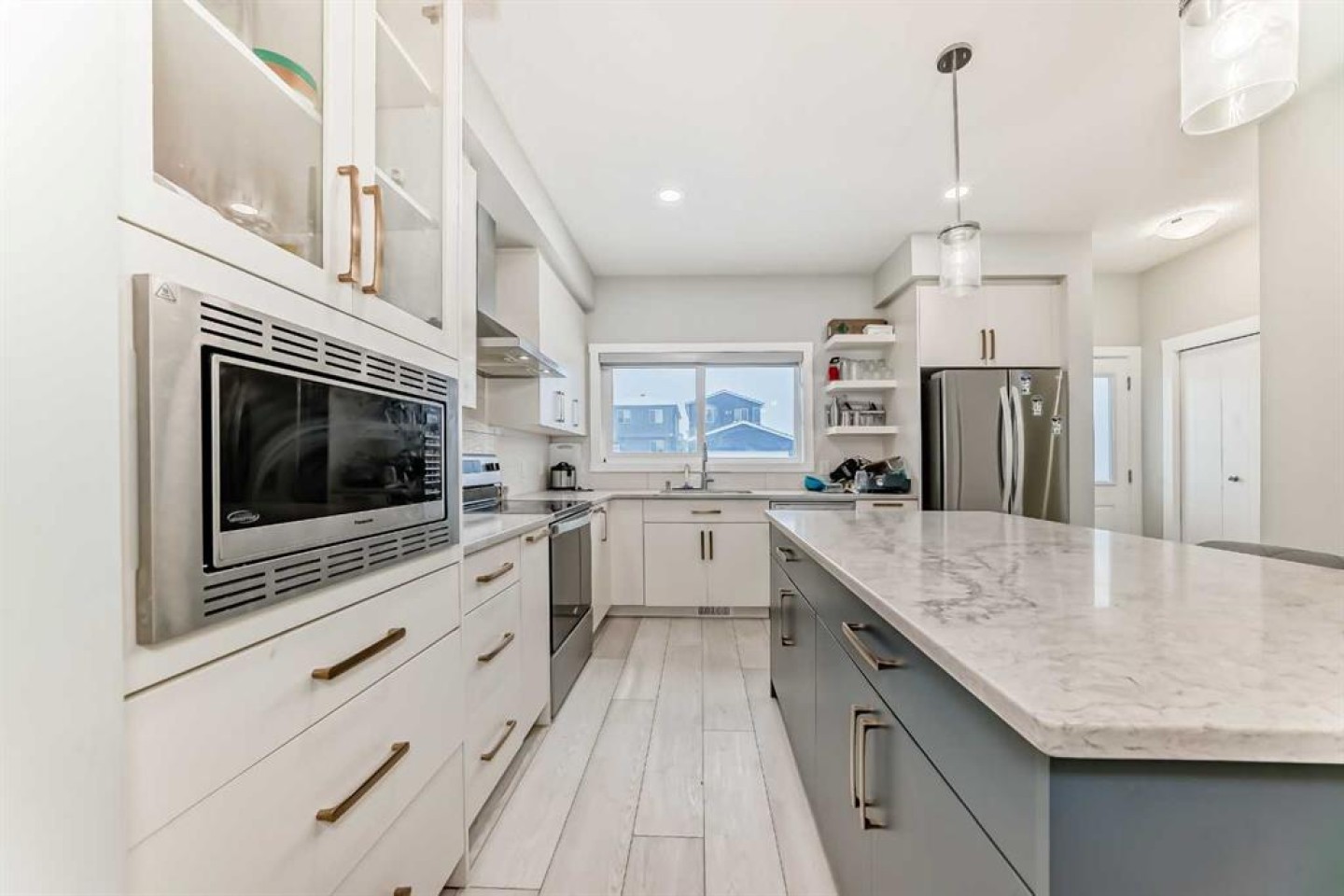 Built-in Features, High Ceilings, Kitchen Island, Quartz Counters, Separate Entrance
