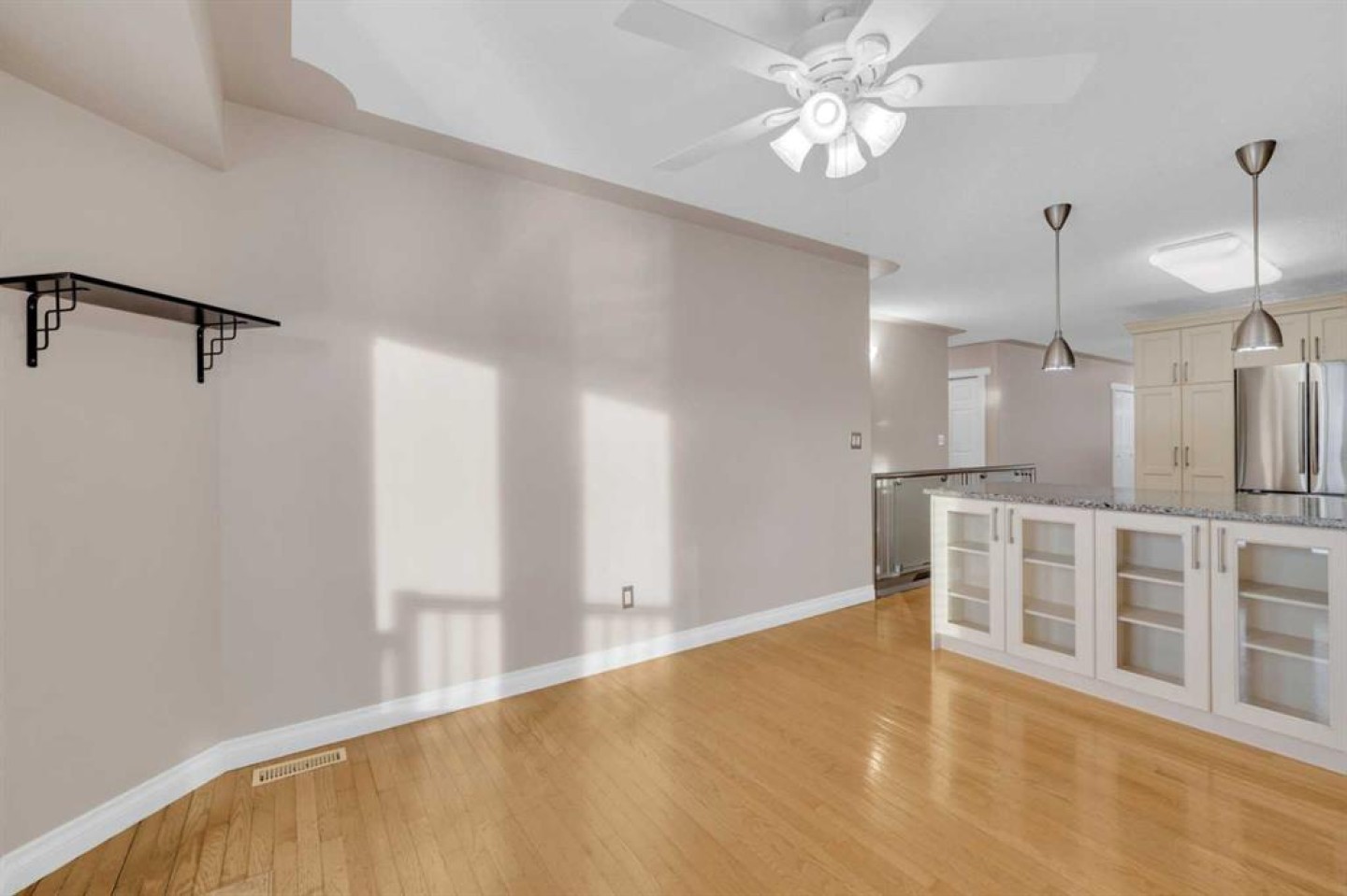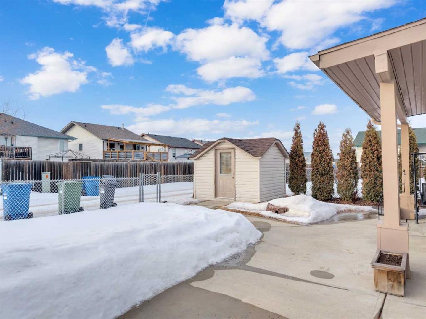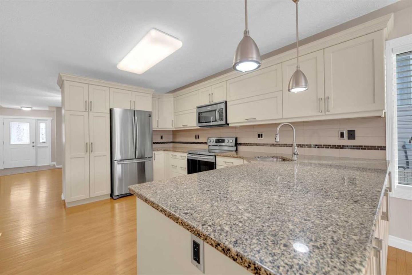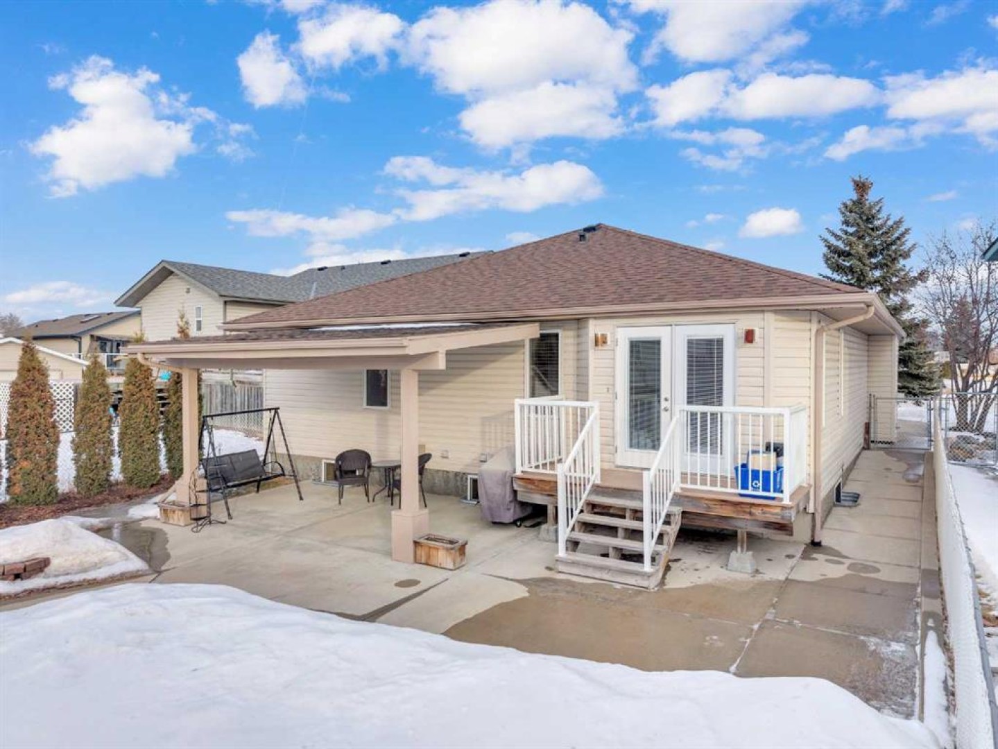 Located on a quiet crescent in the desirable community of Kentwood West, 87 Kirkwood Crescent is a beautifully maintained bungalow offering exceptional space, comfort, and functionality in a prime Red Deer location. Surrounded by mature landscaping and well-kept homes, this property is ideally situated close to schools, parks, walking trails, recreation facilities, shopping, public transit, and provides quick access to Highway 2. Upon entry, you are welcomed by a bright and inviting living room featuring rich hardwood flooring and a cozy gas fireplace with an elegant TV niche, creating a warm and comfortable gathering space. Updated baseboards and casing throughout add a clean, modern touch while maintaining a timeless design. Large windows allow natural light to fill the main living areas, enhancing the open and airy feel of the home. The heart of the home is the beautifully designed kitchen, offering an exceptional layout ideal for both everyday living and entertaining. Featuring quartz countertops, ample cabinetry, quality appliances, and thoughtful lighting, the kitchen flows seamlessly into the dining area with direct access to the backyard. Convenient main-floor laundry further adds to the functionality of the layout. The main level offers three spacious bedrooms, including a generous primary bedroom that easily accommodates a king-sized bed and features a walk-in closet and private ensuite. Both the main bathroom and ensuite are complete with heated tile flooring, adding an extra level of comfort and luxury. The fully developed basement is designed for entertaining and versatility, featuring a large family room anchored by a second gas fireplace, a wet bar, and plenty of space to relax or host guests. The lower level also includes a fourth bedroom, a full bathroom, an open-style office or flex area, a cold room, and a large storage room, providing excellent flexibility and organization. Additional highlights include central air conditioning, central vacuum, water softener, and an heated attached double garage complete with hot and cold water taps, making it ideal for year-round use. Outside, enjoy a large west-facing backyard perfect for afternoon sun and evening sunsets, featuring a matching storage shed, firepit area, and ample space for outdoor living and entertaining. This is a well-cared-for, move-in-ready home offering a smart layout, quality features, and an outstanding location on a quiet crescent — a fantastic opportunity in one of Red Deer’s most sought-after neighbourhoods.
