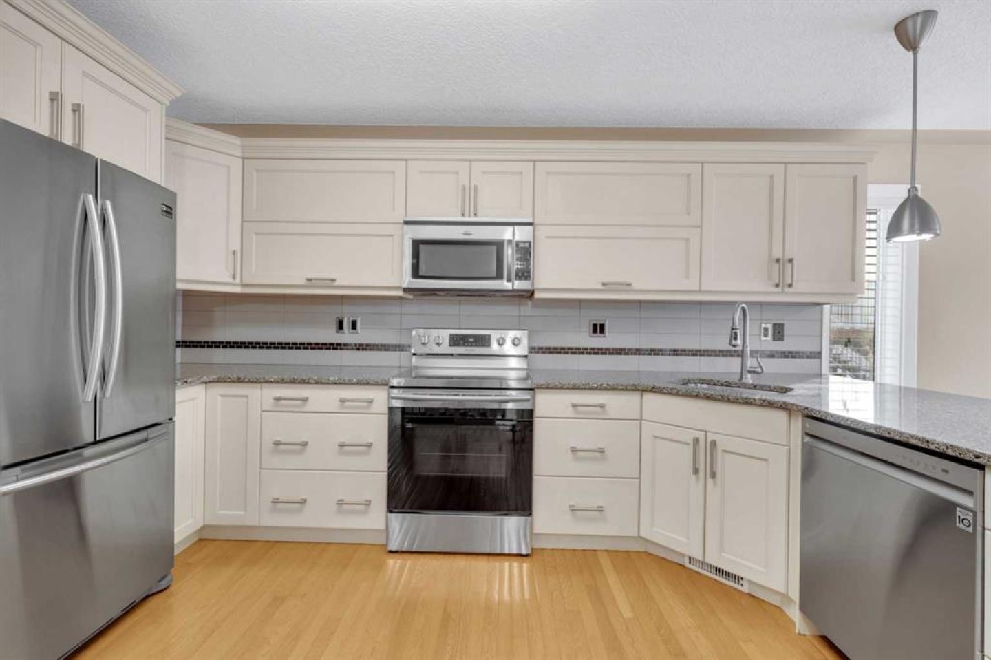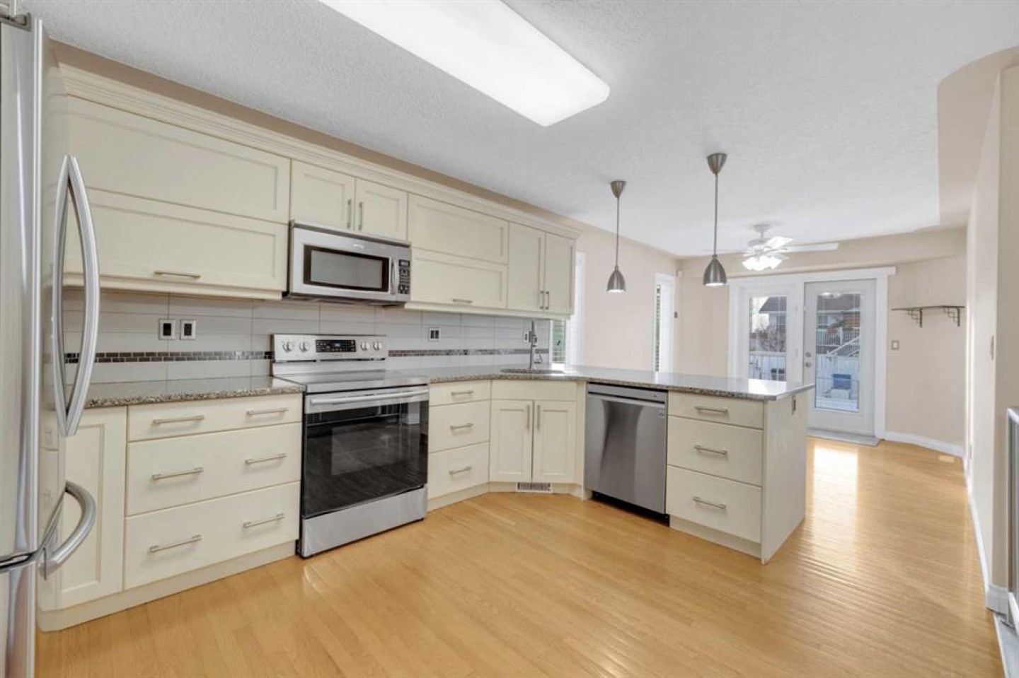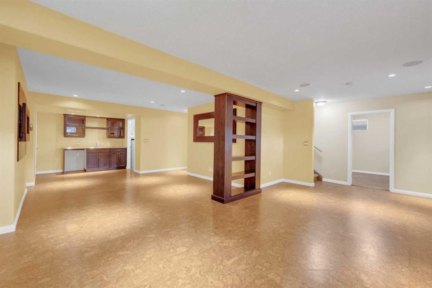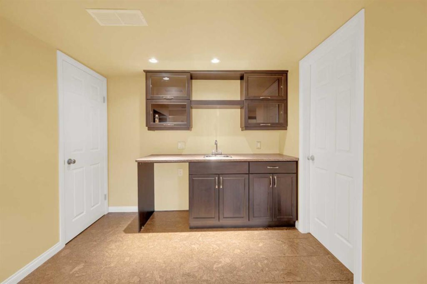 Located on a quiet crescent in the desirable community of Kentwood West, 87 Kirkwood Crescent is a beautifully maintained bungalow offering exceptional space, comfort, and functionality in a prime Red Deer location. Surrounded by mature landscaping and well-kept homes, this property is ideally situated close to schools, parks, walking trails, recreation facilities, shopping, public transit, and provides quick access to Highway 2. Upon entry, you are welcomed by a bright and inviting living room featuring rich hardwood flooring and a cozy gas fireplace with an elegant TV niche, creating a warm and comfortable gathering space. Updated baseboards and casing throughout add a clean, modern touch while maintaining a timeless design. Large windows allow natural light to fill the main living areas, enhancing the open and airy feel of the home. The heart of the home is the beautifully designed kitchen, offering an exceptional layout ideal for both everyday living and entertaining. Featuring quartz countertops, ample cabinetry, quality appliances, and thoughtful lighting, the kitchen flows seamlessly into the dining area with direct access to the backyard. Convenient main-floor laundry further adds to the functionality of the layout. The main level offers three spacious bedrooms, including a generous primary bedroom that easily accommodates a king-sized bed and features a walk-in closet and private ensuite. Both the main bathroom and ensuite are complete with heated tile flooring, adding an extra level of comfort and luxury. The fully developed basement is designed for entertaining and versatility, featuring a large family room anchored by a second gas fireplace, a wet bar, and plenty of space to relax or host guests. The lower level also includes a fourth bedroom, a full bathroom, an open-style office or flex area, a cold room, and a large storage room, providing excellent flexibility and organization. Additional highlights include central air conditioning, central vacuum, water softener, and an heated attached double garage complete with hot and cold water taps, making it ideal for year-round use. Outside, enjoy a large west-facing backyard perfect for afternoon sun and evening sunsets, featuring a matching storage shed, firepit area, and ample space for outdoor living and entertaining. This is a well-cared-for, move-in-ready home offering a smart layout, quality features, and an outstanding location on a quiet crescent — a fantastic opportunity in one of Red Deer’s most sought-after neighbourhoods.