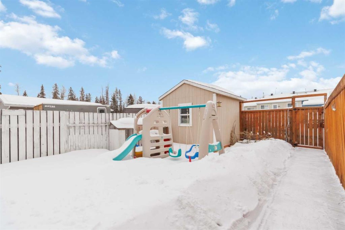 Affordable Rare Opportunity: Renovated Family Home with RV Parking & Trail Access! NO CONDO FEES, RENOVATIONS AND A LARGE FULLY FENCED AND LANDSCAPED YARD! Great opportunity to own a fantastic home in an awesome location. A stones throw away from the Greenbelt and Birchwood trails, in walking distance to transit and quick access to site bus stops, schools, shopping and more. Lets began on the exterior you have a large yard, with deck, room for RV parking, large 10x14 shed, 3 car parking and more. Inside this Fully developed home you have lots of renovations. The home offers upgraded laminate floors. The main level has a bright front living room that offers view of GREENBELT from the front window. The main level continues with a renovated kitchen featuring solid maple cabinets, updated appliances. Main level also features a 2pc bathroom, a great size eating nook and a front den area. Upstairs you have 3 great sized bedrooms and a 4 pc renovated bathroom. The fully developed basement offers, large family room and a office/den which could easily be a 4th bedroom if needed. There is a loads of storage space in this basement. Other upgrades include updated furnace and HWT tank(2015) , new rear deck in 2018, windows have been upgraded, shingles replaced in 2021, insulation updated to R40, new baffles and soffits in 2021 and the home is ready for HWT on demand.. This home is a pleasure to view and offers a affordable price and is move in ready! Call for your personal tour today!