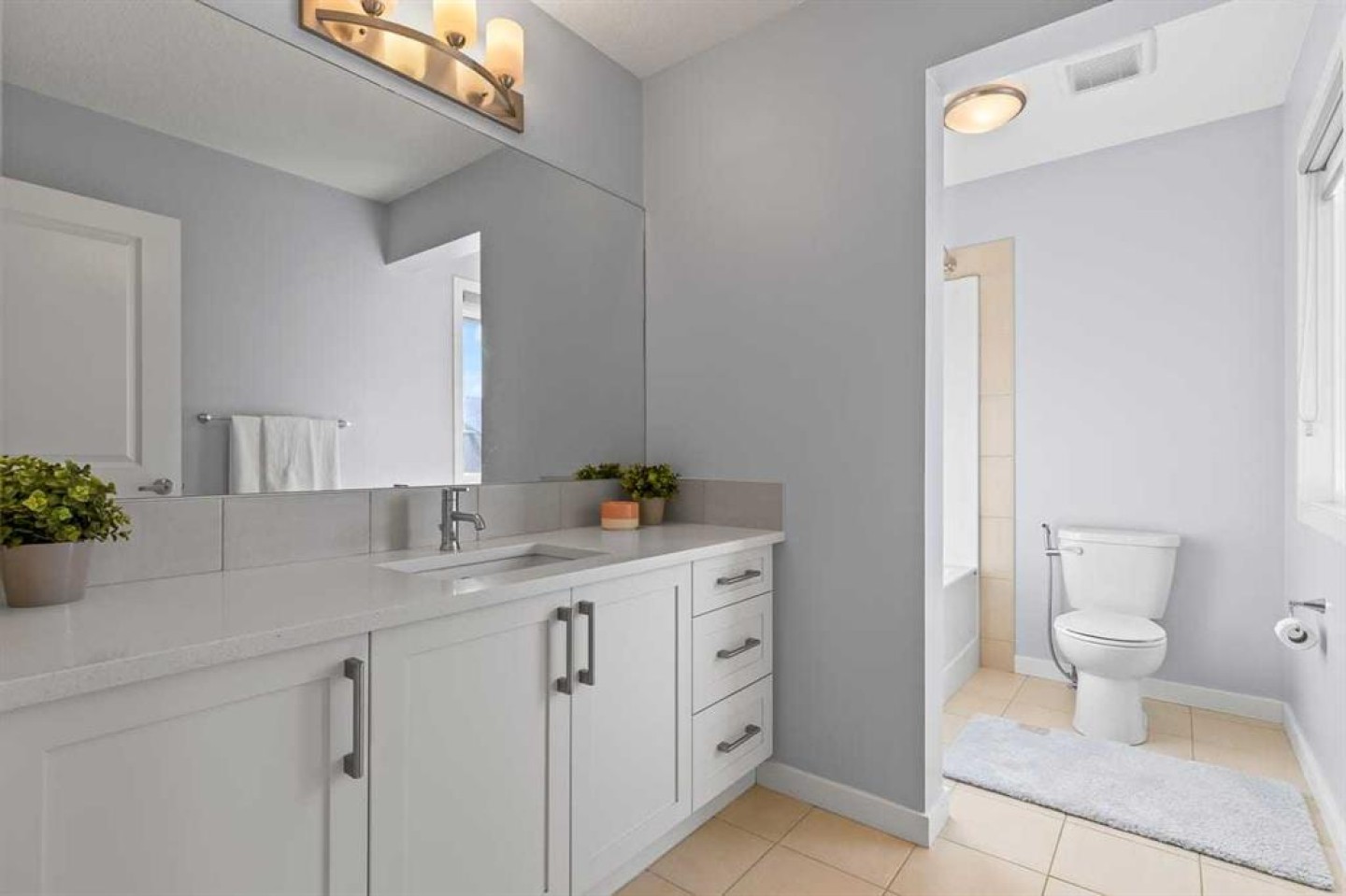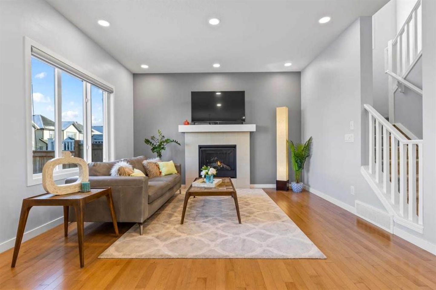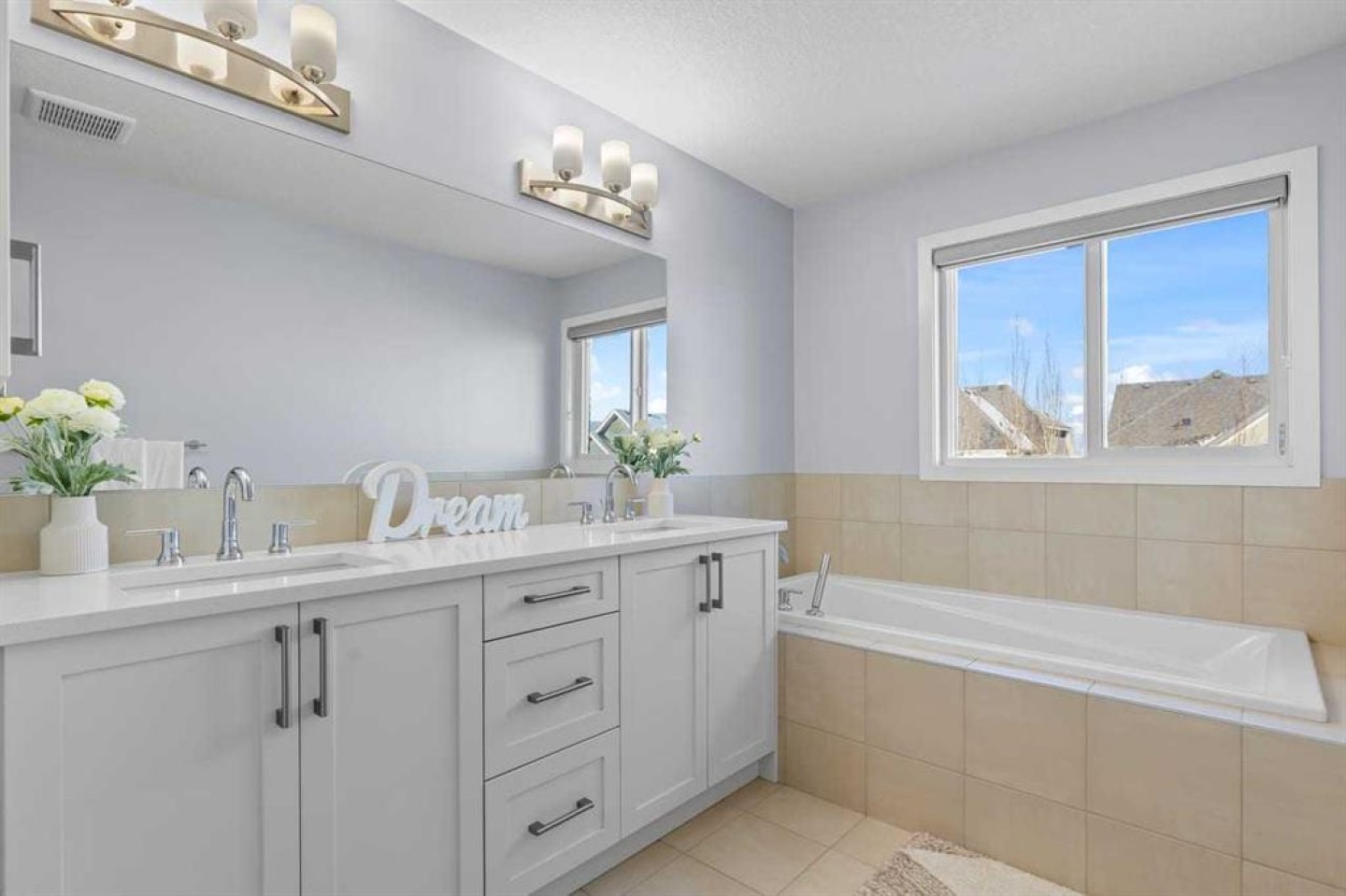 WELCOME TO THIS BRIGHT, BEAUTIFUL, THOUGHTFULLY DESIGNED 4 BEDROOM HOME located in the LAKE COMMUNITY OF MAHOGANY. This 4 bedroom, 2 1/2 bathroom home with DOUBLE ATTACHED GARAGE is situated in the coveted lake community of Mahogany. WELL MAINTAINED, it offers a welcoming OPEN CONCEPT MAIN FLOOR with a CONVENIENT DEN, ideal for work-from-home needs or a quiet study. Large windows flood the living spaces with natural light, while a cozy gas fireplace and stylish pot lights create an inviting ambiance. The main floor blends hardwood and tile with a modern aesthetic, featuring a chef’s kitchen that will delight any home cook. Cook and entertain in style with a bright kitchen that includes a WALK-IN PANTRY, a CENTRAL ISLAND, QUARTZ COUNTERTOPS, and STAINLESS STEEL APPLIANCES, including a GAS RANGE, HOOD FAN, and a BUILT-IN MICROWAVE. WHITE CABINETS paired with a STONE BACKSPLASH provide a timeless, high-end finish. Upstairs, retreat to a comfortable FAMILY BONUS ROOM perfect for movie nights or a play area. The SPACIOUS PRIMARY BEDROOM offers a walk-in closet and a luxurious 5 PIECE ENSUITE with DUAL SINKS, a SOAKER TUB, and an OVERSIZED SHOWER. Three additional well-sized bedrooms share the well-appointed upper level, along with a LARGE LAUNDRY ROOM featuring ample shelving for easy organization. The unfinished basement provides a blank canvas for future development to suit your needs. The fully fenced and landscaped yard is ready for outdoor enjoyment and gatherings. Mahogany is a premier lake community with schools, parks, playgrounds, pathways, and an abundance of amenities within reach. Shopping, restaurants, and professional services are nearby, making this location incredibly convenient. DON'T LET THIS BEAUTIFUL HOME SLIP AWAY! BOOK YOUR SHOWING TODAY.