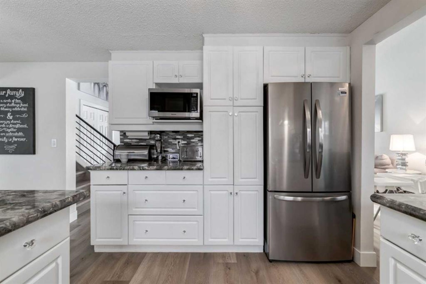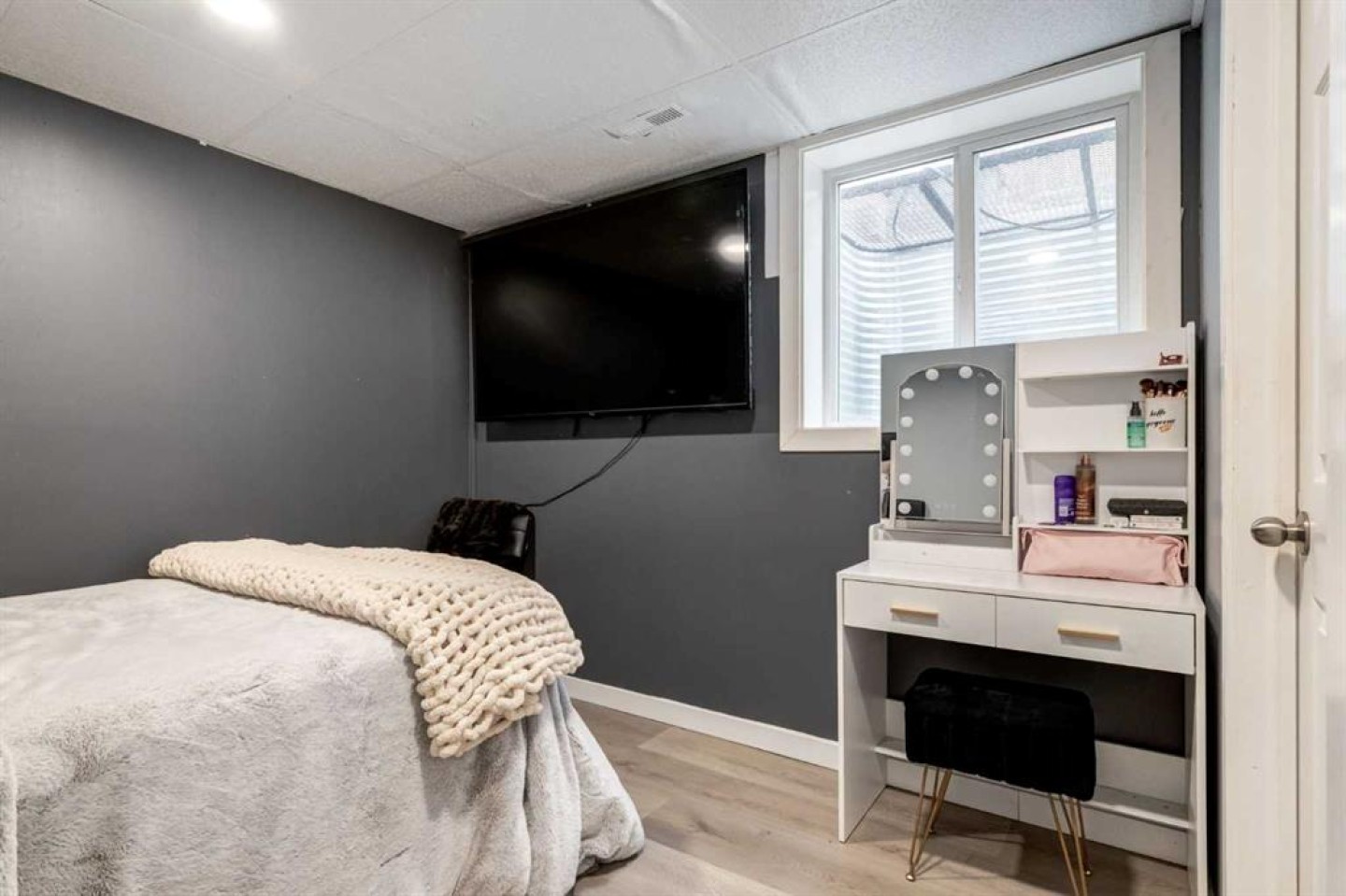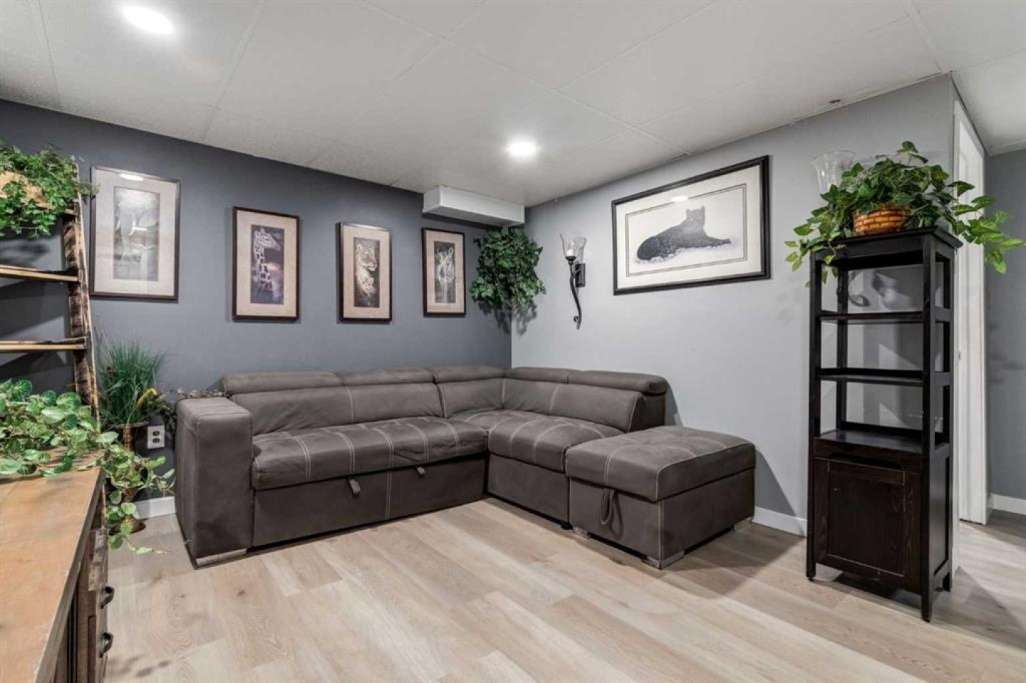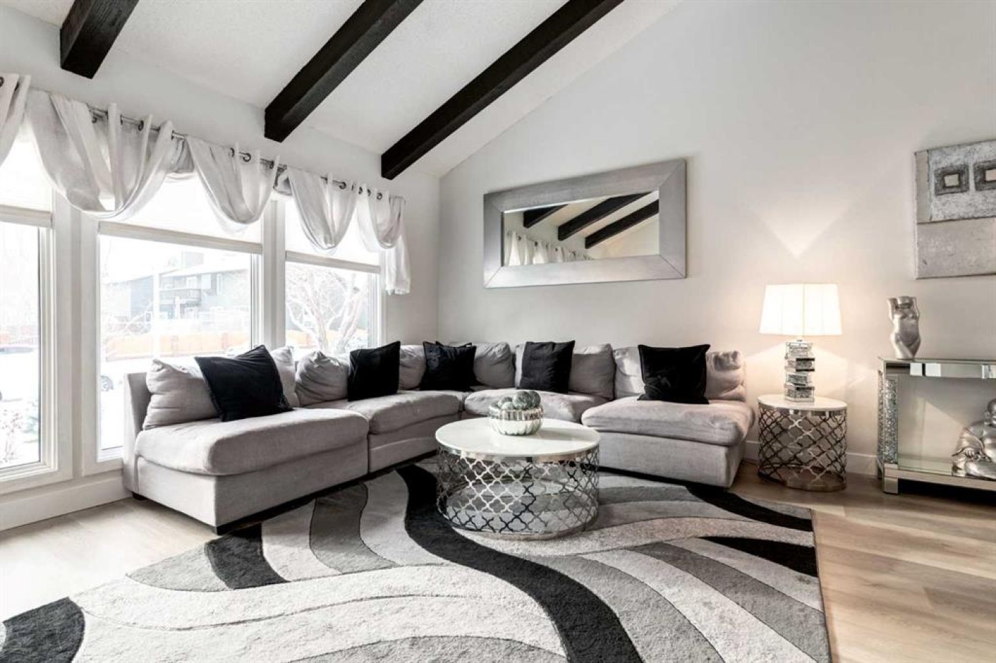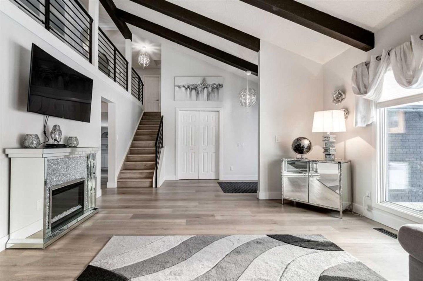One Block walk to Fish Creek Park! This beautifully updated and thoughtfully maintained 6 Bedroom home located in Woodlands Estates offering 2,770 square feet of well-designed living space and an exceptional indoor-outdoor lifestyle. From the moment you arrive, you’ll appreciate the curb appeal created by a new wood front door with glass detailing, fully landscaped grounds, and a stunning perennial garden. Inside, the vaulted living room makes a striking first impression with exposed wood beams, abundant natural light, and a warm, inviting atmosphere. New triple-pane windows throughout the home enhance energy efficiency, comfort, and sound reduction. Recent updates include new metal railings on the staircase and new laminate flooring throughout, creating a cohesive and modern feel across all levels. The kitchen has been tastefully refreshed with newly painted cabinetry and updated countertops, offering both style and functionality for everyday living and entertaining. This versatile floor plan features three bedrooms plus a den on the upper level, one bedroom on the main floor, and one additional bedroom in the fully finished basement, along with an additional room ideal for a home office or storage. The basement is fully developed, providing flexible space for recreation, work, or relaxation. Major mechanical updates include a newer furnace, hot water tank, and air conditioning unit, offering peace of mind and year-round comfort. The rear yard is truly a private retreat with low-maintenance turf, a concrete patio, and a covered hot tub, perfect for entertaining or unwinding in any season. Fully landscaped front and back yards complete this exceptional property, ideally located one block from Fish Creek Provincial Park, a massive 13.48-kilometre urban park with extensive bike trails and pathways, close to Canyon Meadows Golf and Country Club, with quick access to Stoney Trail, nearby Costco, South Centre Shopping and within walking distance to Woodland School. Work from home you will love the upstairs Office space with French doors. Call today for a private tour!