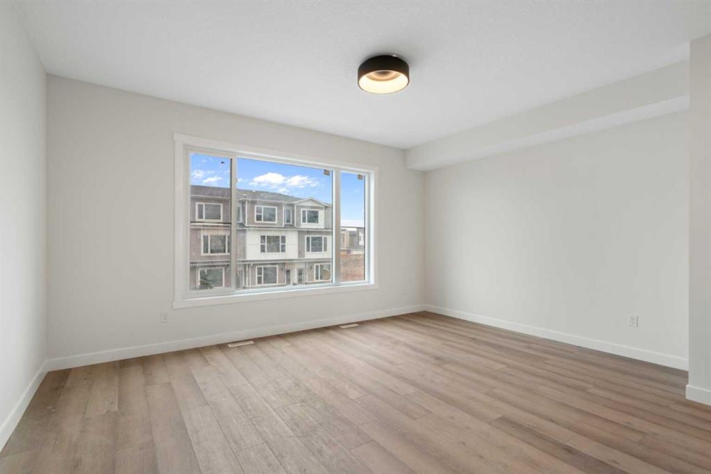 Brand-new modern 3-storey end unit townhouse in the desirable Saddlepeace (Saddleridge) community. Just a 5-minute walk to Gobind Sarvar High Shool, minutes from major roadways including Metis Trail and Stoney Trail, and only a 5-minute drive to the Calgary International Airport, this home offers exceptional accessibility to work, travel, schools, shopping plazas, and Gurdwaras. Featuring a bright open-concept design with 9-foot ceilings and durable luxury vinyl plank flooring throughout, the main level showcases a stunning kitchen with quartz countertops, stainless steel appliances, a gas stove, and ample cabinetry, ideal for everyday living and entertaining. The open living and dining space flows to a private balcony, perfect for relaxing or hosting gatherings. This versatile layout includes 4 bedrooms and 3.5 bathrooms. The upper floor boasts a spacious primary suite with a walk-in closet and ensuite, plus two additional bedrooms, a full bath, and convenient upstairs laundry. The entry-level bedroom features its own private entrance, ensuite, and roughed-in laundry, making it perfect for extended family, guests, or rental income potential. Completing this exceptional home is a single attached garage. This townhouse is a must-see for families and investors alike.