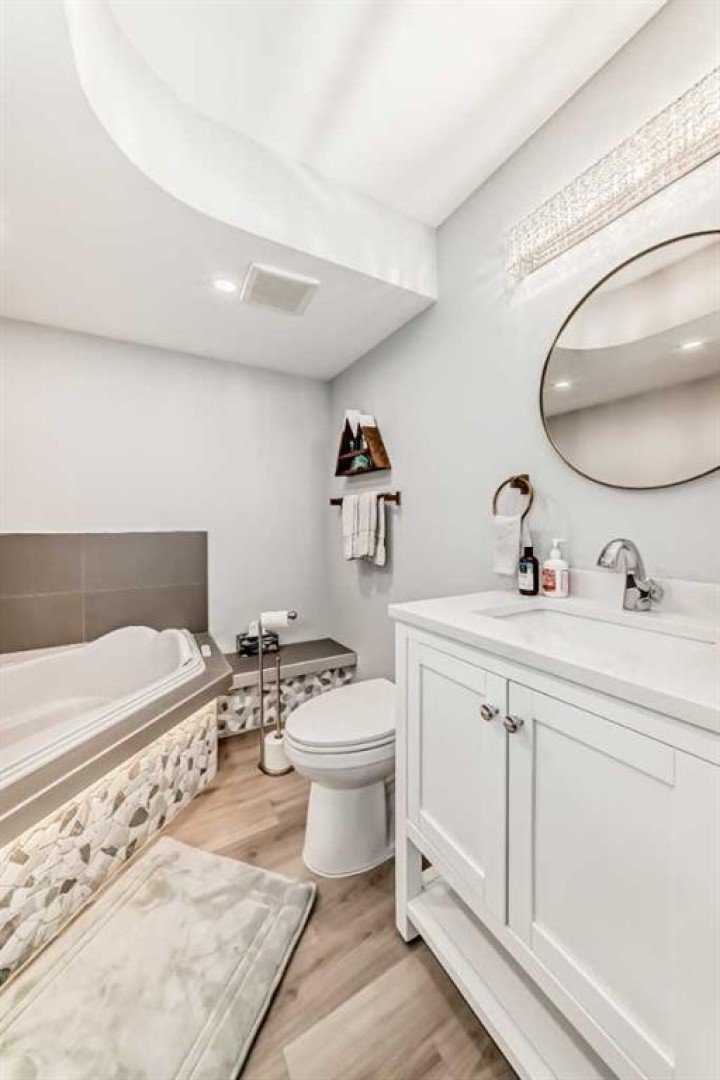 Welcome to this beautifully maintained, original-owner detached home in the premier lake community of Mahogany. This inviting sunshine property offers over 1,640 sq ft, 3 bedrooms, 3.5 bathrooms, and a magnificent finished basement providing the entire home with a warm and cozy feel. The open-concept main floor is perfect for both everyday living and entertaining, with a seamless flow between the kitchen, dining, and living areas filled with natural light. The home has been thoughtfully cared for and shows pride of ownership at every turn. The fully finished basement (2022) is designed for entertaining, featuring a wet bar, theatre space, and a twin jacuzzi tub—ideal for movie nights, hosting guests, or relaxing at home. Enjoy the private west-facing backyard complete with a custom full-size composite deck, perfect for afternoon and late into the evening sunshine. Additional updates include new shingles (2022), an oversized double garage built in 2022, and a large matching shed. Ideally located steps from two schools and all the amenities Mahogany is known for, this move-in-ready home is a fantastic opportunity in one of Calgary’s most sought-after communities.