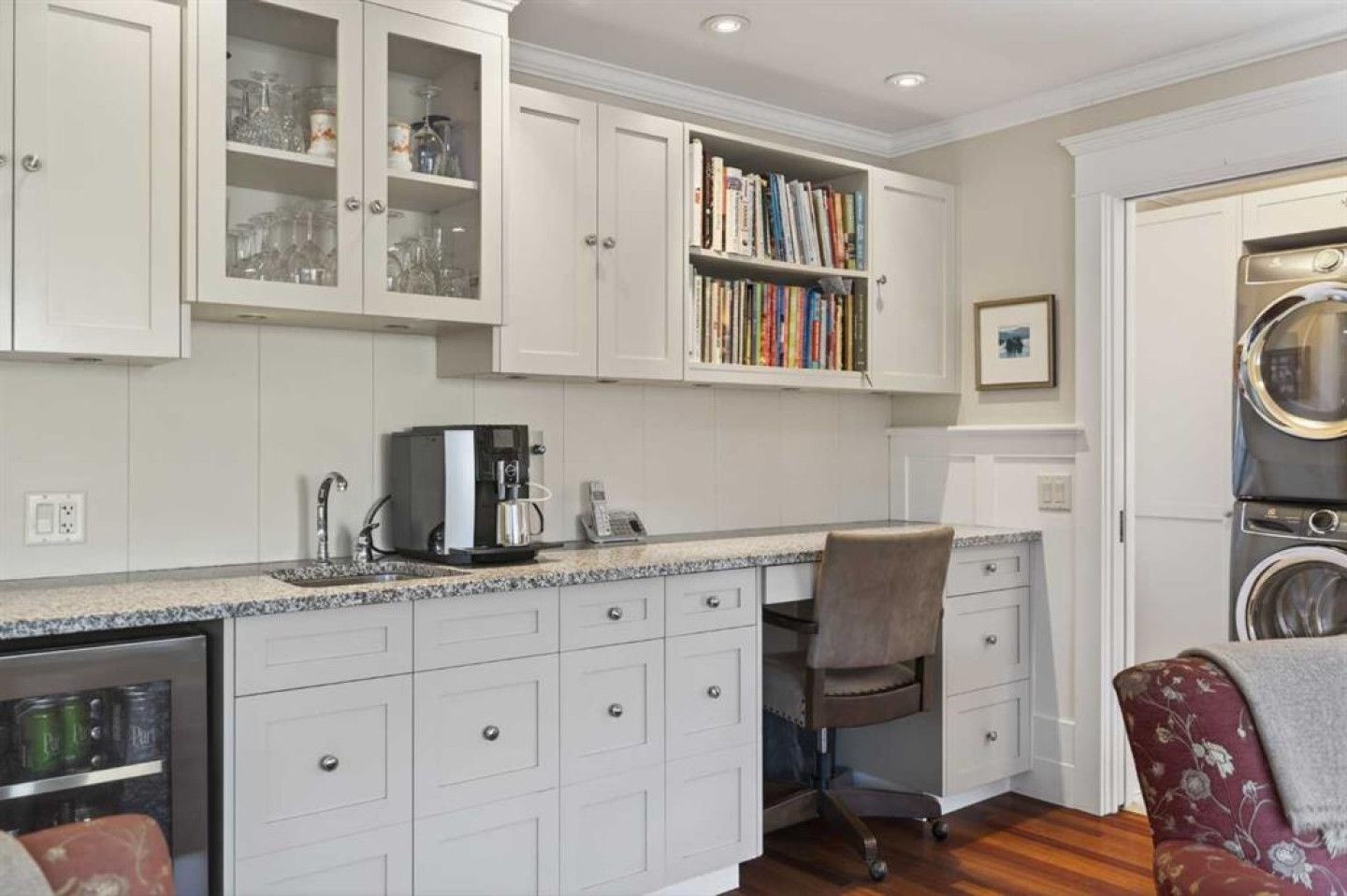 Bar Fridge, Dishwasher, Garage Control(s), Gas Range, Microwave, Refrigerator, Washer/Dryer Stacked, Window Coverings