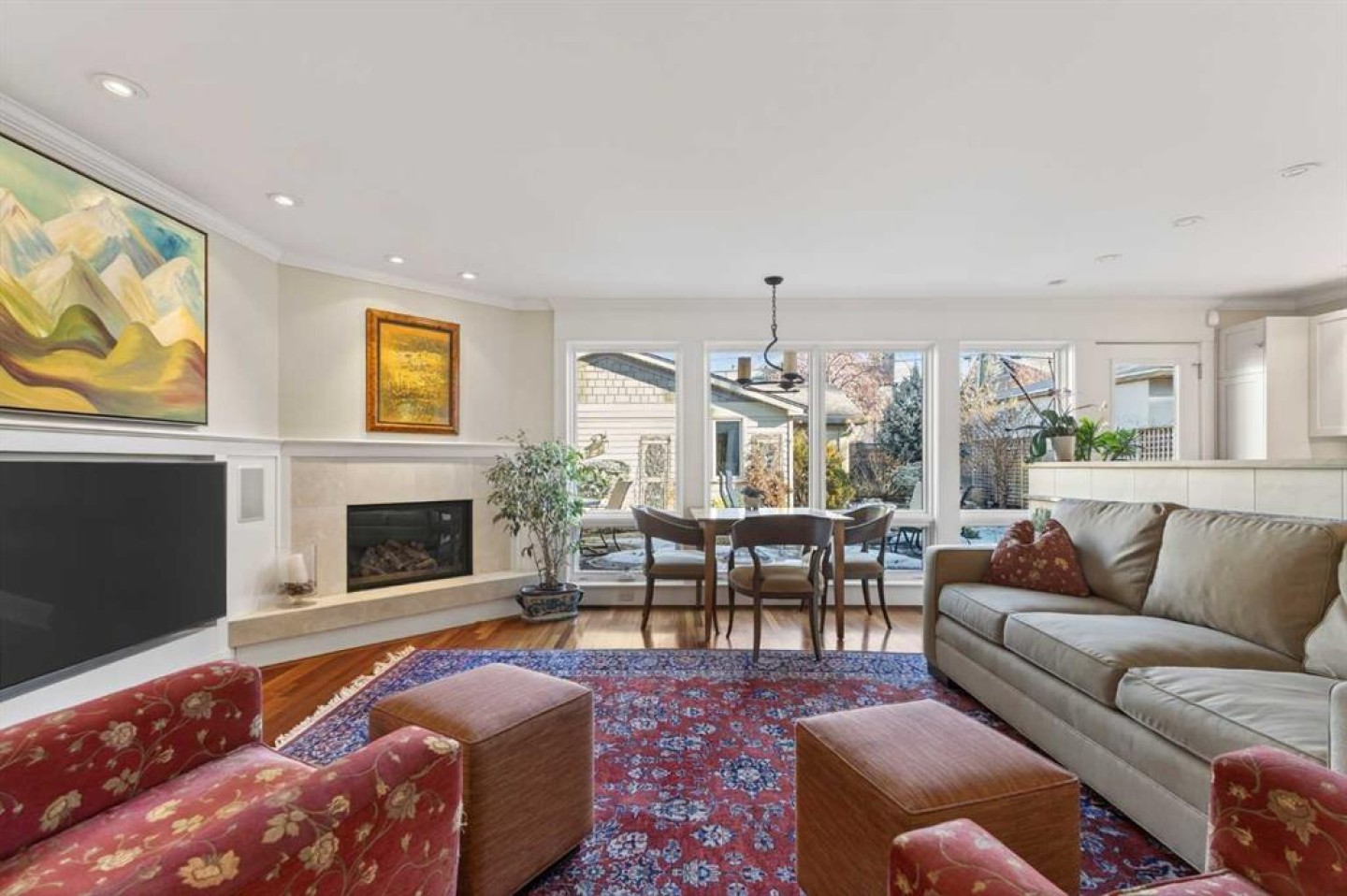 Nestled on a beautiful tree-lined street in the heart of Elbow Park, this charming character home offers timeless elegance and exceptional livability just steps from the Glencoe Club, top schools, river pathways, Mission, and an array of amenities. Originally built in 1920, the residence has been lovingly maintained and thoughtfully updated over the years, reflecting true pride of ownership while preserving its architectural integrity. Boasting over 3,600 sq. ft. of total living space, the home welcomes you with stunning curb appeal and a quaint front porch, perfect for morning coffee or evening unwinding. Inside, rich hardwood floors span the main level, where natural light fills the formal living and dining rooms, anchored by a beautiful fireplace that creates an inviting setting for entertaining. The spacious family room, complete with a second gas fireplace, opens seamlessly to the kitchen, featuring stainless steel appliances and functional flow for everyday living. A rare and highly desirable main floor primary retreat offers comfort and privacy, complete with its own ensuite. Upstairs, you will find two additional bedrooms with a shared bath, ideal for family or guests. The fully developed lower level expands the living space with yet another fireplace, a large games and media room, an additional bedroom or optional gym, its own ensuite, and ample storage throughout. Practicality meets charm with a mudroom that leads to a covered breezeway, connecting to the double detached garage and dedicated workshop, perfect for hobbyists or additional storage needs. Surrounded by beautifully curated hard and soft landscaping, the front and backyard spaces offer both serenity and functionality, an ideal setting for outdoor entertaining or family enjoyment. A rare opportunity to own a character home of this scale and condition in one of Calgary’s most prestigious inner city communities.