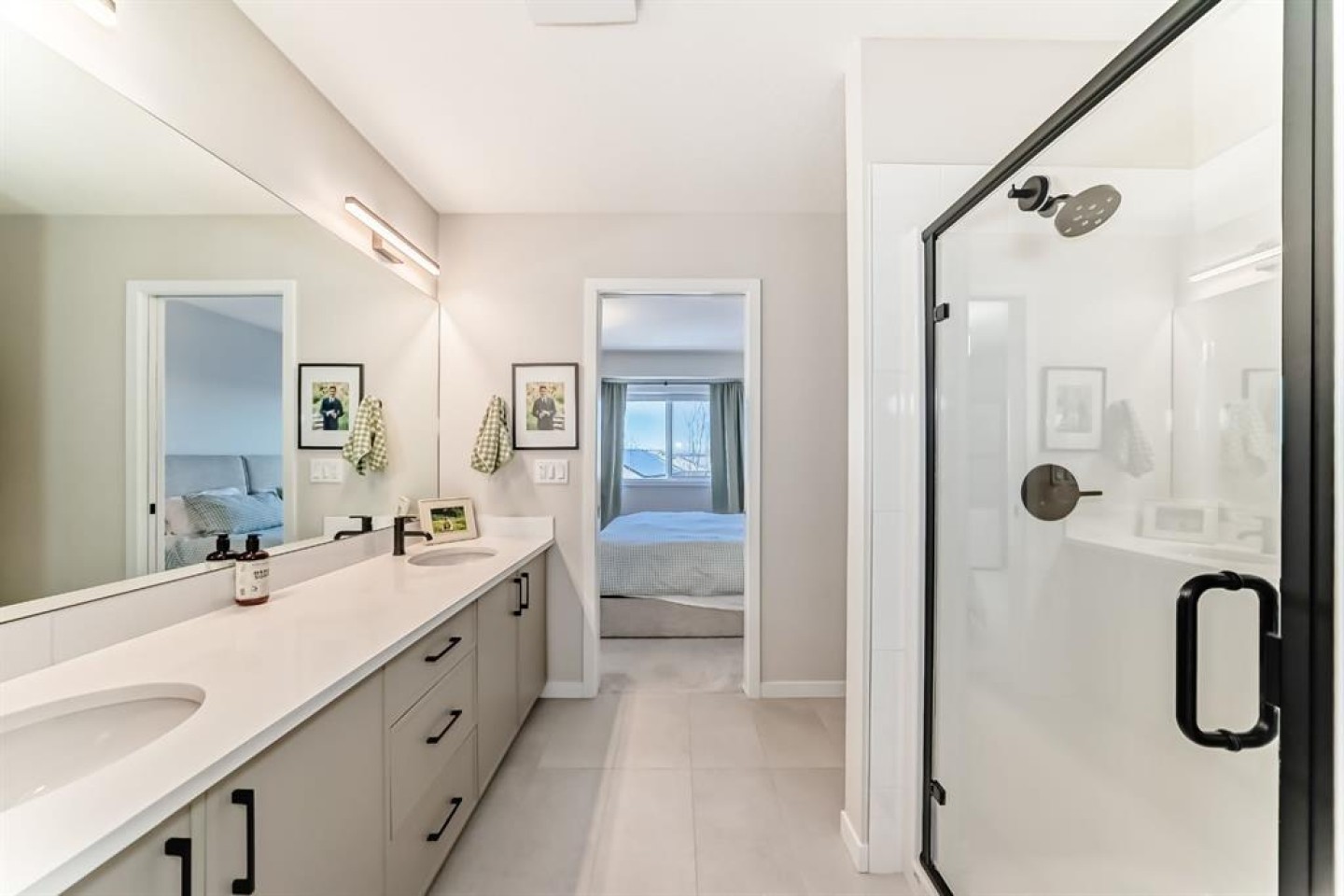 THIS ONE SHOWS PRIDE OF OWNERSHIP!!! Shows Like new with almost 1600 sq ft of development. Built in 2024 with many builder upgrades. The kitchen offers Frigidaire Series Stainless Steel Appliance package including a built in microwave, black hardware package throughout, upgraded lighting throughout and the optional 2 tone kitchen cabinet package. Quartz countertops, black faucets and upgraded back splash. The main floor offers 9 ft ceilings, engineered laminate plank flooring. and a large living room with direct access to the balcony. There is also a separate dining room with room for a large table. The upstairs features 2 massive bedrooms. The master bedroom ensuite has double sinks, large walk-in shower, quartz countertops and a walk-in closet. The 2nd bedroom has double closets. Lots of room for your toys in the Double Attached Tandem garage that is almost 40 ft long. The garage is a great location for a home gym or office. Located close to schools, walking and bike paths, shopping, banks and restaurants.