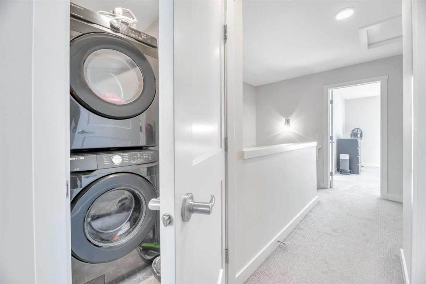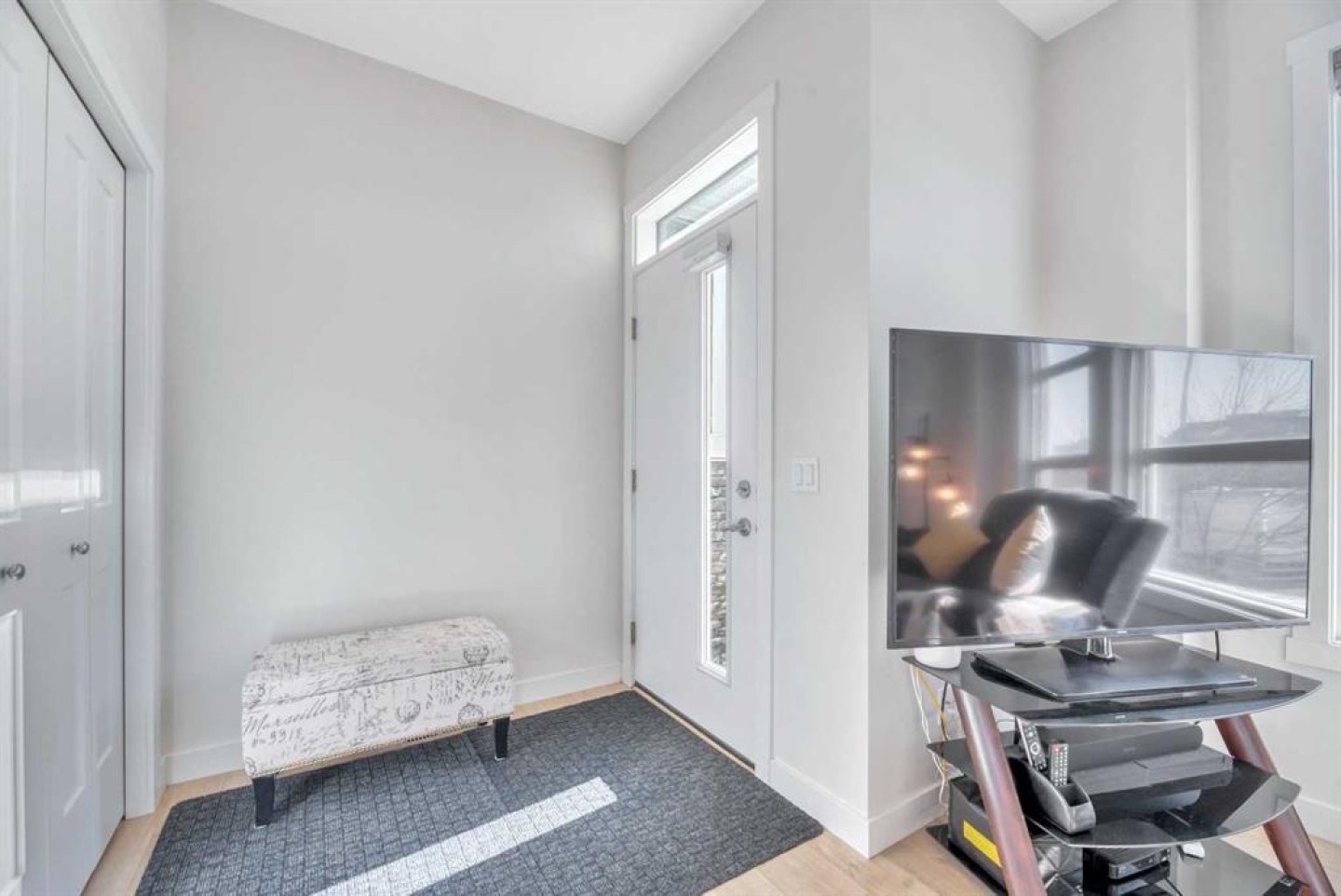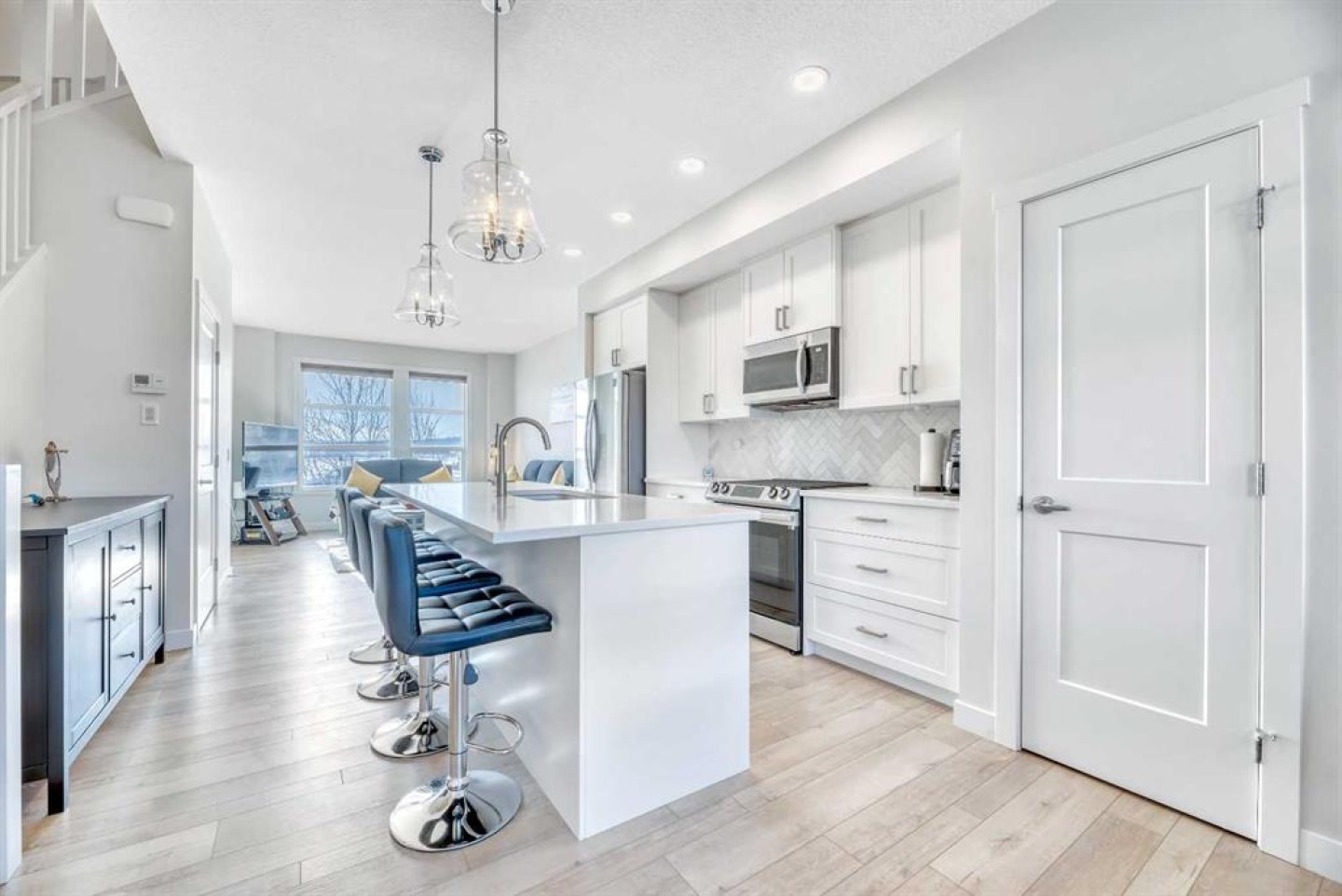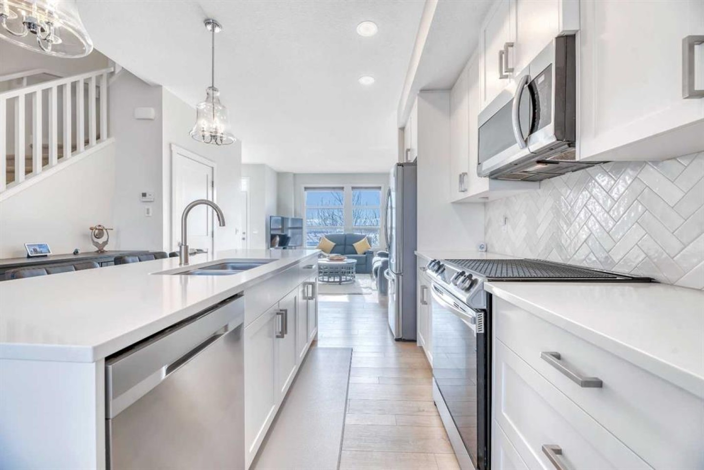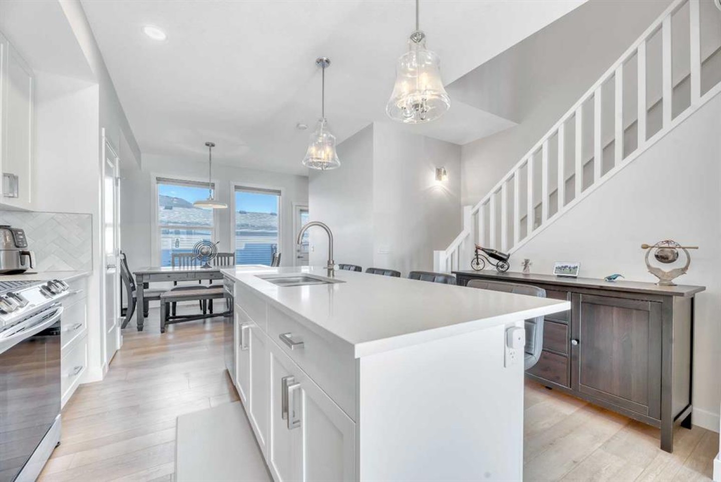 Wolf Willow - 196 Wolf Hollow Park SE: Welcome to this exceptional, air-conditioned 4-bedroom, 4-bathroom townhouse offering over 1,850 sq. ft. of beautifully finished living space in the highly desirable community of Wolf Willow. Showing like new, still under warranty, and with no condo fees, this home stands out as a rare and compelling opportunity. The sun-soaked main floor is bright and welcoming, thanks to large south-facing windows that flood the living room and foyer with natural light. The show-stopping kitchen is designed for both everyday living and entertaining, featuring a large central island, stainless steel appliances, soft-close cabinetry, and future-ready gas stove and fridge water rough-ins. A spacious dining area and a sleek 2-piece powder room complete this stylish and functional level. Upstairs, unwind in the inviting primary retreat with partial river views, a private 3-piece ensuite, and a walk-in closet with its own window. Two additional bedrooms, a full 4-piece bathroom, and convenient upper-level laundry with extra storage make this floor as practical as it is comfortable. The fully developed basement expands your living options with a family/recreation room, a fourth bedroom featuring a cozy nook or pocket office, a modern 3-piece bathroom with walk-in shower, and ample storage—perfect for guests, teens, or working from home. Outside, enjoy a landscaped backyard complete with a natural gas BBQ line for easy summer entertaining. A double detached garage with MYQ smartphone control adds everyday convenience, while thoughtful upgrades throughout—including silhouette blinds, soft-touch light switches, and doorbell cameras at the front, rear, and garage—enhance both comfort and security. Ideally located just steps from scenic river pathways, Wolf Willow blends modern living with an unbeatable natural setting. Nestled between the Bow River and Fish Creek Provincial Park, residents enjoy over 100 km of trails, parks, an ice rink, and easy access to schools, shopping, and downtown Calgary. This is a home that truly delivers on style, space, and location. Book your showing today and discover why Wolf Willow living is so special.