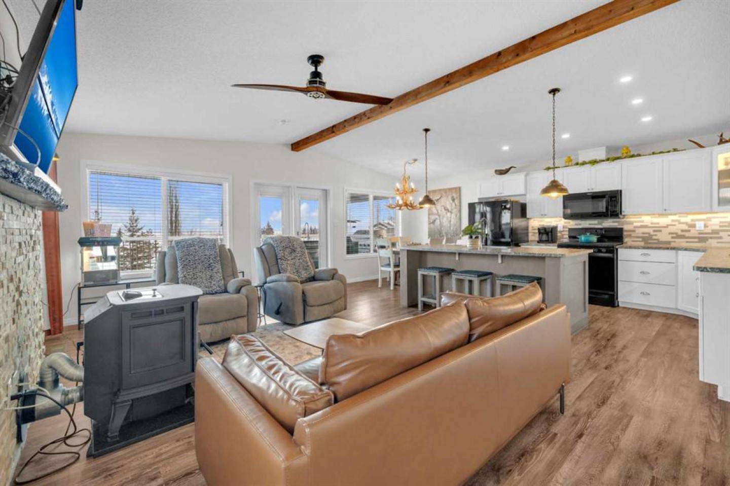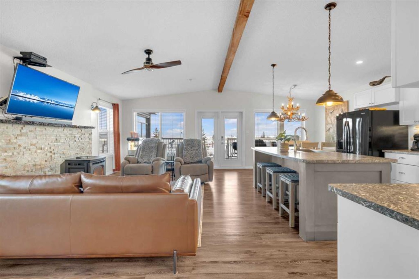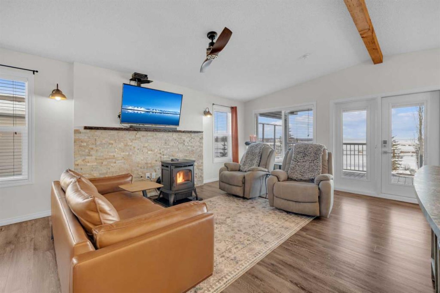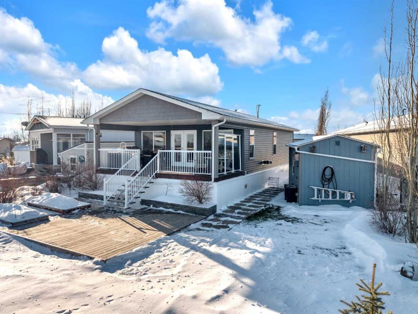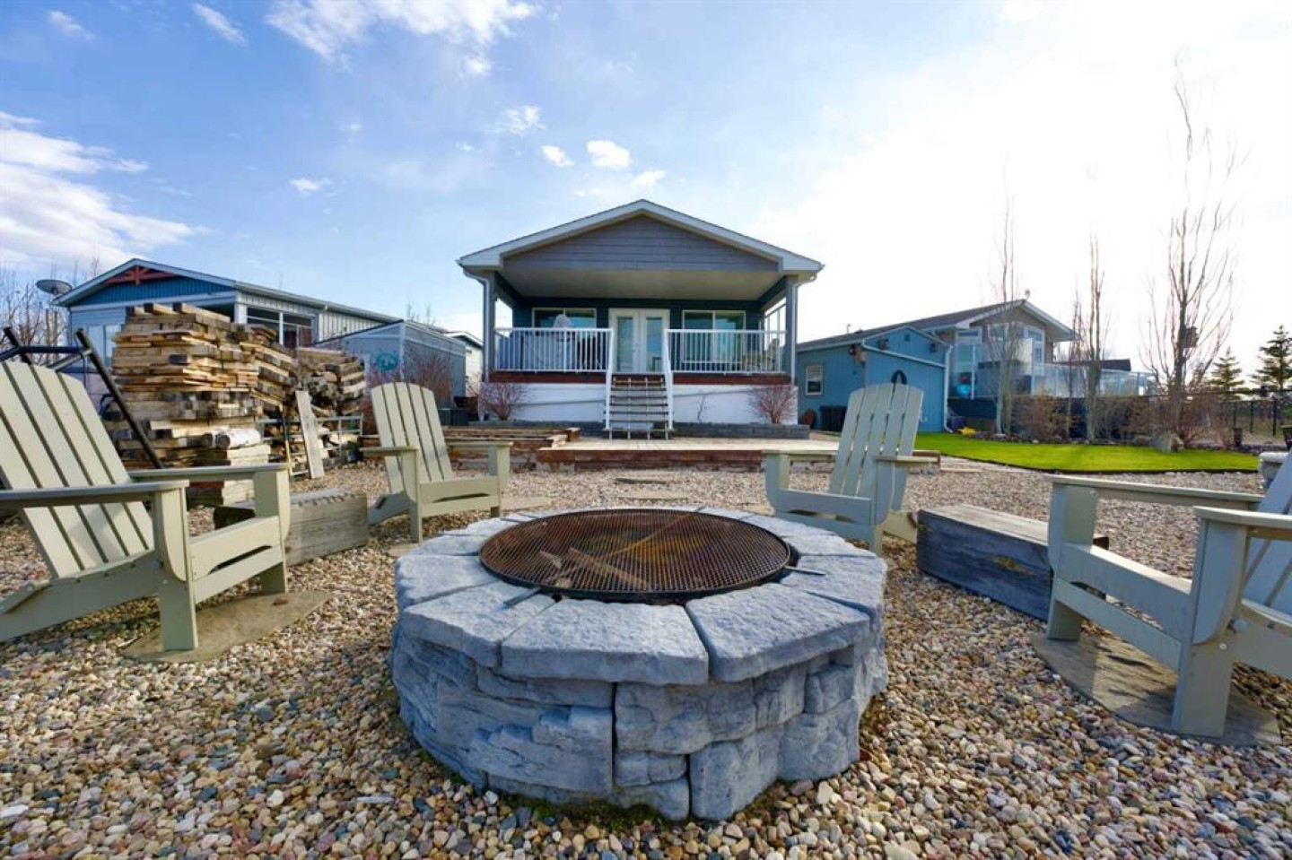 Welcome to Sandy Point Resort, an exclusive gated lakeside community on the west shores of Gull Lake, just minutes from Bentley—where resort living, nature, and recreation come together in a true four-season retreat. Tucked away on a large pie-shaped lot in a quiet cul-de-sac, this custom-designed 2-bedroom, 1-bathroom executive home backs directly onto the golf course driving range with no neighbours behind, offering exceptional privacy and unobstructed panoramic views of the lake and fairways. Fully landscaped and thoughtfully positioned, this property delivers a peaceful, private setting surrounded by breathtaking scenery. Inside, the Great Room is the heart of the home—warm, inviting, and designed for both comfort and entertaining. A cozy pellet stove framed by a striking stone feature wall creates ambiance year-round, while expansive picture windows flood the space with natural light and showcase the stunning views. The open-concept design flows seamlessly into the chef’s kitchen, complete with a gas stove, pot drawers, custom lighting, and a spacious walk-through pantry with solid shelving, offering both style and exceptional functionality. The primary bedroom easily accommodates a king-size bed and features a large walk-through closet with Jack-and-Jill access to the bathroom, blending comfort with convenience. A generous second bedroom provides the perfect space for guests, making this home ideal for hosting family and friends. Sandy Point Resort offers a truly elevated lifestyle with exclusive resident amenities including a community gazebo with fire pit, playgrounds, scenic bike trails, and convenient on-site laundry, showers, and restrooms for year-round enjoyment. Golf enthusiasts will appreciate the driving range and 12-hole golf course. The full-service marina with gas and propane makes lake days effortless, while the seasonal restaurant with rooftop patio is the perfect place to relax and take in the views. Additional features include gated storage, a community garden, and close proximity to local greenhouses and berry farms, offering a true farm-to-table lifestyle. Whether you’re seeking a seasonal escape or a full-time residence, this one-of-a-kind custom home is a rare opportunity to own a prime lake property in one of Alberta’s most desirable resort communities. Enjoy lakeside living, year-round recreation, and a vibrant community—all just a short drive to Bentley, Lacombe, and Sylvan Lake. This is lake life at its finest. Book your showing today.