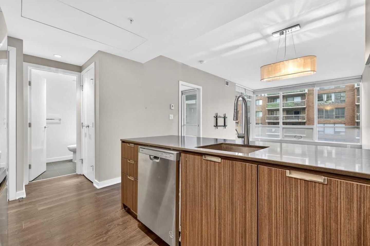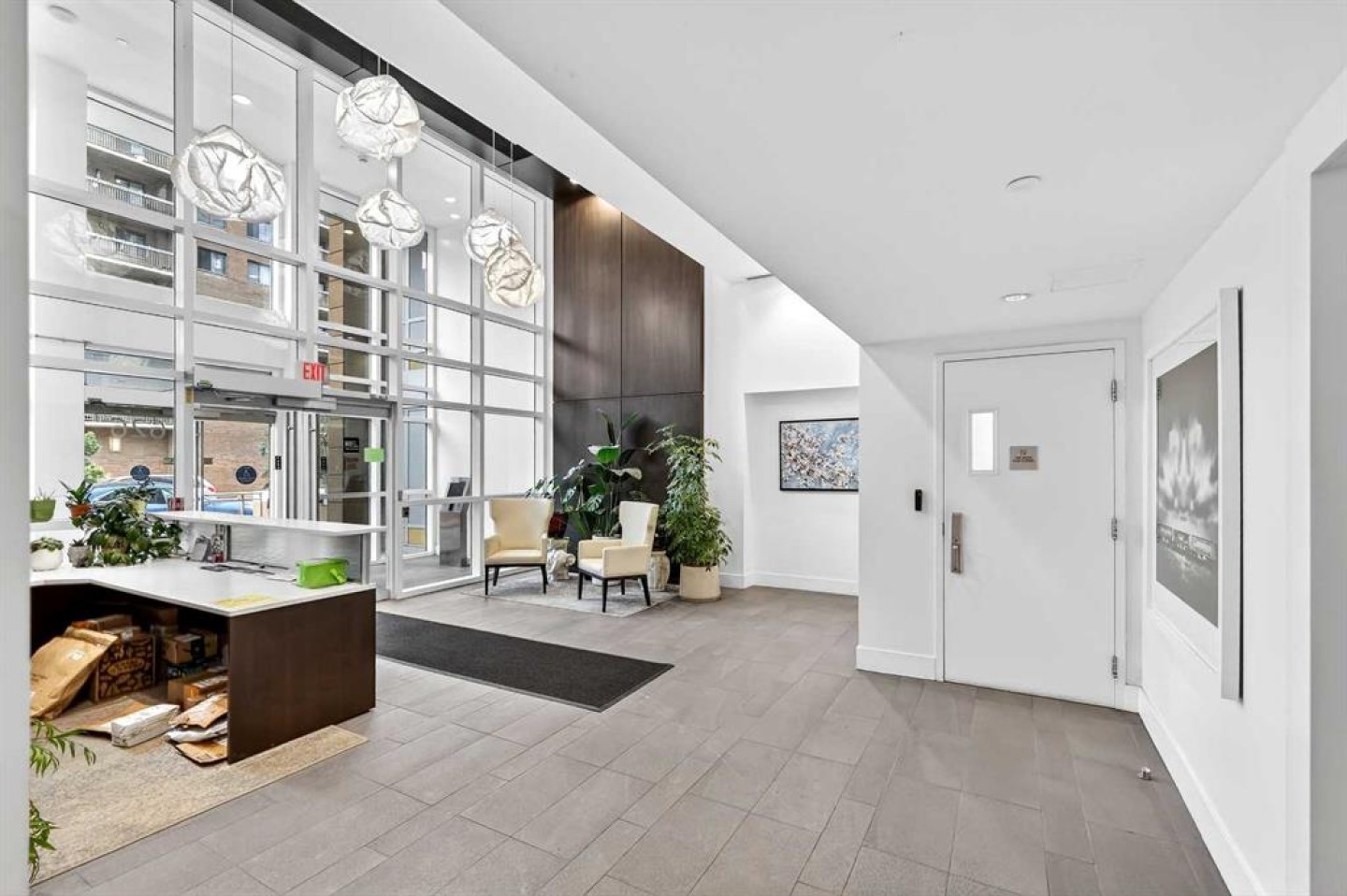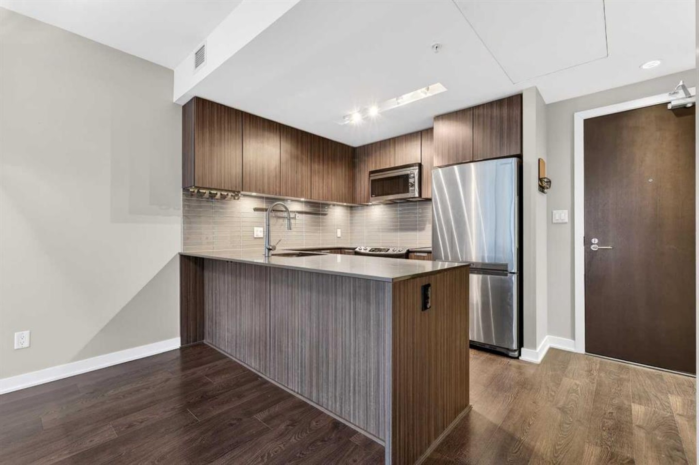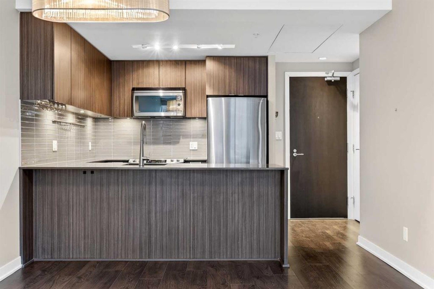 This stylish 1-bedroom condo in the highly regarded Calla building offers an exceptional urban lifestyle in the heart of downtown Calgary. Ideally located directly across from Beaulieu Gardens and the historic Lougheed House, the building provides a peaceful, park-adjacent setting while remaining just steps from Calgary’s downtown core, Stampede Grounds, public transit, dining, shopping, and nightlife. The Calla is a well-managed, concrete-constructed building known for its quality and quiet living environment. Residents enjoy an elegant lobby and an impressive selection of amenities, including a fully equipped fitness centre, yoga studio, concierge service, guest suite, and secure bike storage. Inside, the condo features 9-foot ceilings, central air conditioning, and floor-to-ceiling south-facing windows that flood the space with natural light and showcase beautiful city views, including front-row views of the Calgary Stampede fireworks. The modern kitchen is thoughtfully designed with full-height cabinetry, quartz countertops, stainless steel appliances, and a peninsula with breakfast bar, offering both functionality and style. The kitchen flows seamlessly into the dining area and oversized living room, creating an inviting space for everyday living and entertaining. The living room opens onto a large private balcony, ideal for summer barbecues, outdoor dining, or relaxing while taking in the urban skyline. The spacious bedroom continues the bright, open feel with large windows and dual closets providing ample storage. A well-appointed 4-piece bathroom features contemporary finishes and low-flush plumbing. Additional conveniences include in-suite laundry, a titled underground parking stall, and an assigned storage locker. This property presents an outstanding opportunity for low-maintenance, upscale downtown living in one of Calgary’s most desirable locations.