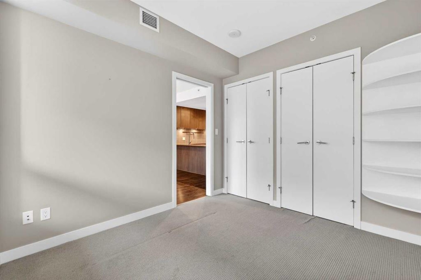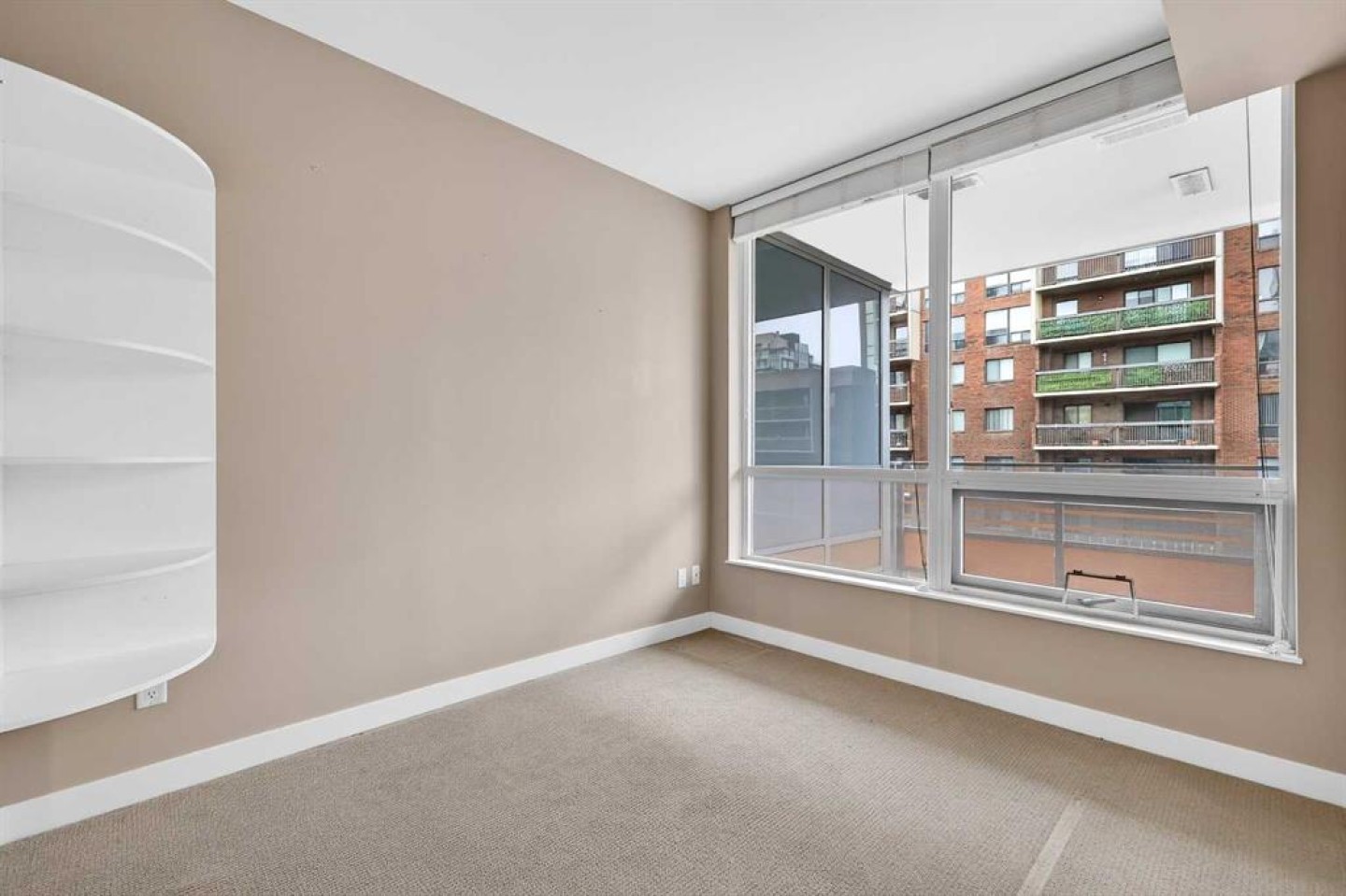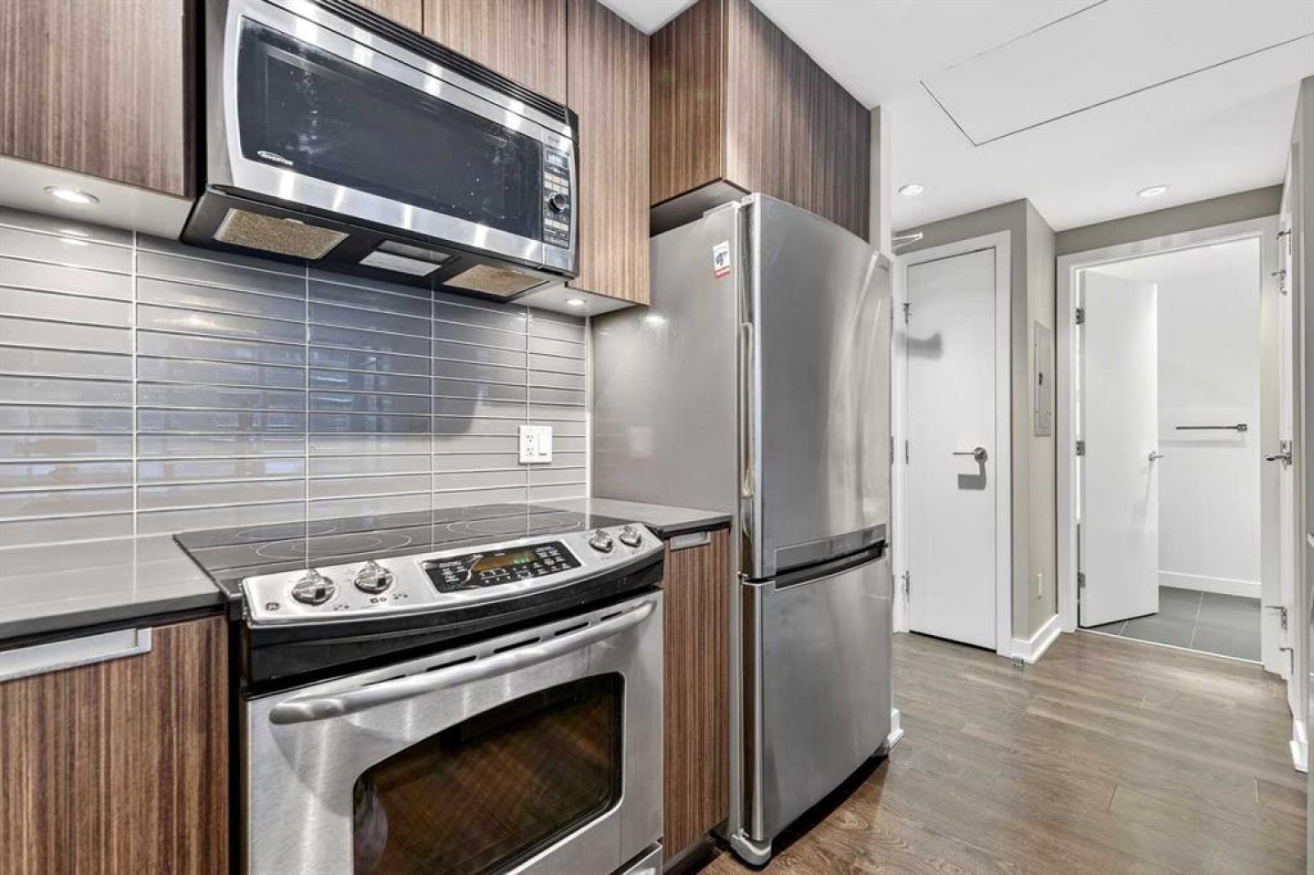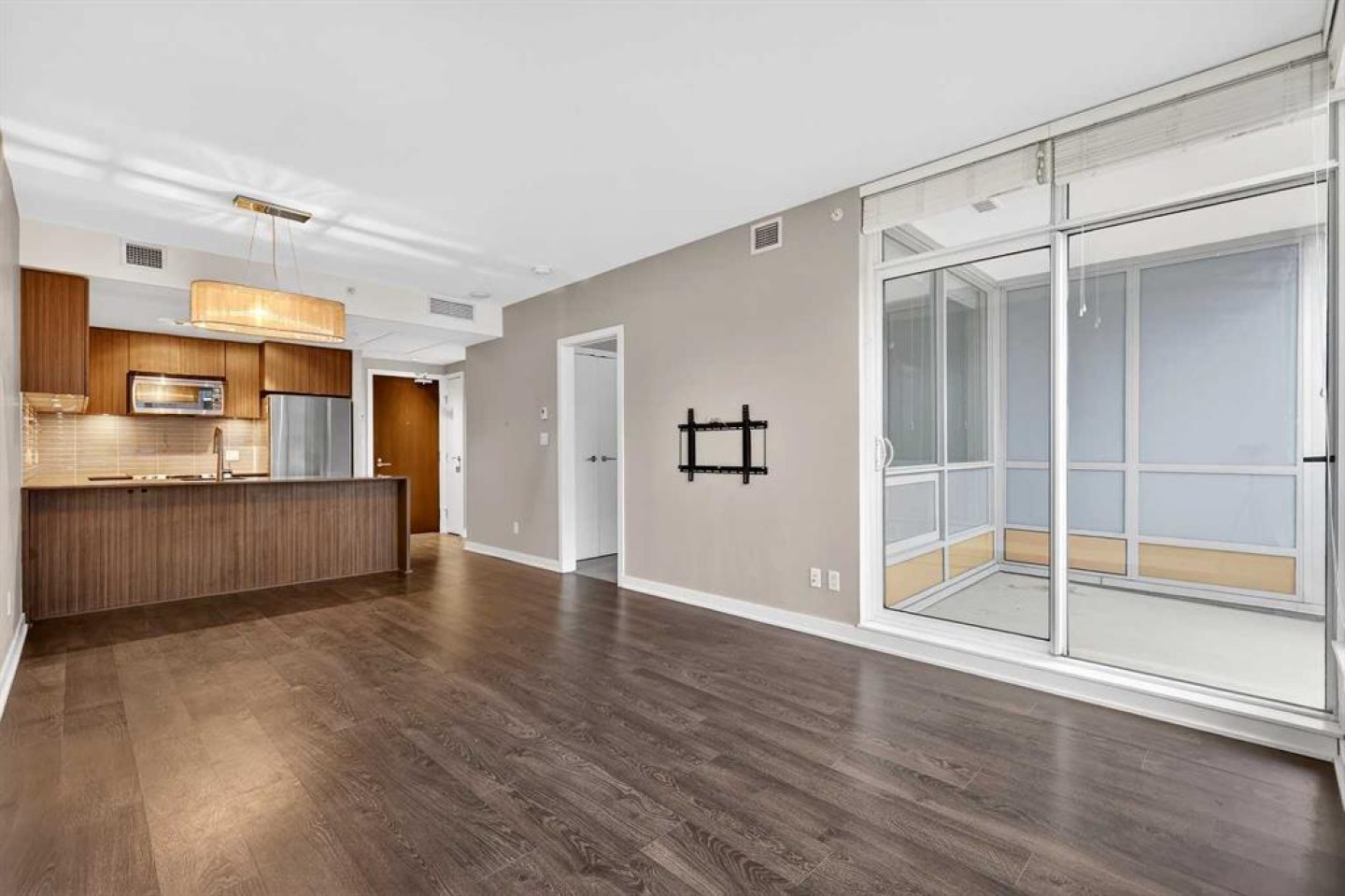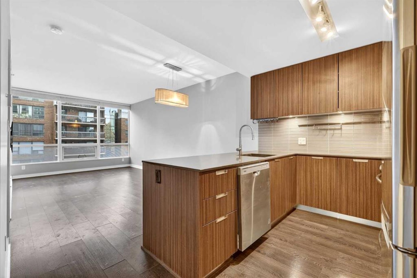 This stylish 1-bedroom condo in the highly regarded Calla building offers an exceptional urban lifestyle in the heart of downtown Calgary. Ideally located directly across from Beaulieu Gardens and the historic Lougheed House, the building provides a peaceful, park-adjacent setting while remaining just steps from Calgary’s downtown core, Stampede Grounds, public transit, dining, shopping, and nightlife. The Calla is a well-managed, concrete-constructed building known for its quality and quiet living environment. Residents enjoy an elegant lobby and an impressive selection of amenities, including a fully equipped fitness centre, yoga studio, concierge service, guest suite, and secure bike storage. Inside, the condo features 9-foot ceilings, central air conditioning, and floor-to-ceiling south-facing windows that flood the space with natural light and showcase beautiful city views, including front-row views of the Calgary Stampede fireworks. The modern kitchen is thoughtfully designed with full-height cabinetry, quartz countertops, stainless steel appliances, and a peninsula with breakfast bar, offering both functionality and style. The kitchen flows seamlessly into the dining area and oversized living room, creating an inviting space for everyday living and entertaining. The living room opens onto a large private balcony, ideal for summer barbecues, outdoor dining, or relaxing while taking in the urban skyline. The spacious bedroom continues the bright, open feel with large windows and dual closets providing ample storage. A well-appointed 4-piece bathroom features contemporary finishes and low-flush plumbing. Additional conveniences include in-suite laundry, a titled underground parking stall, and an assigned storage locker. This property presents an outstanding opportunity for low-maintenance, upscale downtown living in one of Calgary’s most desirable locations.