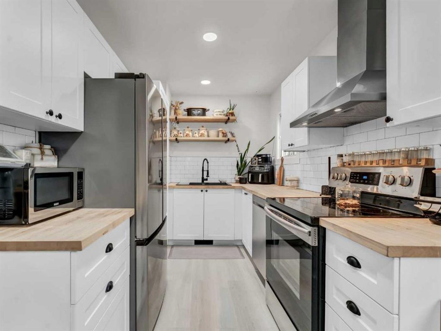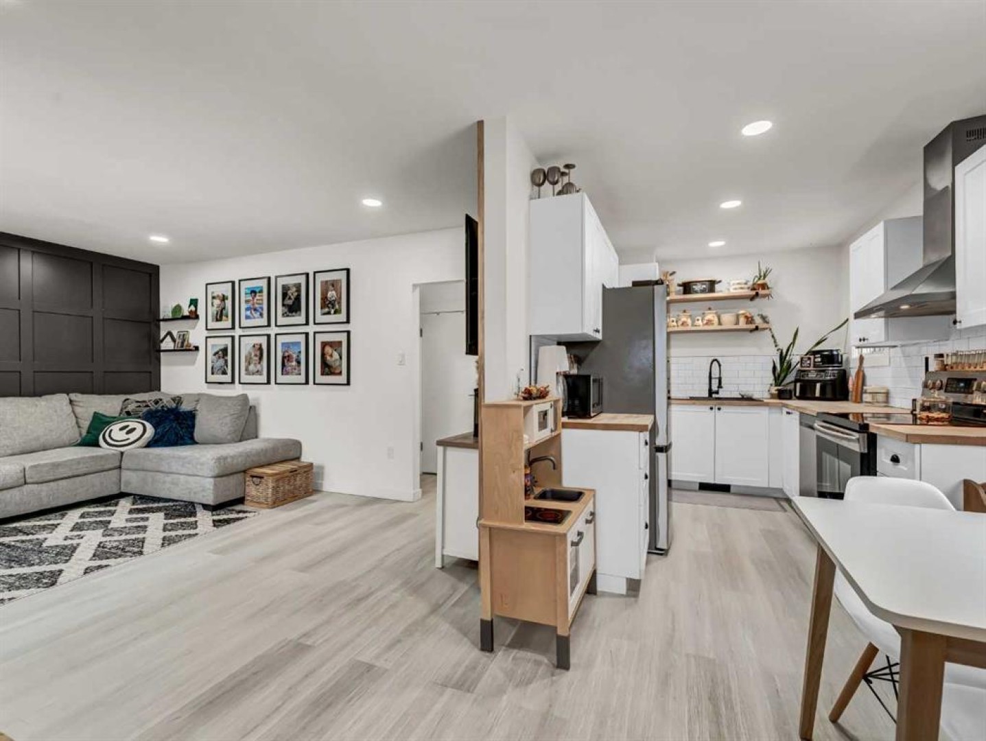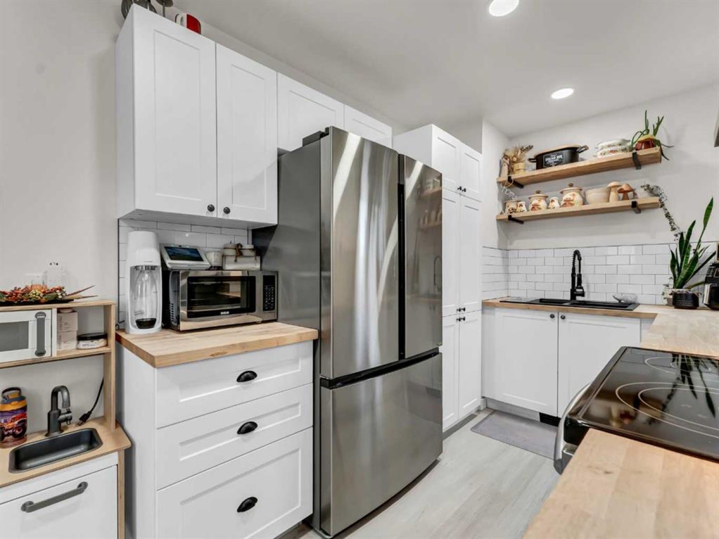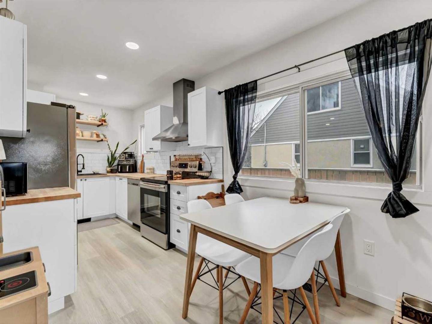 Experience Southwest Hill living at its best in this beautifully renovated, move-in-ready home. Set in a mature neighborhood, this home has been thoughtfully updated while keeping a comfortable, practical layout. Extensive upgrades include new insulation, drywall, plumbing, electrical, central air conditioning, appliances, as well as furnace and hot water tank (2020) offering peace of mind for the new owner. The main living area is bright and welcoming with plenty of natural light, flowing into the living space. The kitchen, chic yet efficient, features a stainless-steel appliance package, butcher block countertops, and a deep granite composite sink, making excellent use of the space. The main floor offers a bedroom and four-piece bathroom, along with a convenient main-floor laundry/mudroom area complete with wash sink. This area is separated from the kitchen and dining area by trendy barn door, adding both function and character to the space. Upstairs, you’ll find two additional bedrooms and a linen closet, keeping spaces organized and functional. The basement provides ample storage and remains undeveloped, offering flexibility for future plans. Outside, enjoy a spacious, fully landscaped backyard with mature trees, new vinyl fencing, underground sprinklers, and a deck perfect for relaxing or entertaining. Parking is well accommodated with a carport, single detached garage, and additional off-street parking at the front. Close to schools, parks, outdoor pools, and shopping, this home isn’t just updated—it’s designed for real life, ready to be enjoyed from day one.