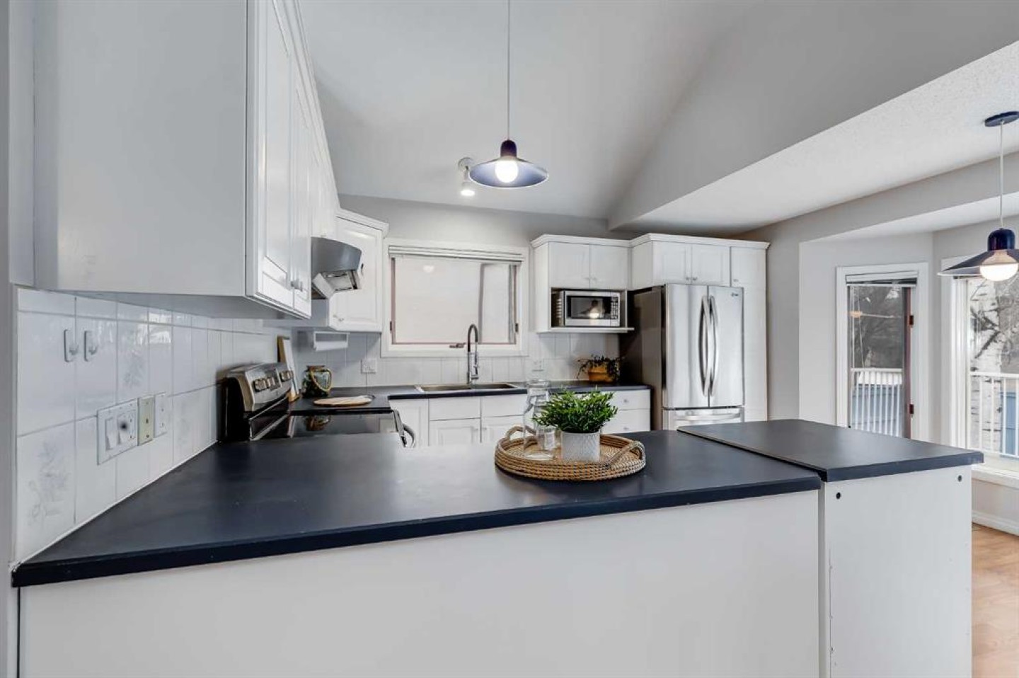 Located on a quiet street in Scenic Acres, this two storey-split home offers over 3,000 square feet of developed living space, a thoughtful layout, and a west-facing backyard that backs directly onto green space. With five bedrooms, three and a half bathrooms, soaring ceilings, and a double attached garage, the home balances scale with everyday functionality. Its position just steps from schools, parks, and pathways adds to the appeal for families. The main floor is defined by a dramatic vaulted ceiling and expansive windows that flood the living and dining areas with natural light. The kitchen is equipped with stainless steel appliances and includes an eating nook overlooking the backyard. Open to the family room, the layout creates a comfortable flow for everyday living, with a cozy gas fireplace and sliding doors that lead directly to the back deck. A main floor bedroom offers flexibility as a guest room or home office, complemented by a convenient two-piece powder room and a dedicated laundry area. Upstairs, the primary retreat features a bay window overlooking the backyard and green space, along with a walk-in closet and four-piece ensuite. Two additional bedrooms and a four-piece bathroom complete the upper level, offering privacy from the main floor while keeping family areas comfortably connected. The fully developed basement expands the home’s versatility with a large recreation room designed for relaxing or entertaining. A wet bar, gas fireplace with built-in cabinetry, and a projector with screen create a comfortable media and gathering space. An additional bedroom and four-piece bathroom provide flexibility for guests or older children, while ample storage keeps the space practical and organized. The west-facing backyard is a standout feature, with a massive deck that runs the full length of the home, ideal for afternoon sun and evening gatherings. Beyond the deck, a large grassy area and established garden beds lead directly to the green space behind, offering both privacy and open views. Scenic Acres is a well-established northwest community known for its access to schools, outdoor amenities, and commuter routes. Scenic Acres School and Monsignor E.L. Doyle School are just steps away, while Crowfoot LRT and the Crowfoot Park and Ride provide convenient transit options. Shopping, dining, and services at Crowfoot Crossing, including the YMCA, are minutes away. The area is surrounded by parks, walking and biking pathways, an off-leash area, and quick access to Baker Park and the Bow River. Major routes such as Stoney Trail and Crowchild Trail make commuting across the city or heading west to the mountains straightforward. Take advantage of your opportunity to see this incredible property in person—book your showing today! Be sure to check out the floor plans and 3D tour for a closer look before your visit.