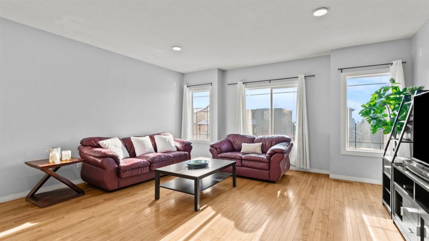 Welcome to this well-maintained 2-storey home in the family-friendly community of Coventry Hills, offering 1,815 sq ft of thoughtfully designed living space above grade and an unfinished basement ready for future development. The main level features a bright and inviting open-concept layout, ideal for both everyday living and entertaining. The kitchen is the heart of the home, complete with ample cabinetry, generous counter space, a centre island, corner pantry, and stainless steel appliances. Overlooking the living area, the kitchen flows seamlessly into the spacious living room, where a cozy gas fireplace creates a warm and welcoming focal point. Large windows throughout the main floor allow natural light to fill the space. A separate dining room provides a dedicated space for family meals and gatherings, with direct access to the back deck—perfect for summer BBQs and outdoor entertaining. The main level is completed by a convenient laundry room, powder room, and a practical layout that supports busy family life. Upstairs, the home truly shines with a large and sun-filled bonus room, offering exceptional flexibility as a media room, play space, or home office. The upper level also features three generously sized bedrooms, including the primary retreat with a walk-in closet and a private 4-piece ensuite, complete with a relaxing corner soaker tub and separate shower. Two additional bedrooms and a full bathroom provide comfortable accommodations for family or guests. The unfinished basement offers endless potential to expand your living space and customize to suit your needs, whether you envision a recreation room, additional bedrooms, or a home gym. Ideally located close to schools, parks, shopping, and major roadways, this Coventry Hills home delivers space, comfort, and future potential in a well-established north Calgary community.