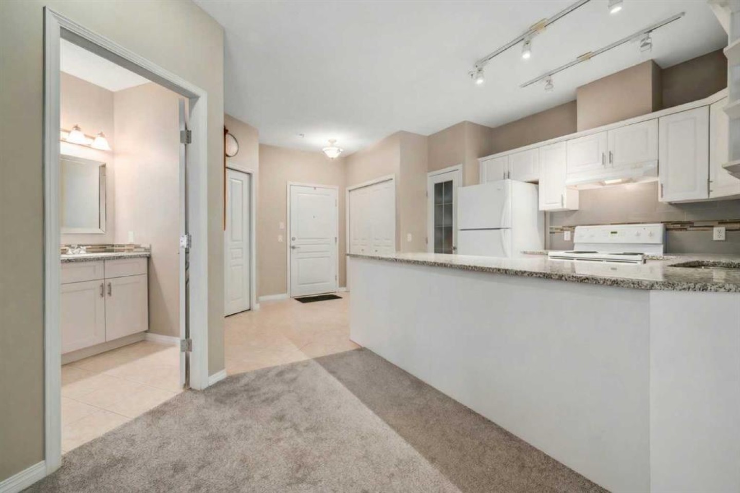This beautifully maintained 2-bedroom, 2-bathroom ground-floor unit offers 1,021 sq. ft. of stylish living with 9-foot ceilings, a bright open floor plan, and a private garden-level patio with a separate sidewalk entrance—perfect for pet owners or frequent walkers. The updated kitchen features crisp white cabinetry, granite countertops, a large central island with seating, and a walk-in pantry. Adjacent to the kitchen, the dining area flows into a spacious living room with cozy gas fireplace and direct patio access. The primary suite includes dual closets and a luxurious 5-piece ensuite with a separate soaker tub, glass shower, and double vanities. A second bedroom is located near the full 3-piece guest bathroom for added privacy and convenience. Additional highlights include central A/C, in-suite laundry, titled underground parking, and a secure storage locker. Residents enjoy access to a car wash bay, clubhouse with full kitchen, fitness centre, guest suite, and beautifully landscaped grounds with ample visitor parking. All this just steps from Avenida Market, Save-On-Foods, doctors’ offices, coffee shops, transit, and more. Enjoy the perfect lock-and-leave lifestyle in one of Calgary’s most sought-after lake communities. Book your private showing today!
