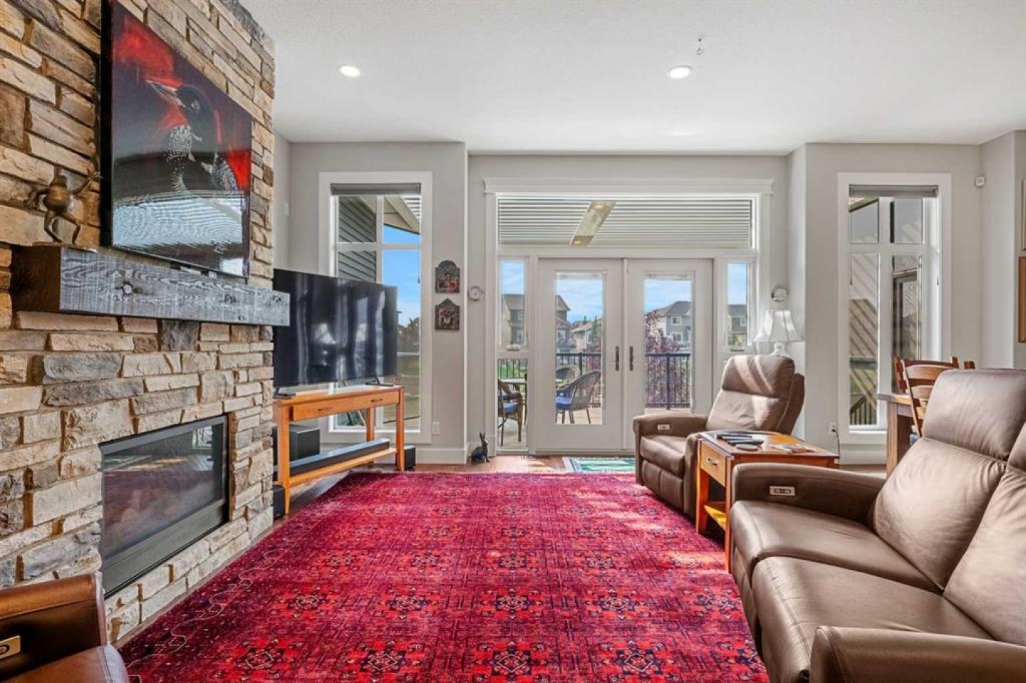 Welcome to 2253 Bayside Road, where sophistication, comfort, and exceptional style meet WATERFRONT. This is a RARE opportunity to own a fully finished walkout bungalow on one of the most highly sought-after streets in Bayside Estates. Situated on a prime lot, this home features a SOUTHWEST-FACING backyard with unobstructed canal views and NO PATHWAY BEHIND YOU, ensuring ULTIMATE privacy and year-round afternoon sun. It’s perfect for sunny afternoons watching the ducks swim by, gathering around a fire with family in the evening or enjoying a peaceful morning coffee with a view. Inside, you’re greeted by 10-foot ceilings, engineered hardwood floors and thoughtfully designed storage. The home office offers a large window overlooking the front porch while remaining private thanks to MATURE LANDSCAPING. The kitchen is a showstopper, featuring a central island with GRANITE COUNTERTOPS, an under mount sink, a large pantry, ceiling-height cabinetry (no dusting required!) and high-end stainless steel appliances including a gas range, built-in oven and microwave. A formal dining area flows seamlessly into the living room where a gas fireplace provides a cozy focal point. With a generous island for barstools, a formal dining area and expansive living space, this home is designed for effortless entertaining. From the living room, step through upgraded French doors with European-style locks onto your expanded, custom extended back deck offering even more space for entertaining, relaxing or enjoying the canal views. This outdoor oasis includes a staircase to the yard, a remote-controlled awning and SUN COAST REMOTE CONTROLLED RETRACTABLE SCREENS covering both UPPER and LOWER decks, perfect for wind protection during the day or private evenings by the canal at night. This luxury feature is rare and highly desirable, especially for a waterfront home. The primary bedroom includes a walk-in closet and a spa-like five-piece ensuite with dual sinks, a soaker tub and a separate shower. A spacious second bedroom, a full four-piece bathroom, and main-floor laundry complete this level. The garage impresses with EPOXY FLOORS & SLAT WALLS for organized storage. Downstairs, enjoy 9-foot ceilings, large windows and upgraded French doors opening directly to your backyard. A highlight of the basement is the wet bar overlooking the expansive rec space, ideal for game nights, barbecues and gatherings. The lower level also includes a large bedroom and another four-piece bath with premium finishes. Upgrades throughout this home include a NEW FURNACE, NEW ON-DEMAND HOT WATER, NEW WATER SOFTENER, IRRIGATION SYSTEM, WINDOWS, DOORS, GEMSTONE LIGHTING, CENTRAL VACUUM, and AIR CONDITIONING. Meticulously maintained by the original owner, this turnkey property is truly move-in ready. With top schools like Nose Creek, R.J. Hawkey, and W.H. Croxford, scenic walking paths, parks such as Chinook Winds, nearby shopping, dining and easy access to Calgary. Call for a private viewing today!