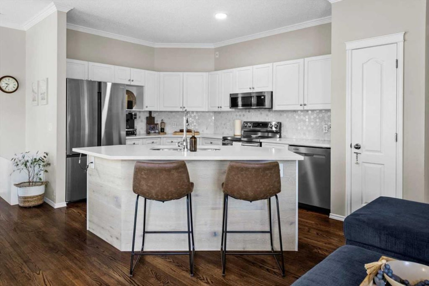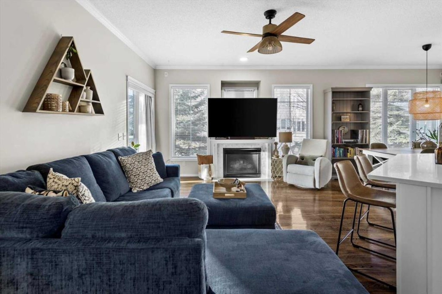 Welcome to 113 Edgeridge Terrace NW, an elegant bungalow residence offering refined main-level living in one of Calgary’s most established and desirable northwest communities. Thoughtfully designed and beautifully maintained, this home blends timeless finishes with a lifestyle centred on comfort, connection, and outdoor enjoyment. A charming front veranda welcomes you home and sets the tone for what lies within, creating an inviting space perfect for quiet mornings or greeting guests. Inside, rich hardwood flooring flows seamlessly throughout the main living areas, creating a cohesive and sophisticated backdrop. The open-concept design brings the kitchen, dining room, and living room together effortlessly, allowing each space to feel connected yet distinct. The kitchen is both polished and practical, featuring quartz countertops, ample cabinetry, generous preparation space, and a dedicated coffee station that adds both convenience & character. Adjacent to the kitchen, the dining room is ideally positioned for everyday meals and hosting dinner parties, with direct access to the first of two decks, perfectly suited for barbecuing and al fresco dining during the warmer months. The living room is warm and inviting, anchored by a cozy fireplace and enhanced by large windows that fill the space with natural light. Designed as a place to relax and unwind and is a perfect space to take in the newest release or watch your favourite team. This space opens onto the second private southwest-facing deck, offering a relaxed alternative to the dining-area deck and captures sunshine throughout summer afternoons and evenings. The primary bedroom is a true owner’s retreat, thoughtfully designed to offer comfort, privacy, and relaxation. Spacious and serene, it provides the perfect place to unwind at the end of a long day, with large windows that invite in natural light and create a calm, restful atmosphere. The luxurious spa-like ensuite elevates the experience, offering a peaceful space to relax and recharge, while the walk-in closet provides generous storage and everyday organization. A second bedroom on the main level offers excellent versatility and is ideal for guests, a home office, or additional family space. A full four-piece bathroom and convenient main-level laundry further enhance the ease and functionality of bungalow living. The welcoming foyer offers clear access to the upper level and direct entry to the attached double garage, reinforcing the home’s thoughtful layout. Just steps from the front door, residents enjoy immediate access to the ravine pathway system, which is ideal for walking, cycling, and connecting with nature year-round. Edgemont is known for its mature trees, expansive green spaces, and strong sense of community, with nearby Nose Hill Park, schools, playgrounds, and Edgemont Village shopping. Easy access to public transit and major roadways including Stoney Trail, Shaganappi Trail, Crowchild Trail, and Country Hills Boulevard.