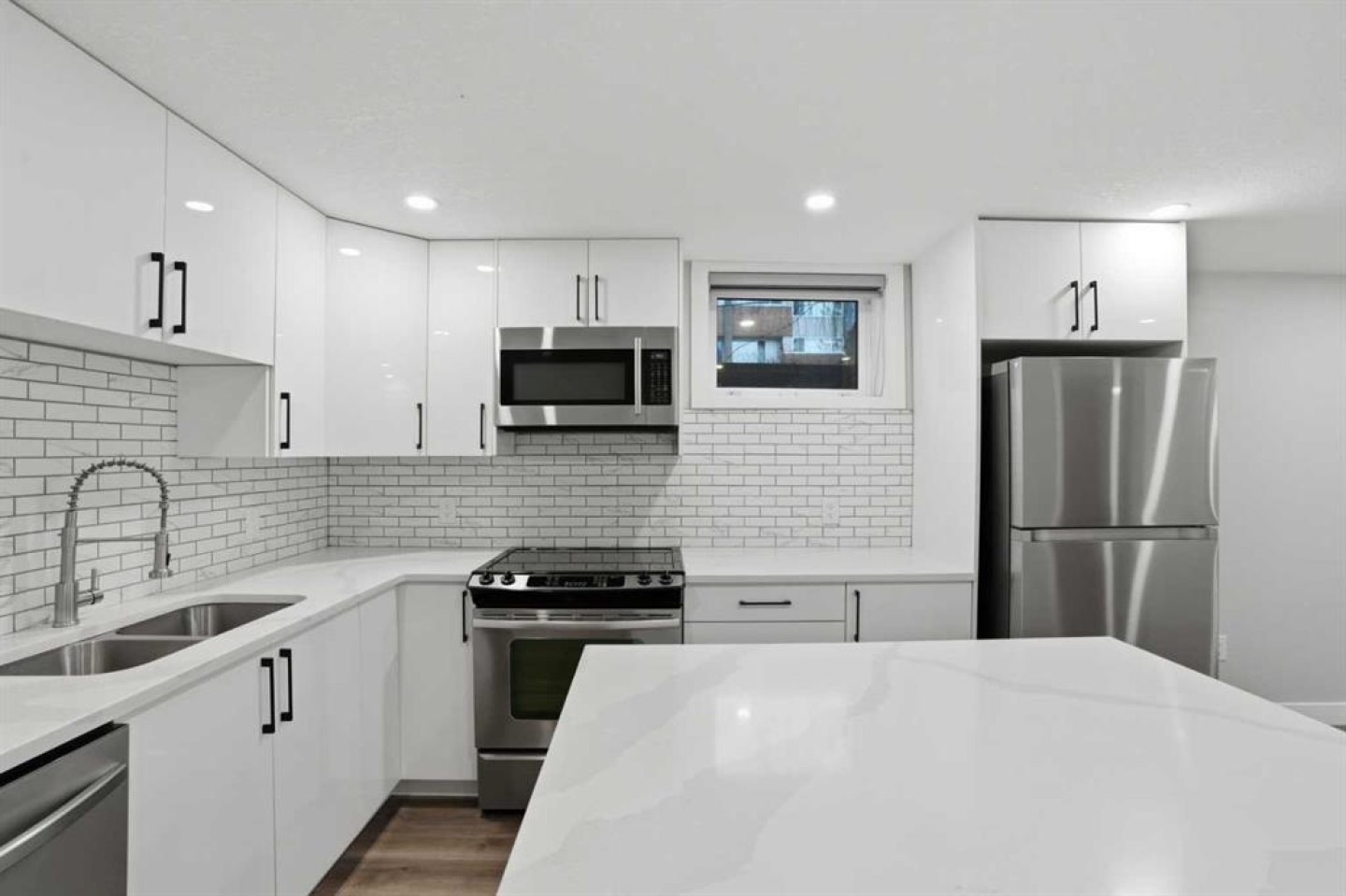 **Gorgeously Renovated Main Level & 2 Bedroom Basement Suite(illegal)** Sparkling Modern Finishes | Gloss Full Height Cabinets | Quartz Countertops | Stainless Steel Appliances | LED Recessed & Chandelier Lighting | Open Floor Plan Living Space | Large Windows | Great Natural Light | West Facing Frontage | 3 Bedrooms 1 Bath Main Level | Open Floor Plan Living Space | Separate Entry to Basement | Separate Laundry | Great Open Floor Plan | 2 Bedrooms with Ensuite Bathrooms | Great Backyard | Expansive Deck & Lawn Space | Double Detached Garage | Rear Lane Access | Location Location Location! Welcome to your beautifully renovated bungalow spanning 1,003 SqFt of developed living space between the main and basement levels. Open the front door to a bright and modern renovated home with LED lighting and large windows. The open floor plan living and kitchen make this the perfect space to entertain friends and family. The kitchen is outfitted with full height gloss finished cabinets, sparkling quartz, stainless steel appliances and a breakfast bar for small meals. The main level has 3 bedrooms and a 5pc ensuite. The primary bedroom has a cheater door to the 5pc bath. Bedrooms 2 & 3 on the main level are both spacious! Downstairs, the 2 bedroom basement suite(illegal) has a separate entry and separate laundry making it a completely independent space in this home. The basement has a great open floor plan kitchen and rec room making for a flexible living and dining space. The 2 bedrooms on this level each have their own ensuite baths; the primary has a 3pc ensuite and a walk-in closet. The 2nd bedroom another 3pc ensuite. The basement has great storage and also holds the utility room. Outside, the backyard starts with a sun room where the rear door is to the backyard. The sun room then leads to the deck which has great depth. This home offers a unique feature—an underground garage accessible from the back alley. The front parking pad provides additional parking to accommodate for both levels of the home. Located in the friendly community of Fairview close to schools, parks, and local amenities, this home provides easy access to major roads and public transportation. Your commute couldn't be any easier with Mcleod Trail & Heritage Drive close by. Hurry and book a showing at this incredible home today!