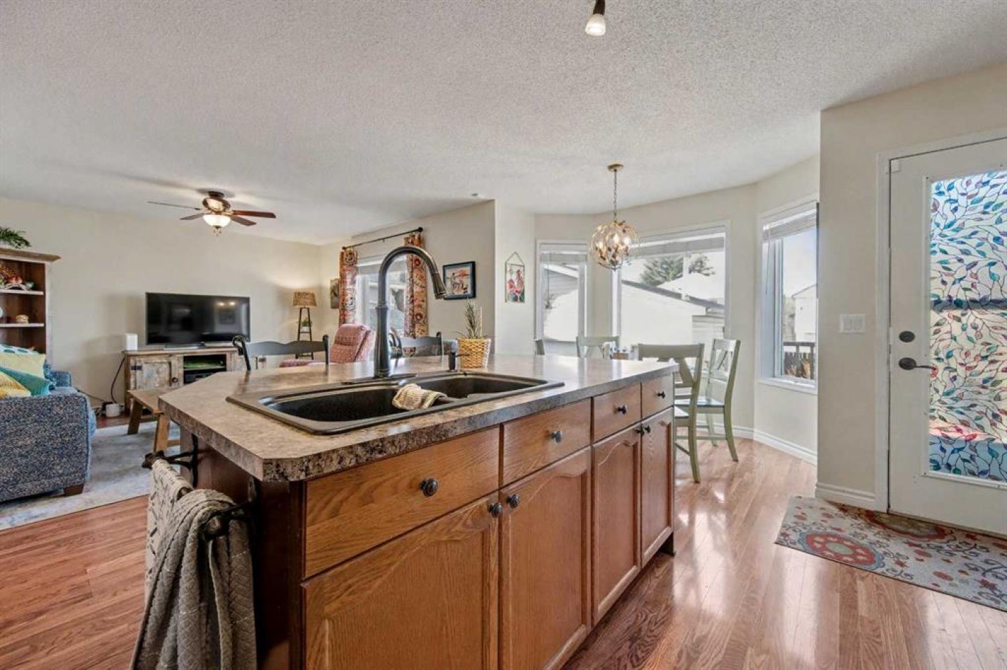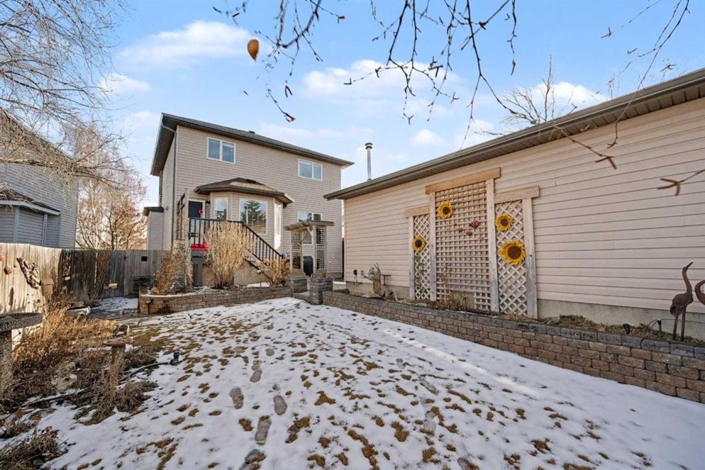 Welcome home! This impressive 1850 sq ft two-storey family house has so much to offer. Car enthusiasts will appreciate the two heated double garages—perfect for both a hot rod and an SUV. 9000 lbs bend back two post lift in garage is negotiable. The home features newer laminate flooring (2010), new roof shingles, eave trough in (2025), a double detached garage built in 2008, a new furnace and central air system added in 2023, as well as modern appliances throughout. The main floor boasts a spacious semi-formal dining room, a well-equipped kitchen with a corner pantry and island, a comfortable living room, main floor laundry, and a conveniently placed two-piece powder room just off the front garage entry. Upstairs, you'll find a generous primary suite with a four-piece ensuite bath with jetted tub and walk-in closet, along with two additional large bedrooms. There’s also a sizable family or bonus room with vaulted ceilings, a striking feature window, and a gas fireplace with a tiled mantle surround. The fully developed lower level includes a large rec room, a three-piece bath, three storage rooms, and plenty of natural light. The backyard faces northwest to enjoy sunny afternoons and features an oversized, heated double detached garage wired with 220, three storage sheds, interlocking patio spaces, and ample space for kids to play. Underground sprinklers in front and back yards. The yard is also fully fenced and there’s a gas line for your BBQ. This home is packed with extras—refer to the listing for full details—and enjoys a quiet location across from a small greenspace, and just around the corner from Ascension Of Our Lord Elementary School. Harvest Hills is a great family community, close to all major traffic routes, public transportation, schools, shopping, the airport and other amenities.