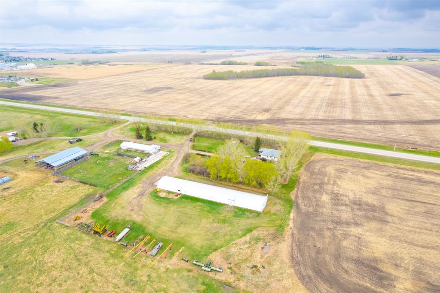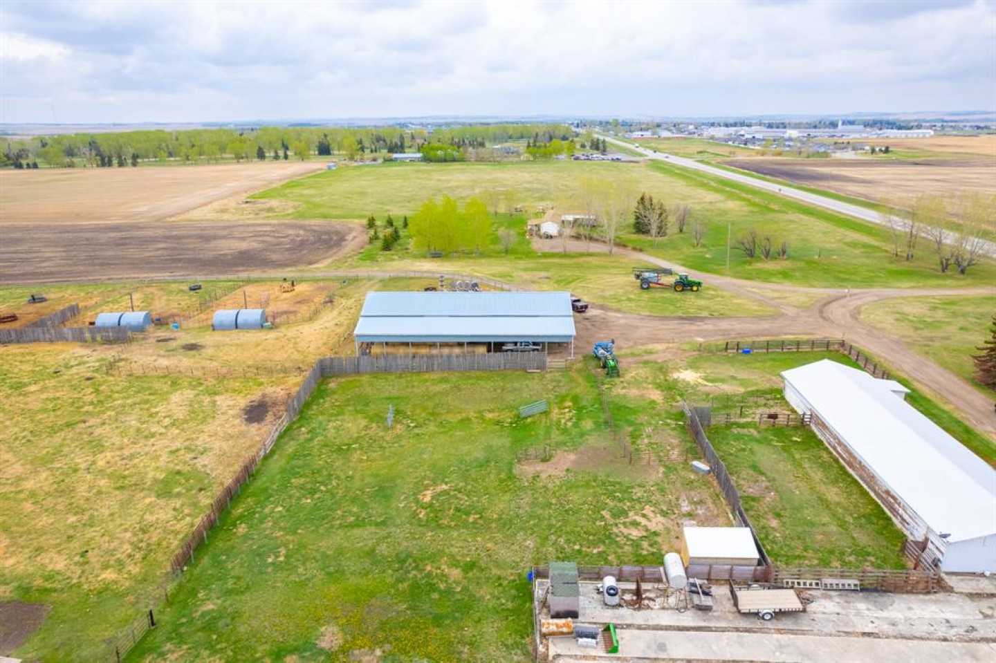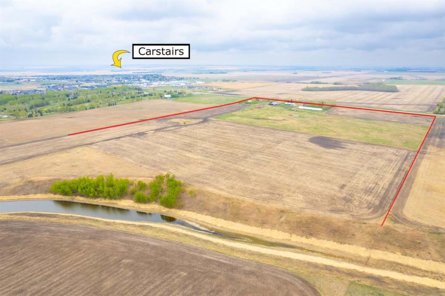 Here is a active 103.41 acre FARM that is ANNEXED into the fast growing, TOWN OF CARSTAIRS. Utilize this Investment to LIVE/RENT until you create a vision to DEVELOP. Appreciate the 1837 sq ft, 4 Bedroom + Office + 2 Bathroom BUNGALOW HOME built in 1957. Outside you will appreciate the OUTBUILDINGS- 215 ft x 40 ft SHOP/MACHINE SHED, 100 ft x 30 ft BARN with a HOBBY/PARTY ROOM + an attached GREENHOUSE & a massive EQUIPMENT SHED. The land is CULTIVATED LAND + PASTURE as well as corrals infrastructure for animals. This is an ideal holding property that has options for revenue until it is time Develop. Imagine a great location for country living that is close to all amenities + is a GREAT INVESTMENT with potential for Big Capital Gains!
