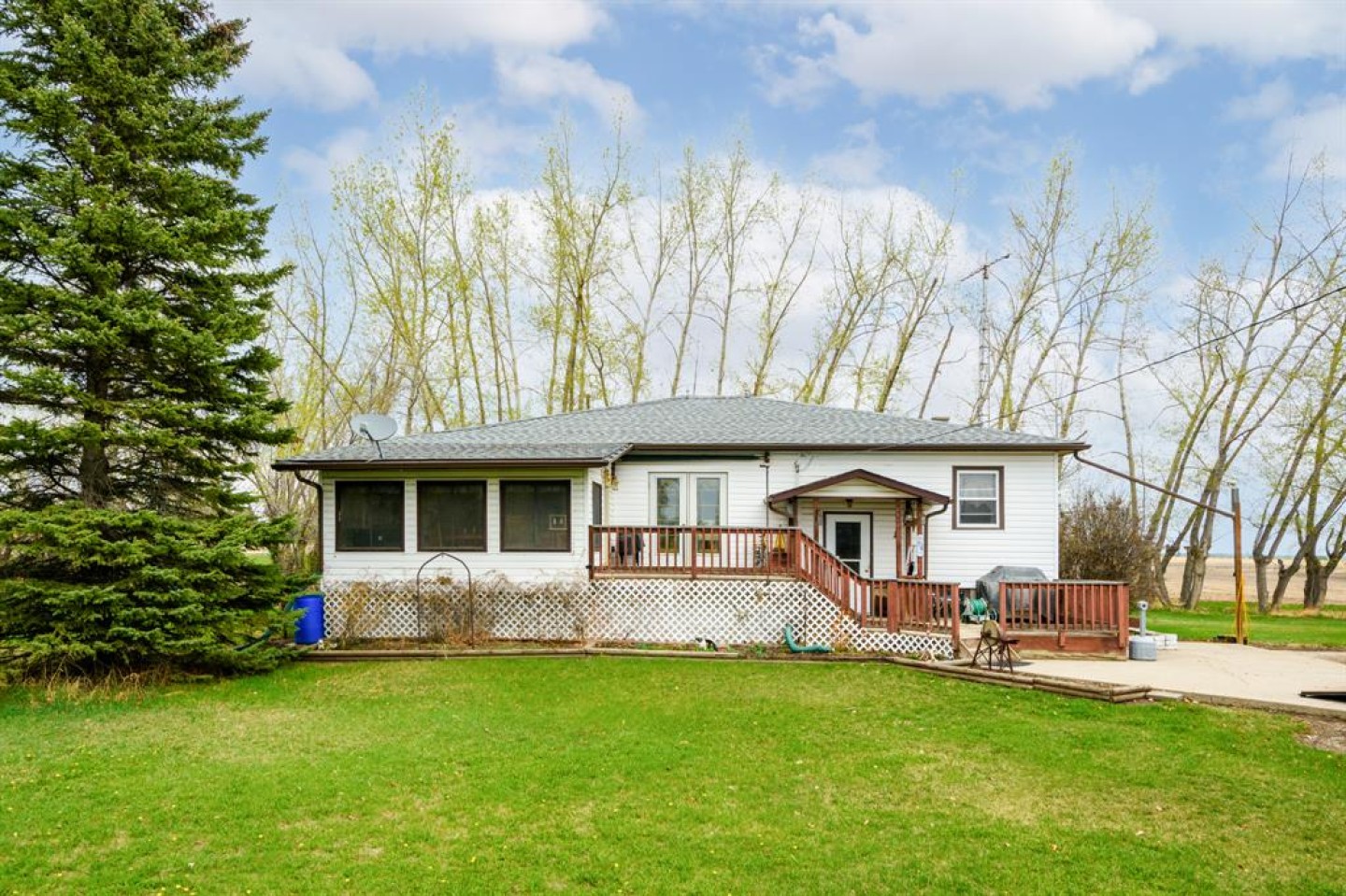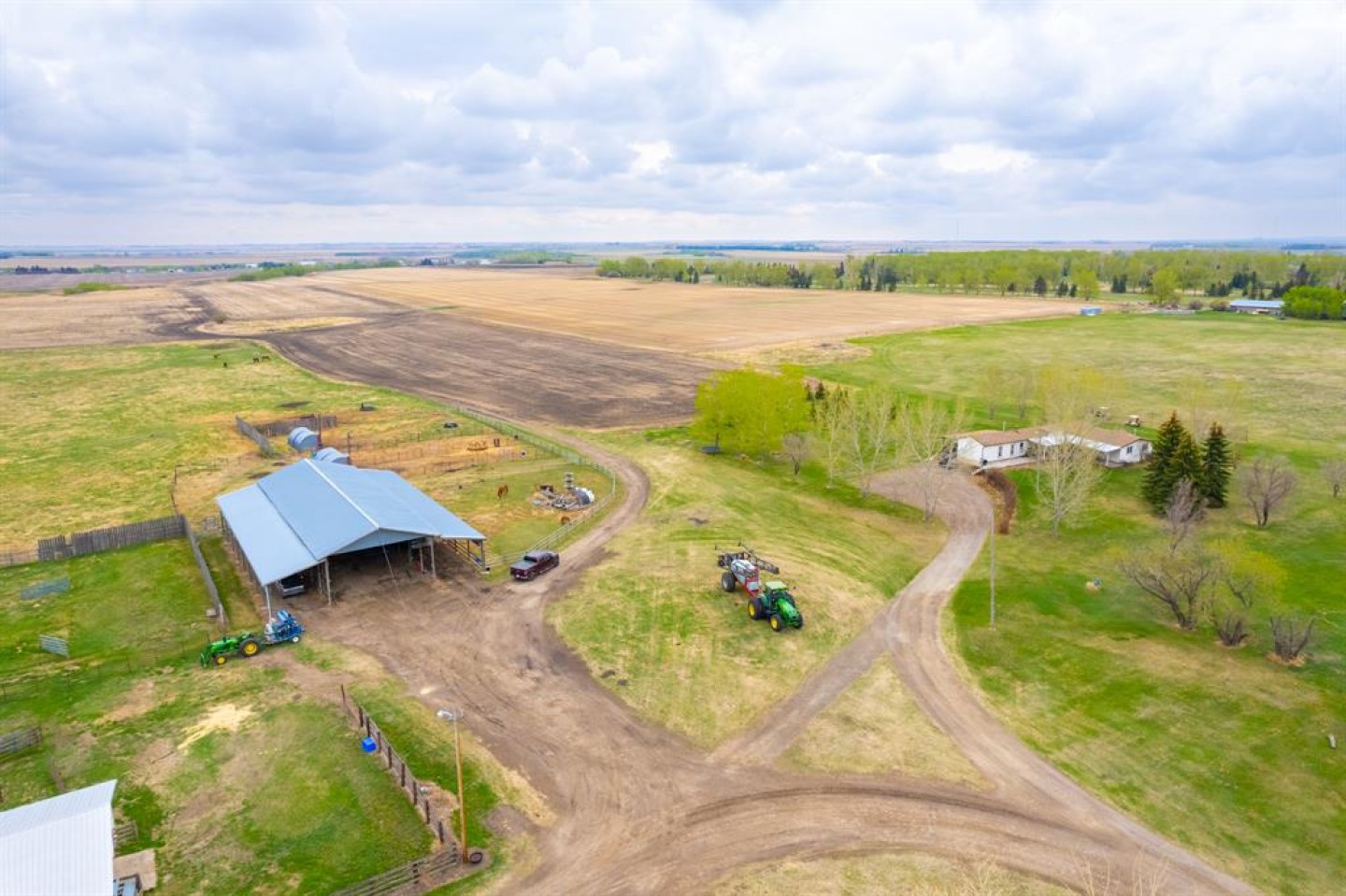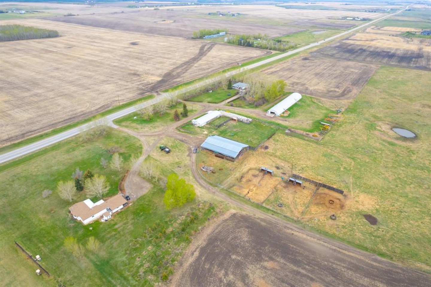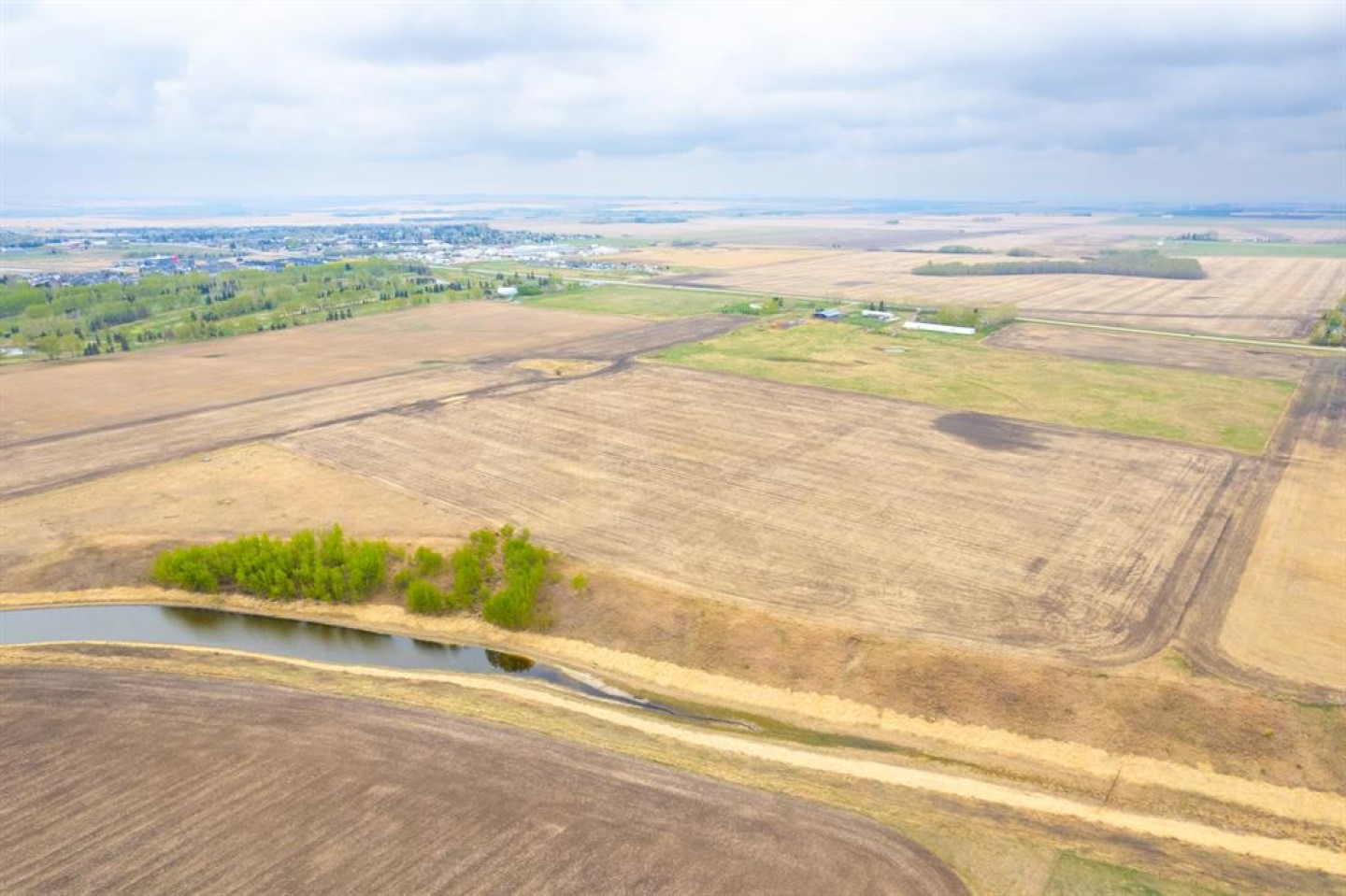 Here is a active 103.41 acre FARM that is ANNEXED into the fast growing, TOWN OF CARSTAIRS. Utilize this Investment to LIVE/RENT until you create a vision to DEVELOP. Appreciate the 1837 sq ft, 4 Bedroom + Office + 2 Bathroom BUNGALOW HOME built in 1957. Outside you will appreciate the OUTBUILDINGS- 215 ft x 40 ft SHOP/MACHINE SHED, 100 ft x 30 ft BARN with a HOBBY/PARTY ROOM + an attached GREENHOUSE & a massive EQUIPMENT SHED. The land is CULTIVATED LAND + PASTURE as well as corrals infrastructure for animals. This is an ideal holding property that has options for revenue until it is time Develop. Imagine a great location for country living that is close to all amenities + is a GREAT INVESTMENT with potential for Big Capital Gains!