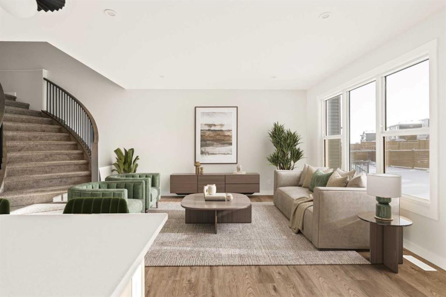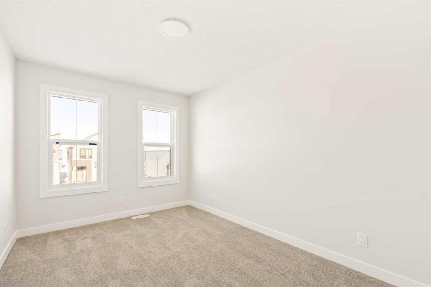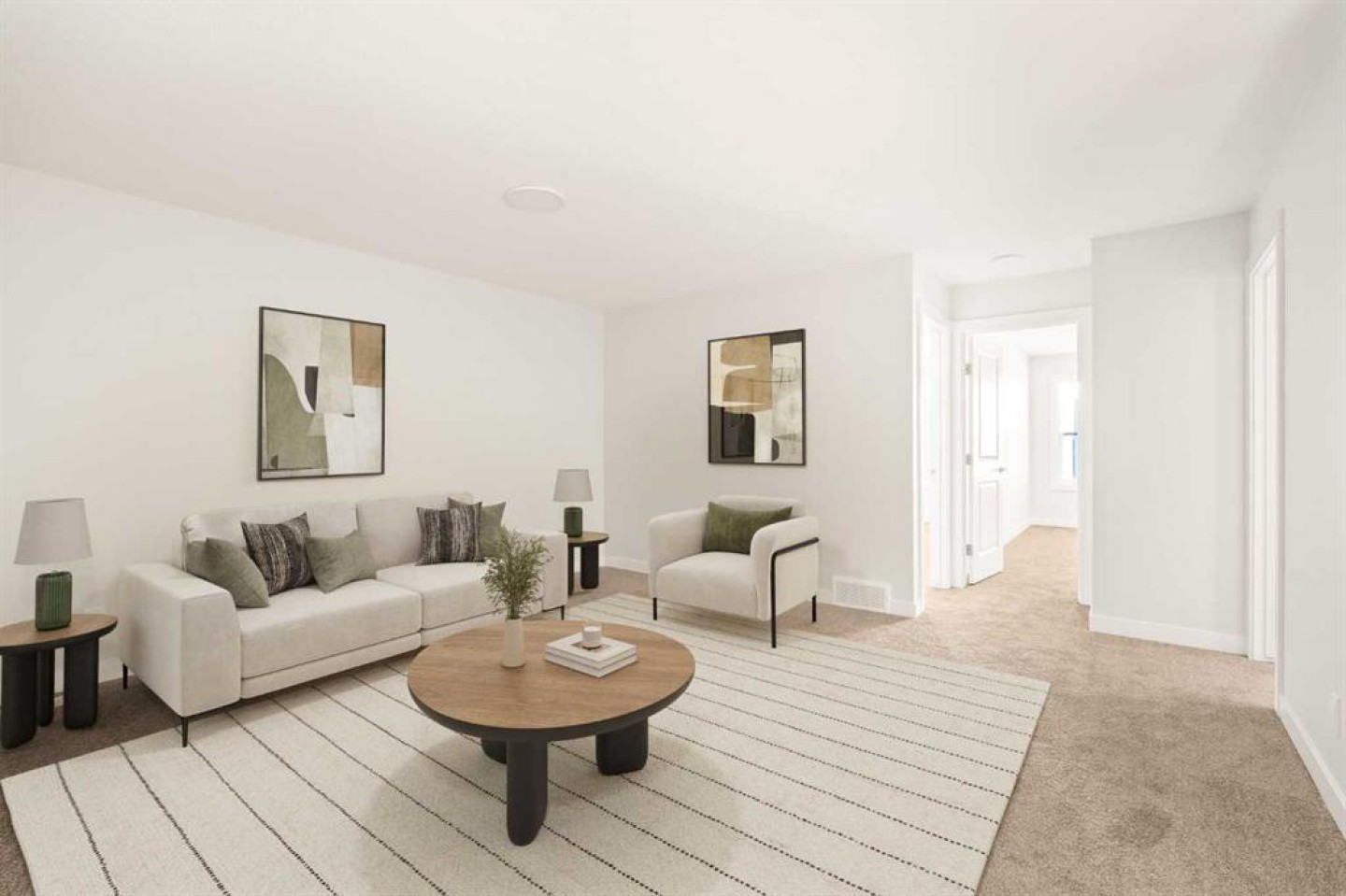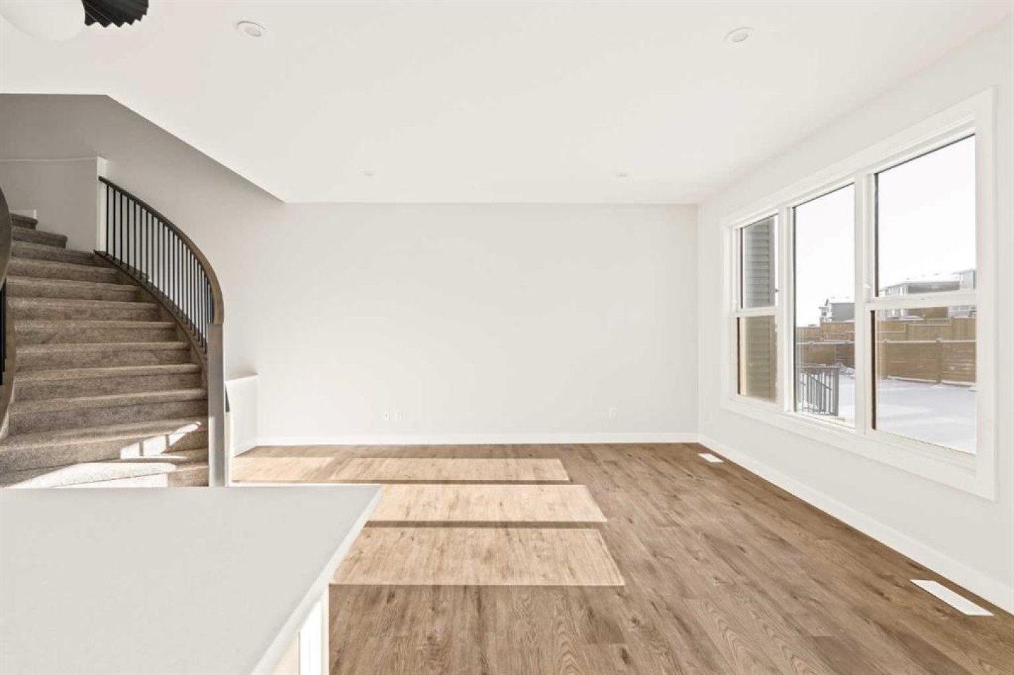 This Farmhouse elevation Robson 24 built by Brookfield Residential is a stunning brand new home in the heart of Livingston. Featuring 2 living areas, 3 bedrooms, 3 bathrooms and a home office / flex space on the main level that could be a 4th bedroom, this home has plenty of living space for a growing family + an undeveloped basement that awaits your imagination with ample space for a second living area, fourth bedroom and full bathroom. The home has a grand foyer with a front office space that could also be used for a children's play space, reading room or 4th bedroom - with a full bathroom located just outside the space. The centre of the main floor features a stunning spiral staircase that leads to the second level - offering unique design features rarely seen in a home of this size. The gourmet kitchen includes a built-in range hood and lower built-in microwave and is complete with a large corner pantry providing endless storage for those that like to cook and entertain. The timeless kitchen has white cabinets with a warm wood accent island and it overlooks both the living and dining areas - making this the perfect space to host guests. A wall of south-facing windows in both the living and dining rooms allow for natural light to pour through the space all day long. The main floor has a full bathroom and is complete with 9' ceilings creating a more open space. The spiral staircase leads to the second level where you'll find a central bonus room that separates the primary suite from the secondary bedrooms. The primary suite has vaulted ceilings and is complete with a 5 pc en suite including dual sinks, walk-in shower, and a soaker tub with window for added natural light - in addition to its incredibly large walk-in closet. Two more bedrooms, a full bathroom and a laundry room complete the second level. The basement is undeveloped and awaits the new owner's imagination - complete with bathroom rough-ins in place. Completing this home is a large and private south-facing backyard that provides optimal natural light and sunshine, both inside and outside, all year long. The 23' wide deep double attached garage is the perfect space to keep your vehicle and valuables safe all year long. Builder new home warranty & Alberta New Home Warranty are included with the purchase of this brand new home. Located in desirable Livingston, with an incredible HOA, this property is fully move-in ready and perfect for a growing family.