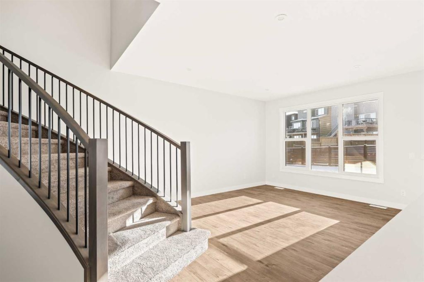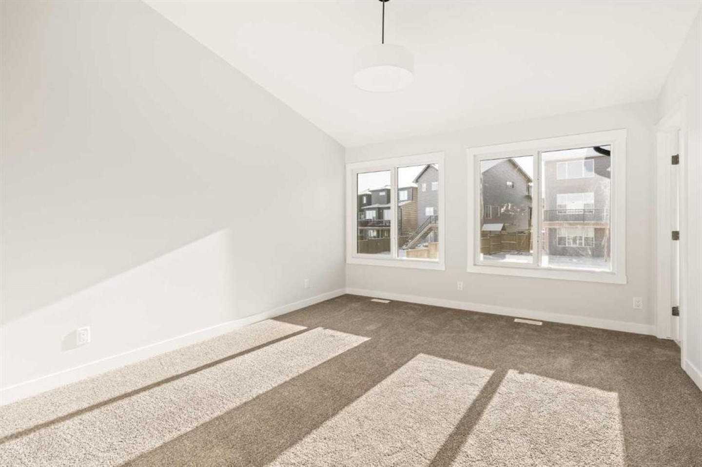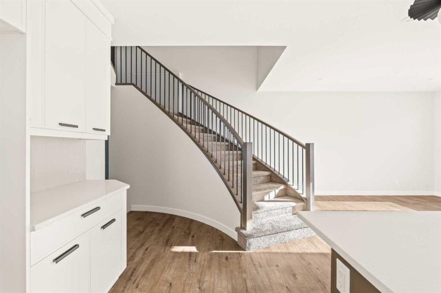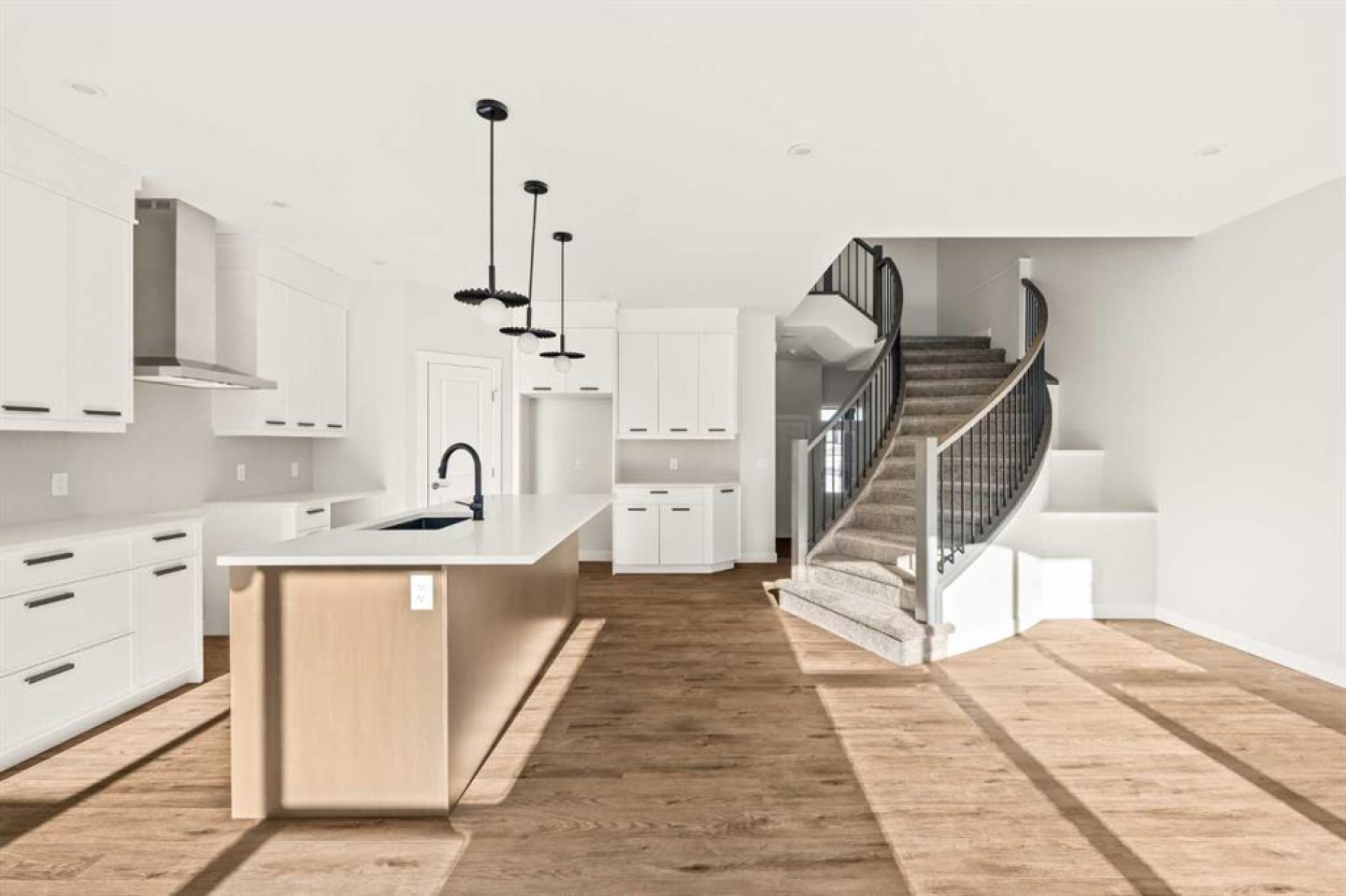 This Farmhouse elevation Robson 24 built by Brookfield Residential is a stunning brand new home in the heart of Livingston. Featuring 2 living areas, 3 bedrooms, 3 bathrooms and a home office / flex space on the main level that could be a 4th bedroom, this home has plenty of living space for a growing family + an undeveloped basement that awaits your imagination with ample space for a second living area, fourth bedroom and full bathroom. The home has a grand foyer with a front office space that could also be used for a children's play space, reading room or 4th bedroom - with a full bathroom located just outside the space. The centre of the main floor features a stunning spiral staircase that leads to the second level - offering unique design features rarely seen in a home of this size. The gourmet kitchen includes a built-in range hood and lower built-in microwave and is complete with a large corner pantry providing endless storage for those that like to cook and entertain. The timeless kitchen has white cabinets with a warm wood accent island and it overlooks both the living and dining areas - making this the perfect space to host guests. A wall of south-facing windows in both the living and dining rooms allow for natural light to pour through the space all day long. The main floor has a full bathroom and is complete with 9' ceilings creating a more open space. The spiral staircase leads to the second level where you'll find a central bonus room that separates the primary suite from the secondary bedrooms. The primary suite has vaulted ceilings and is complete with a 5 pc en suite including dual sinks, walk-in shower, and a soaker tub with window for added natural light - in addition to its incredibly large walk-in closet. Two more bedrooms, a full bathroom and a laundry room complete the second level. The basement is undeveloped and awaits the new owner's imagination - complete with bathroom rough-ins in place. Completing this home is a large and private south-facing backyard that provides optimal natural light and sunshine, both inside and outside, all year long. The 23' wide deep double attached garage is the perfect space to keep your vehicle and valuables safe all year long. Builder new home warranty & Alberta New Home Warranty are included with the purchase of this brand new home. Located in desirable Livingston, with an incredible HOA, this property is fully move-in ready and perfect for a growing family.